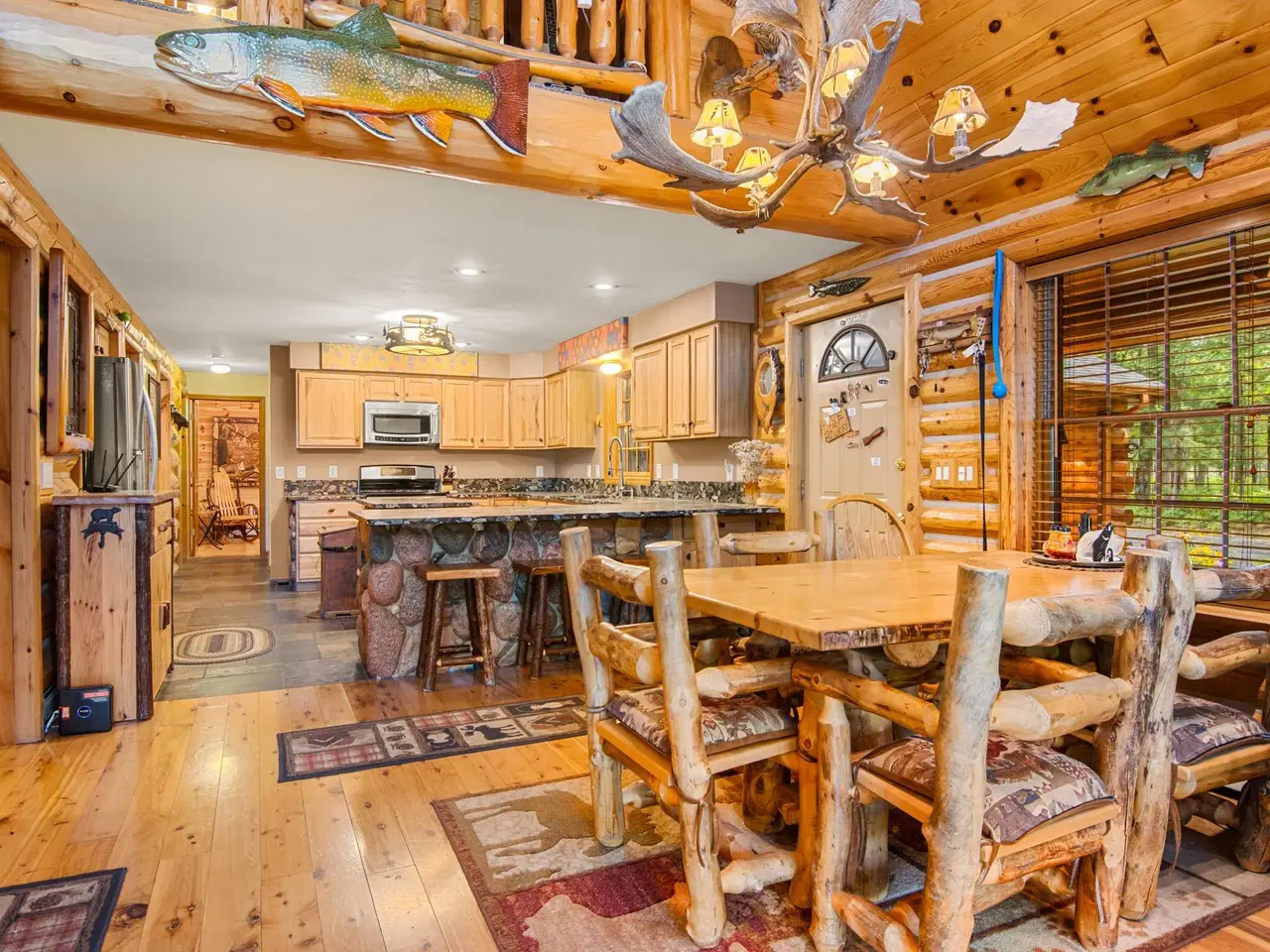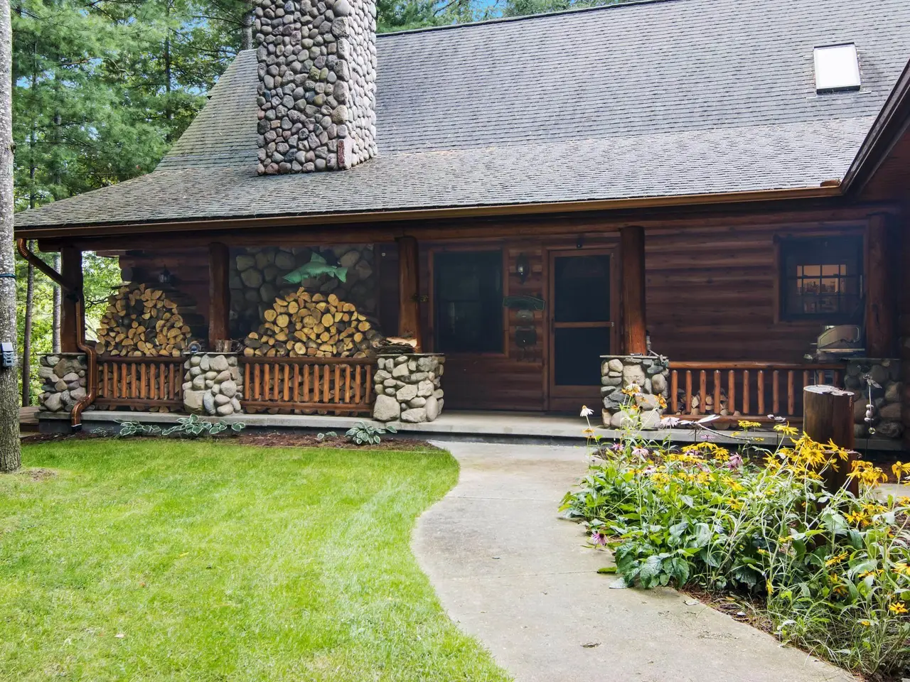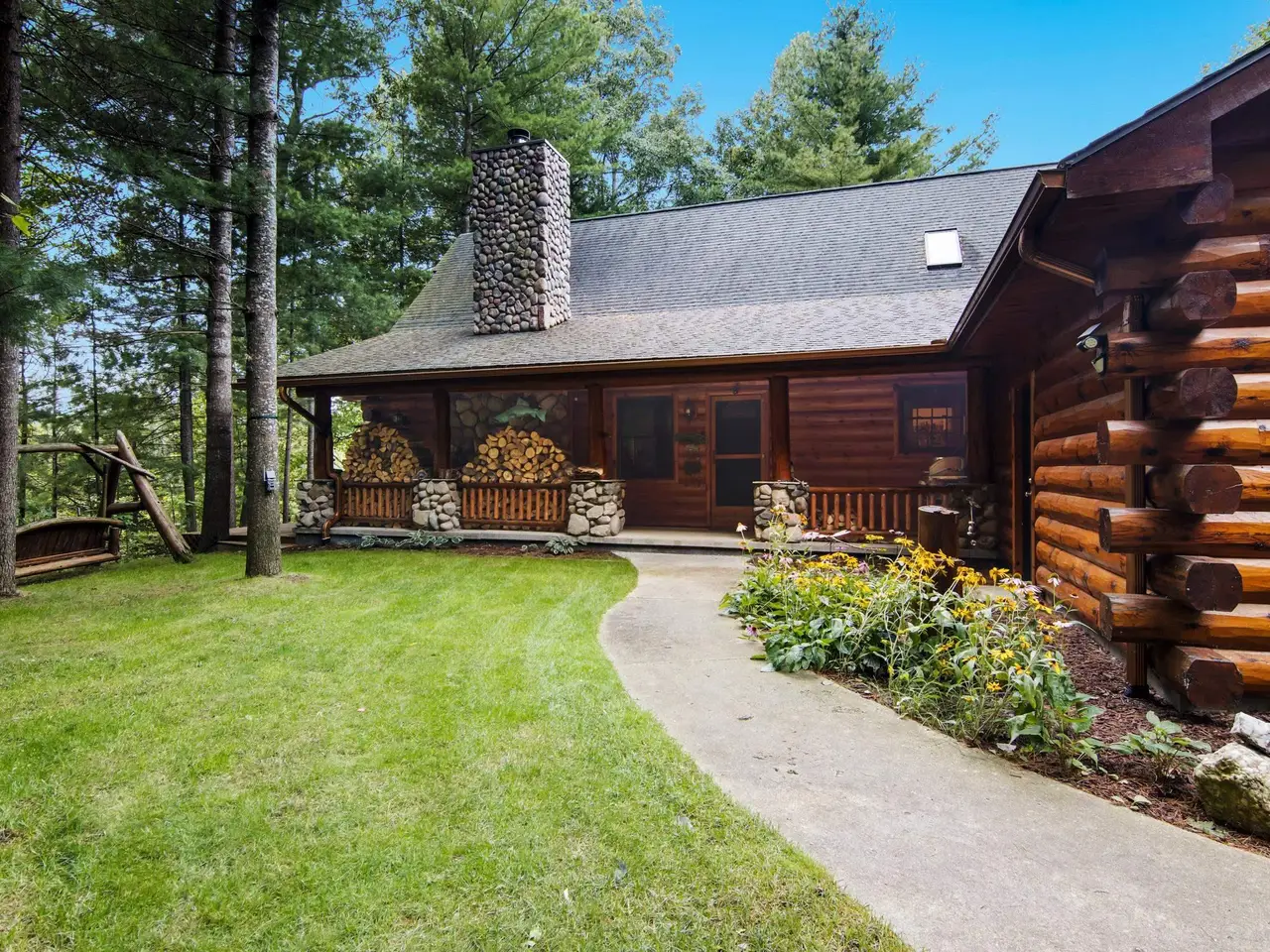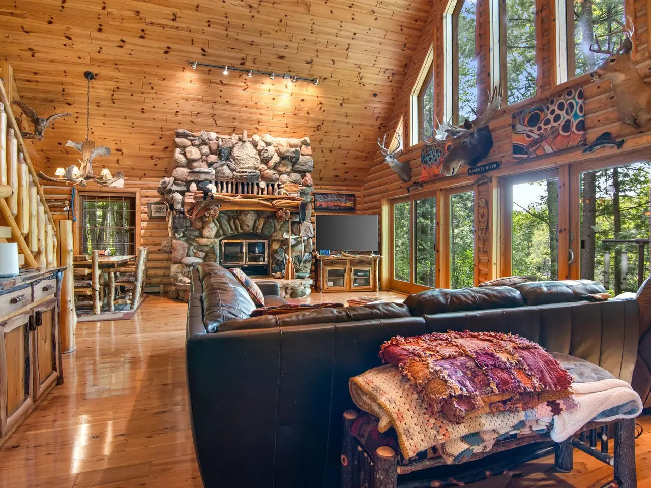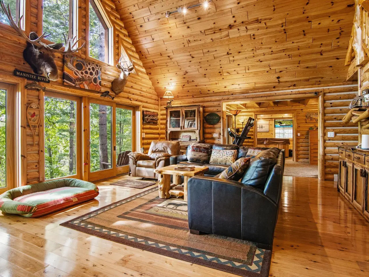 Welcome to your riverfront retreat, nestled on 262 feet of crystal-clear frontage along the scenic Manistee River--renowned for its Blue Ribbon-quality fly fishing. Whether you are casting a line or simply soaking in the serenity, this property offers the perfect blend of natural beauty and comfortable luxury. This beautifully crafted home features 5 spacious bedrooms and 3.5 bathrooms, designed to accommodate large gatherings or multi-generational getaways. The warm and inviting interior boasts Australian cypress hardwood floors, vaulted tongue-and-groove ceilings, and a true masonry stone fireplace complete with a stunning custom juniper mantel--a focal point that brings rustic elegance to the heart of the home. The thoughtful layout provides the perfect balance of open concept living and private spaces, ideal for creating lasting memories with family and friends. Whether you are entertaining indoors or enjoying the outdoors, every detail invites relaxation and connection. Step outside to immerse yourself in nature--kayaking, fishing, wildlife watching, or simply unwinding by the river. With direct access to one of Michigan's most scenic waterways, this property is a haven for outdoor enthusiasts and nature lovers alike. Do not miss the opportunity to own a rare piece of paradise on the Manistee River--where tranquility, beauty, and adventure meet.