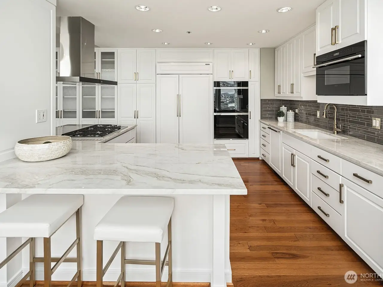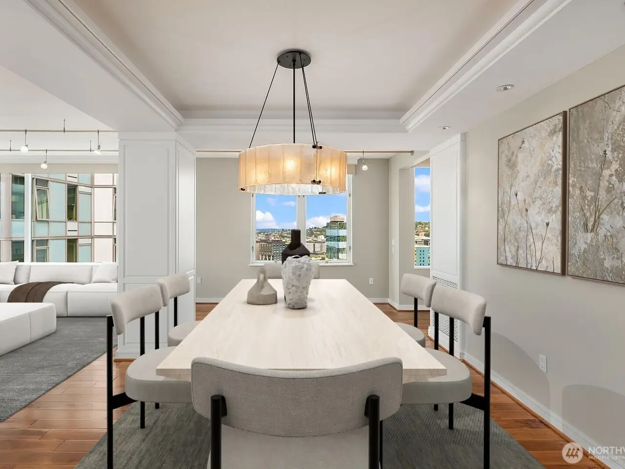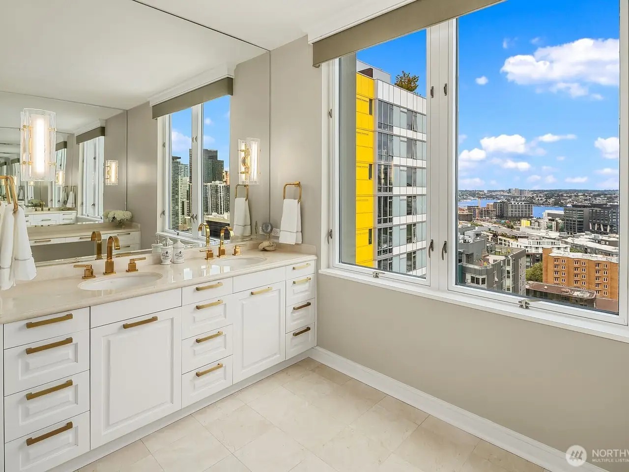 Contemporary design fuses with iconic views at Seattle Heights. Nestled above the vibrant Downtown core, the spacious penthouse composes one-half of the 25th floor. Formal living and dining unite with warm hardwood floors. A generous kitchen serves as the home's anchor with bright white cabinets, slab counters and brass fixtures thoughtfully selected to inspire culinary feats and effortless entertaining. Tranquility abounds in the primary suite with a private patio, 180-degree views, spa-like five-piece bath, and walk-in closet. An unrivaled suite of amenities includes 24-hr doorkeepers, concierge, fitness center, indoor pool and spa, rooftop terrace, and recreation space. Discover resort living within reach of the iconic Pike Place Market.