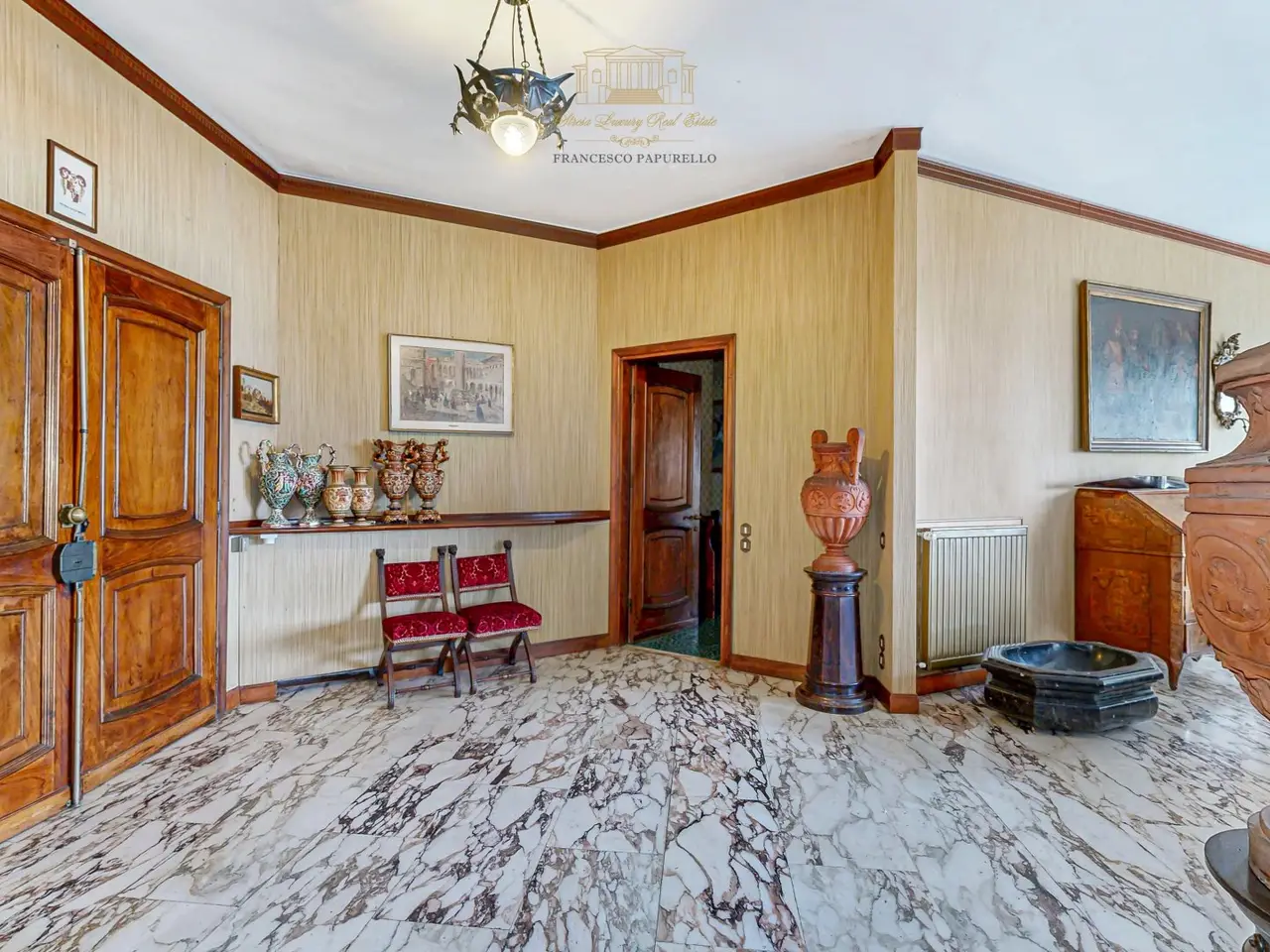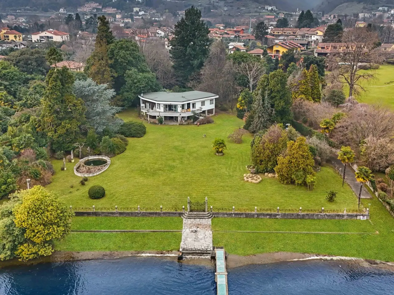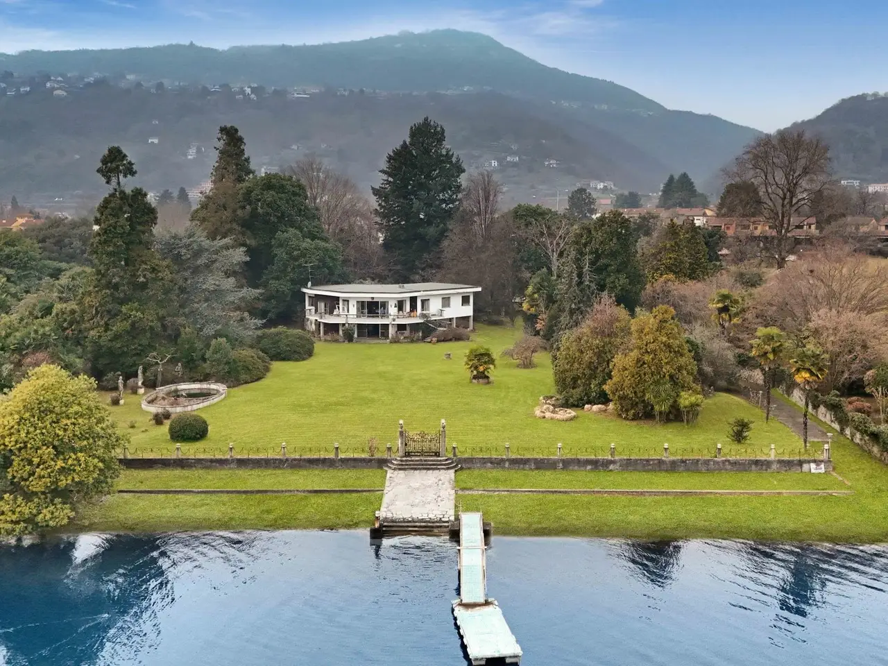 A dream reflected in the crystal clear waters of Lake Maggiore: this extraordinary luxury pieds dans l'eau villa is located on the Piedmont shore, in a simply unique location. Here, the beauty of nature blends with the elegance of architecture, creating an exclusive oasis of peace and refinement. Directly overlooking the lake, the prestigious property offers private access on the water thanks to its private beach and jetty, perfect for those who love to experience the lake in all its nuances. Flat parkland of 8,460 square meters surrounds the former greenhouses and the three residences that make up the property: Main villa of about 350 sqm Two detached cottages of 104 sqm and 64 sqm - ideal for guests or a luxury rental business Main villa The main villa is on two levels and welcomes its guests with a large hexagonal entrance hall that leads to the bright living room, overlooking a panoramic terrace. From here, the gaze is lost in the ripples of the lake, providing ever new and breathtaking scenery. The dining room and dinette, connected to the kitchen, offer a warm and convivial environment, perfect for moments of sharing. The sleeping area, located on the same floor, houses four bedrooms, three of which have spectacular lake views, and two bathrooms. Fine details, such as parquet floors and Calacatta marble in the entrance hall and living room, further embellish this home of timeless charm. Relaxation and Comfort Area Descending to the basement level, one discovers an area dedicated to relaxation and pleasure: A large living room with a fireplace that opens directly onto the garden A wine cellar perfect for wine lovers A service room A bathroom Outside, a large porch wraps around part of the villa, creating an area perfect for enjoying the gentle lake breeze. A convenient garage completes the property. Independent Villas The two independent cottages, surrounded by greenery, represent an added value for those who wish to welcome guests in a private setting or develop a luxury rental business. Surfaces: the main villa, approx. 300 sq. m., plus 150 of basement floor space Villa 2, sq m 104 Villa 3, surface area about 64 sq. m. Total gross usable area sq m 468 approx. expandable by 20% of the volume, which corresponds to sq m 93.