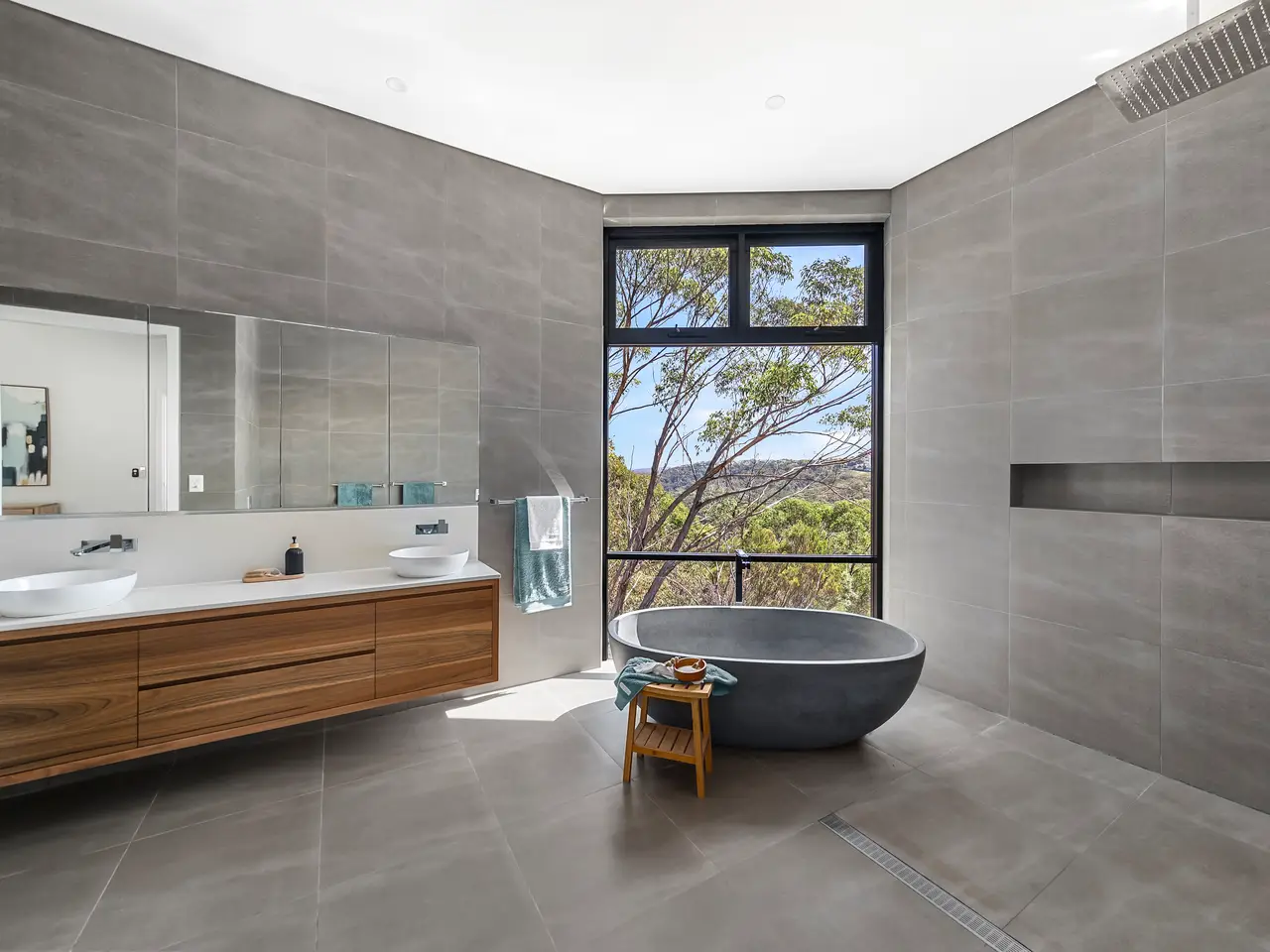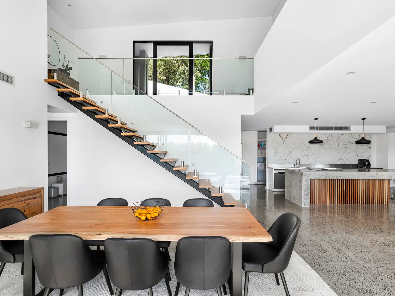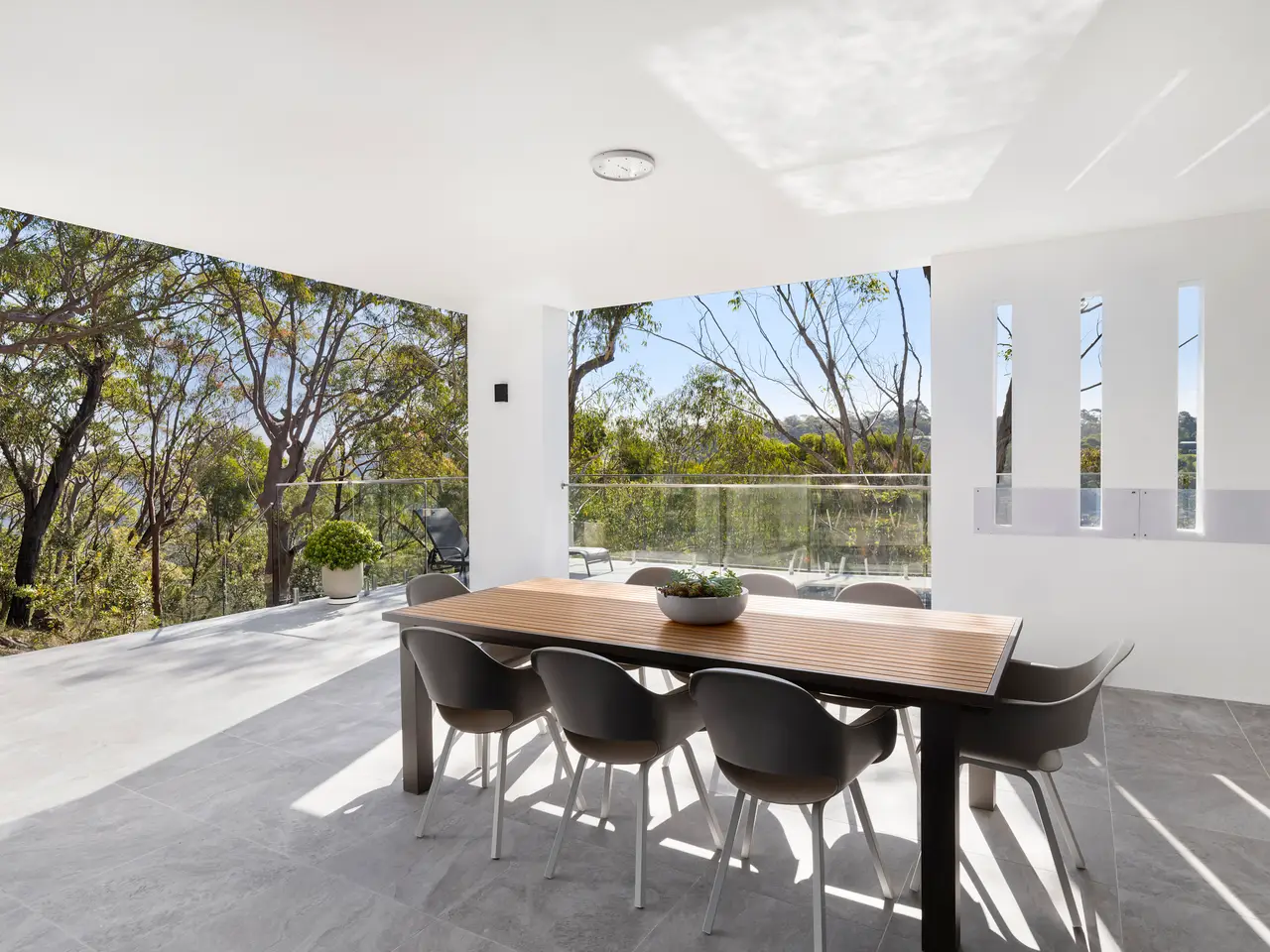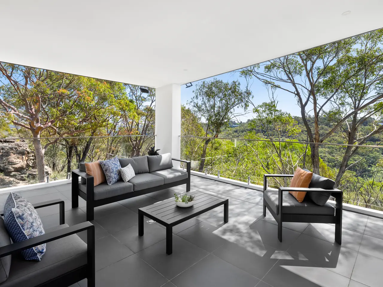 Architecturally designed and furnished with every imaginable luxury, this master built designer home offers a rare, exclusive escape just 30 minutes from the city. Thoughtfully created to blend seamlessly with its natural bushland surroundings, it features earthy stone finishes and expansive retractable glass walls that blur the boundaries between indoor and outdoor living. The home boasts spacious open-plan interiors, expansive sun-drenched terraces-both covered and open-and a sparkling pool. Positioned at the end of a cul-de-sac on five acres of terraced lawns and native bushland, with rugged rock formations, this serene and private setting is just minutes from schools, village shops, beaches, marinas, and Sydney's CBD. Masterfully constructed with the highest quality materials, including solid double-brick walls, toughened glass, and heated polished concrete floors, the residence is accessed through a striking mezzanine-style foyer that overlooks the living areas and frames sweeping views of the surrounding bushland. The lower level is dominated by expansive open-plan living spaces, including a family room that opens onto a covered terrace, a home theatre with a projector and screen, casual living spaces, and a dining room under a soaring double-height ceiling that opens onto a large sunlit poolside terrace with panoramic views of the bushland. At the heart of the home, the kitchen is both sophisticated and earthy, centered around a large polished concrete island. It features stainless steel countertops, premium European appliances, and a walk-in pantry. The generously sized bedrooms include a palatial master suite with a walk-in robe, dressing room, and stunning en suite. There's also a home office with an adjoining sitting room, and each bathroom is tiled floor-to-ceiling, finished with imported stone, and illuminated with mood lighting. Meticulously built to flame zone standards, the home includes two separate remote-controlled double lock-up garages, automatic shutters on all windows, toughened glass, high shadow-line ceilings, and ducted air conditioning. Surrounded by native bushland and abundant wildlife, including kangaroos, wallabies, cockatoos, lorikeets, and kookaburras, this home offers a luxurious, relaxed sanctuary in a secluded yet conveniently located setting.