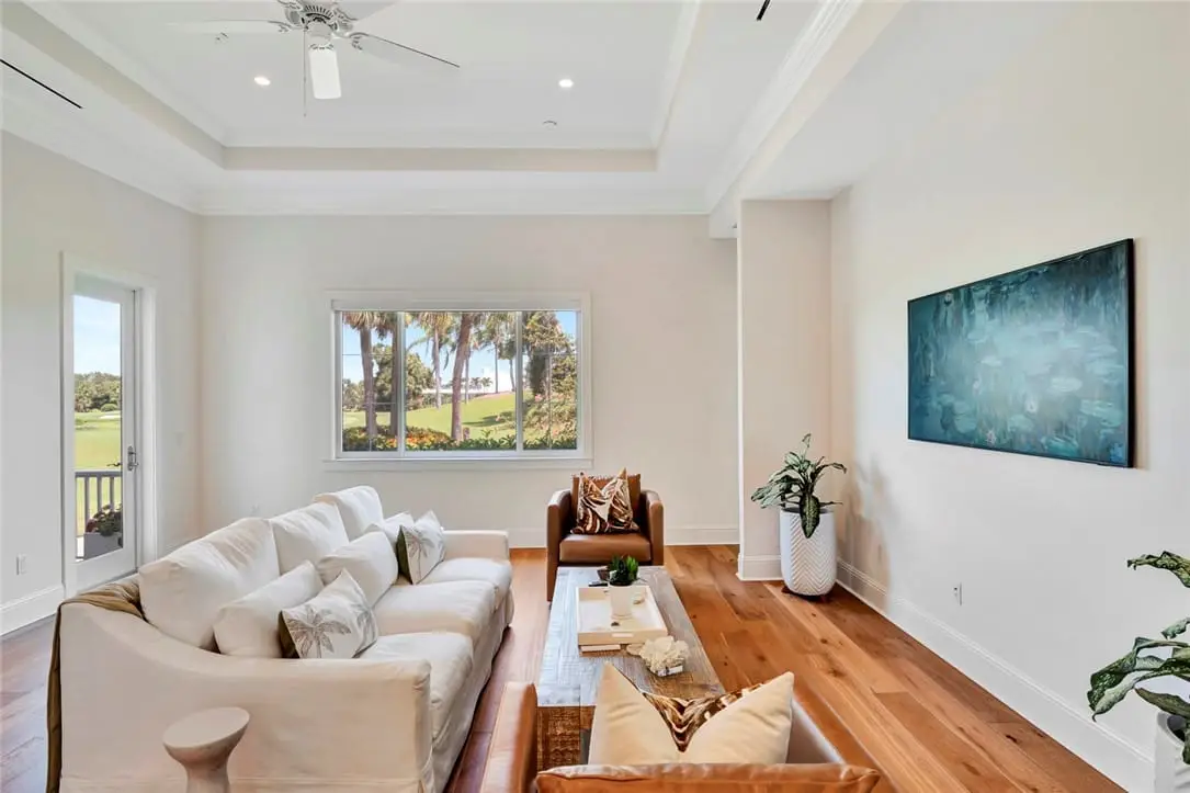 Built in 2020, this beautifully appointed home overlooks the 14th green & 15th tee box in Orchid Island. Currently the most recently built listing available in Orchid Island. This bright & open feel home offers wood floors, impact glass, full home generator & whole home water purification system. Gourmet kitchen w/wolf gas cooktop, butler's pantry w/beverage cooler, formal dining & breakfast nook. Den opens to lanai w/built-in grill overlooking the heated courtyard pool. A/C 2 car + golf cart garage. Stunning golf views. Membership to Orchid island is mandatory. Sizes approx./subj. to error.