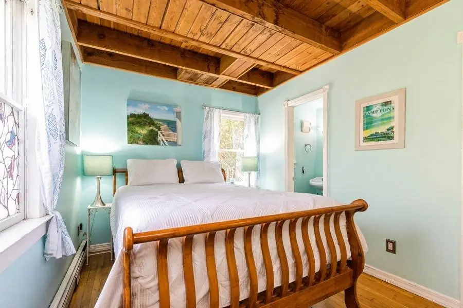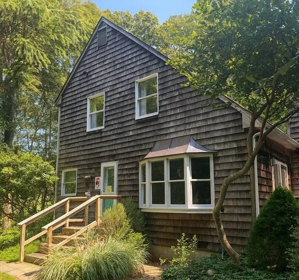 Set on a quiet, wooded full one-acre lot, this John Conner custom-built property offers ultimate peace and quiet , yet just two miles from the action packed center of East Hampton Village. Surrounded by high-end homes, it's a great opportunity with plenty of potential. The current three-bedroom shingled saltbox-style home is cozy and welcoming, with room to expand or renovate to suit your vision. The lot is large enough to add a pool, pool house, tennis court, garage - or even all of them - while still keeping the private, peaceful feel. The home features two bedrooms upstairs and one on the main floor, with full bathrooms on both levels. Exposed beams and tongue-and-groove ceilings add rustic character to the main living areas. The updated kitchen includes solid wood cabinets with soft-close hardware, quartz countertops, and new stainless steel appliances. The living room includes a European wood-burning stove that can heat the entire house. Large bay windows and glass doors let in plenty of natural light, and a south-facing deck provides a private outdoor space to relax. There's also an outdoor shower. The extensive gardens feature a variety of mature trees, including Hinoki Cypress, European Beech, Deodar Cedar, and Japanese Maple. With a bucolic setting, prime location, and space to grow, this is a great opportunity to create your very own East Hampton retreat.