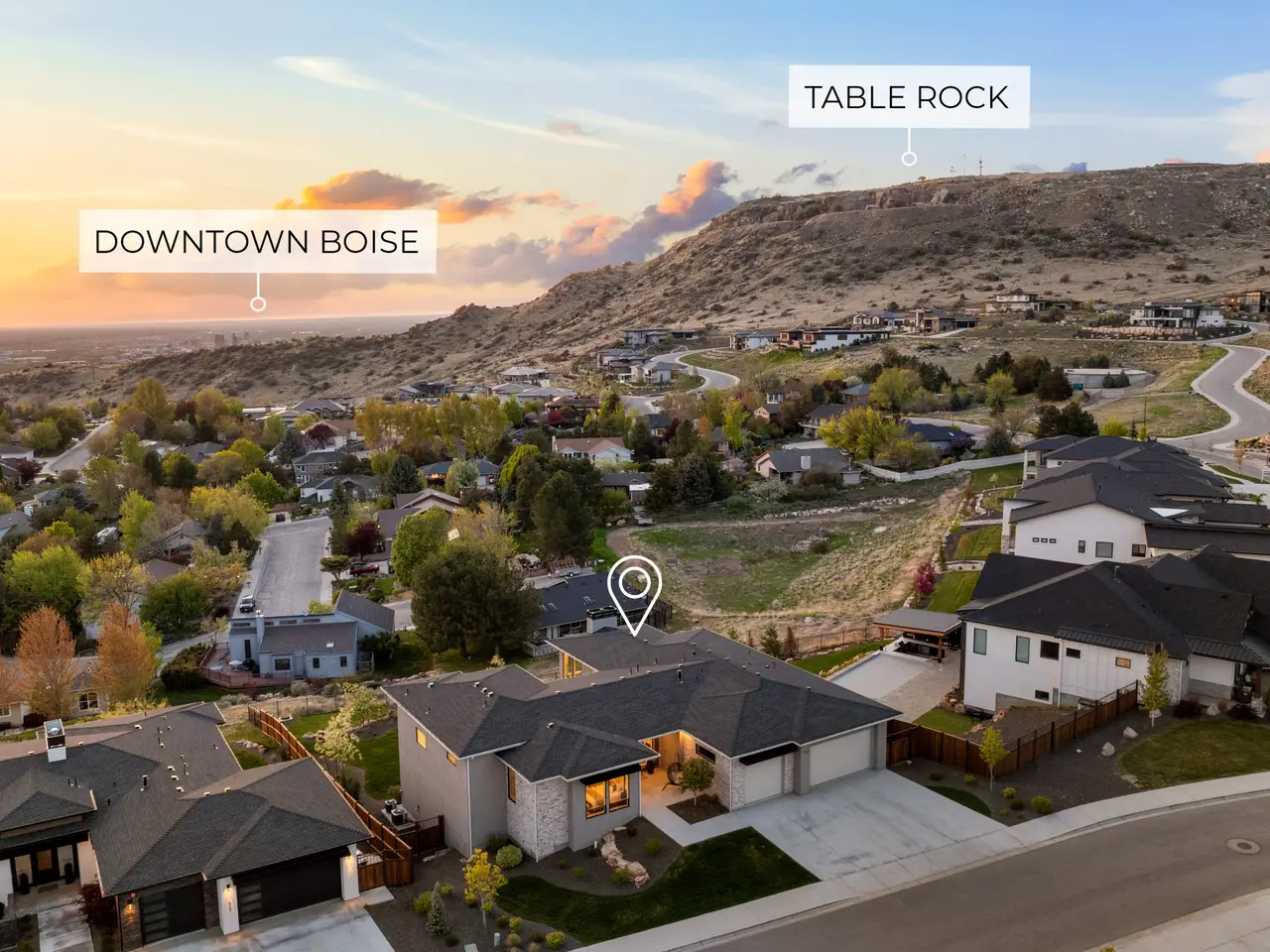 Perched on an exclusive rim-view lot in Boulder Point, this one-owner residence captures sweeping views from Table Rock to Downtown! Designed to live like a single level, the home features a walk-out lower level and a layout that seamlessly blends indoor and outdoor living. The grand foyer opens to an expansive great room with 11’ ceilings, hardwood floors, & walls of windows. The kitchen showcases floor-to-ceiling cabinetry, marbled quartz countertops, and a suite of built-in Wolf & Sub-Zero appliances. The main-level master offers private balcony access & a spa-inspired en suite bath. A fabulous guest suite completes the main level. The walk-out lower level expands the living space with a generous bonus room, additional bedrooms, & direct access to a flat lawn - perfectly suited for a future pool. Additional upgrades include Hunter Douglas automatic blinds, and an invisible pet fence. Residents enjoy access to a clubhouse, swimming pool, neighborhood trails and the best of Boise living!