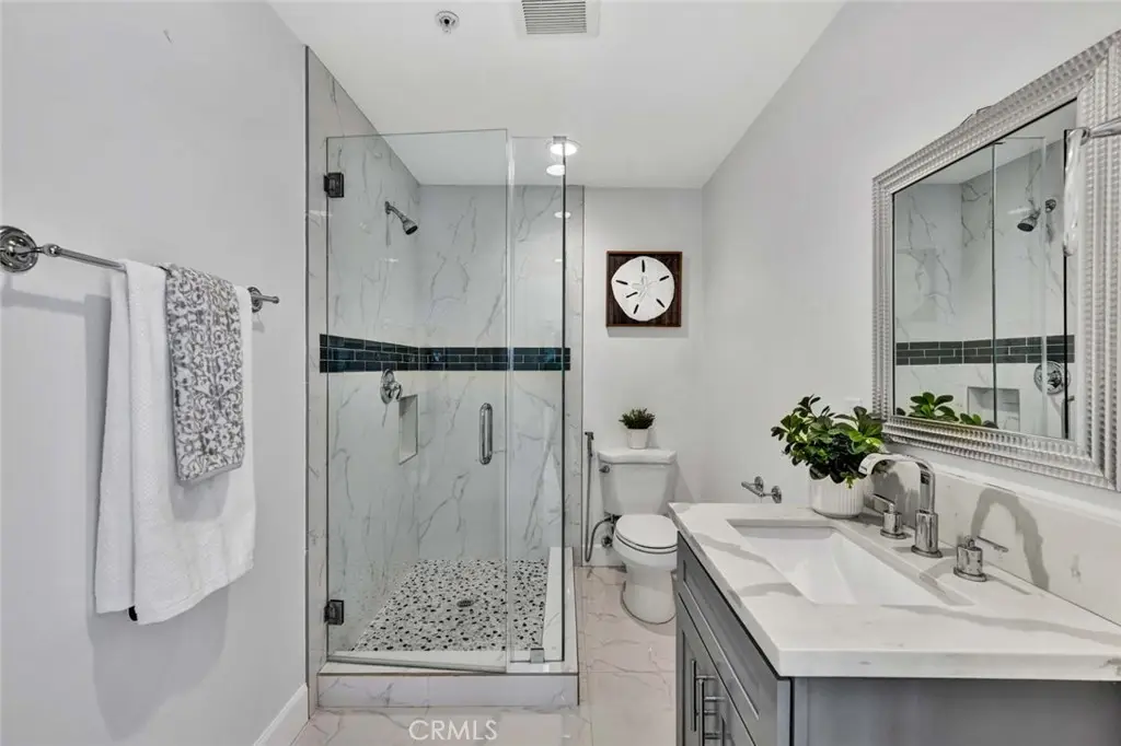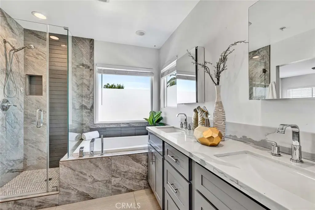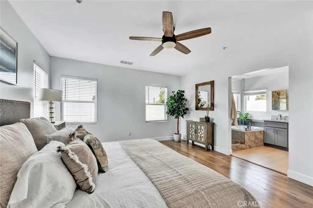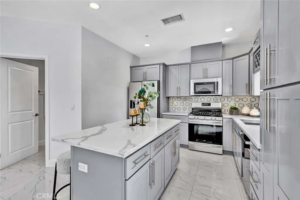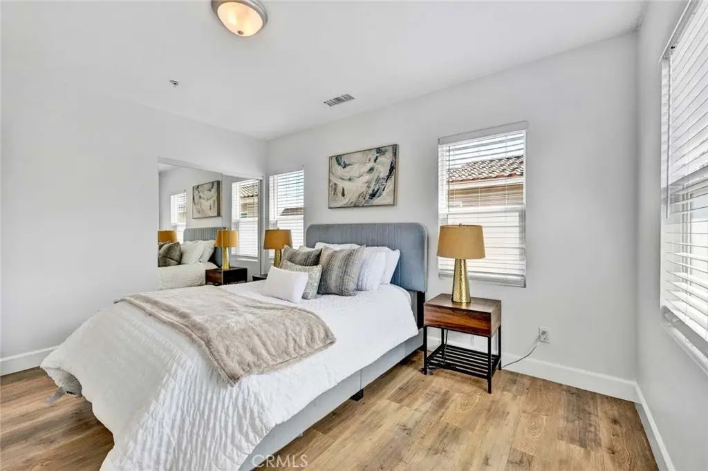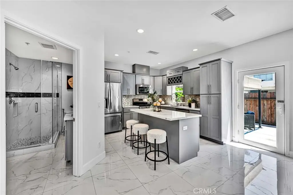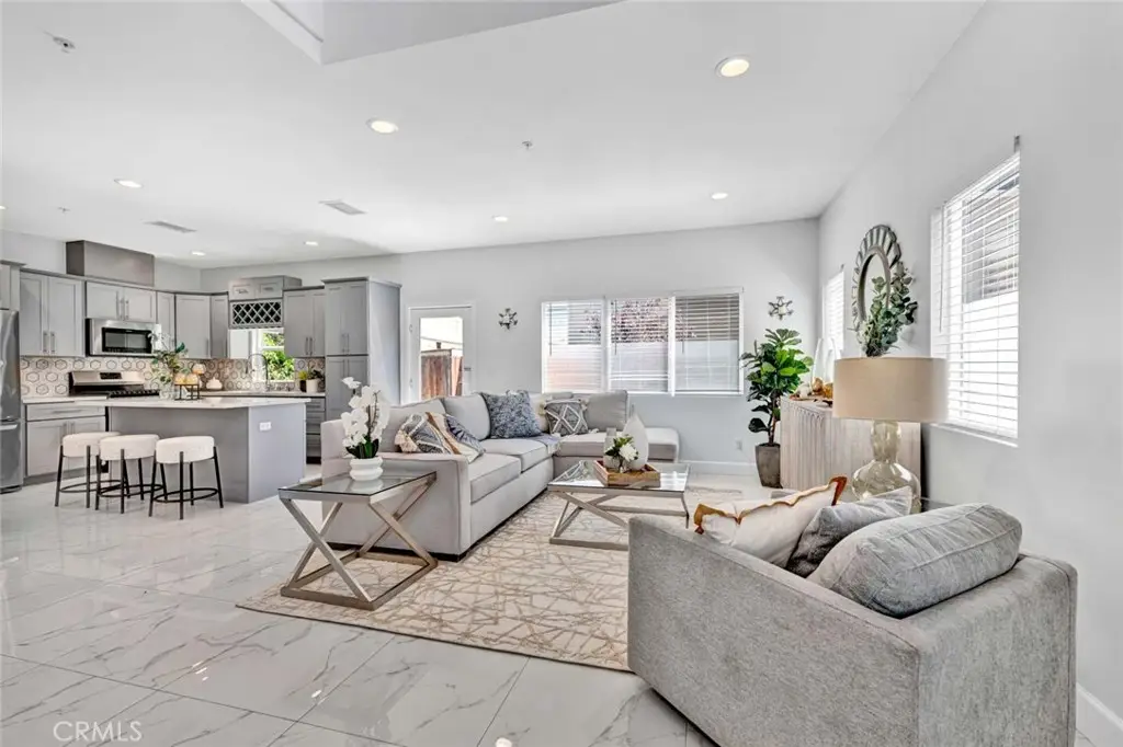 Nestled in an exclusive small enclave of just three newly built detached homes, 8196 18th Street offers luxury living, just steps from Westminster's Liberty Park This stunning 4 bedroom, 3 bathroom residence (including one downstairs bedroom, currently an office, and bath) and spans 2,105 square feet and features a finished 2-car garage plus a full 2-car driveway. Sophisticated architectural details and expert craftsmanship is evident throughout this beautiful home with its open concept floorplan, high ceilings, an abundance of natural light, central A/C, and upscale finishes including wood laminate and designer marble-type tile flooring, dual pane windows, LED recessed lighting, ceiling fans, quartz countertops, self-closing cabinetry, raised panel interior doors, and striking light fixtures. hand-crafted wood and wrought iron staircase railings, and a chef's dream kitchen complete with center island with seating, chic designer tile backsplash, and stainless appliances. The open layout seamlessly connects the kitchen to the living and dining areas, creating a harmonious flow that's ideal for both entertaining and everyday living. A French door opens to the wrap-around patio, ideal for outdoor dining and barbecues. Upstairs there is a loft with a desk niche and a cat walk with wrought iron railing that connects all the rooms and is open to the living room below. with the wrought iron railing. The luxurious primary suite features a large walk-in closet and a spa-style bathroom with dual sinks, privacy toilet, a jetted soaking tub, and separate walk-in shower with frameless glass surround. 2 additional bedrooms with mirrored closets, a guest bath with tub/shower combo, and an oversized laundry room with cabinets and utility sink complete the upper level. It boasts lovely curb appeal with stacked stone siding, tile roof, concrete planters with beautiful foliage, and beautiful walkway through the common area. Though classified as a detached condo, this home is truly a luxurious, highly desired single family home offering refined, turnkey living close to shopping, dining, schools, parks, and the heart of Little Saigon.