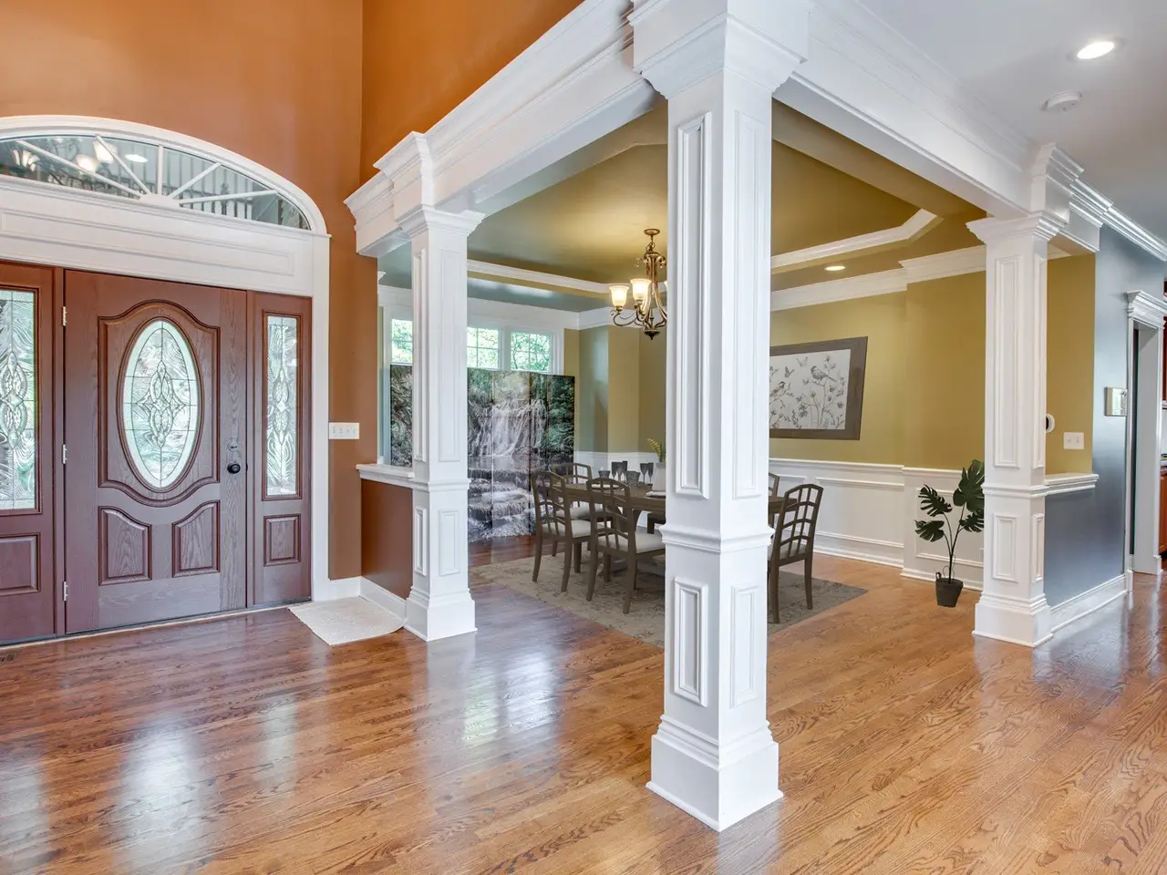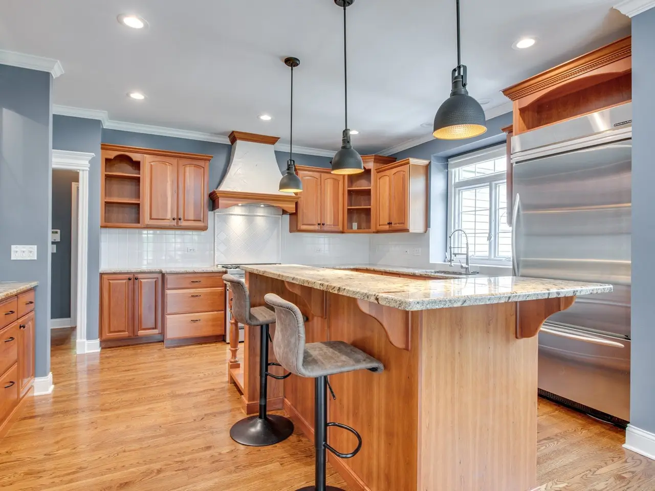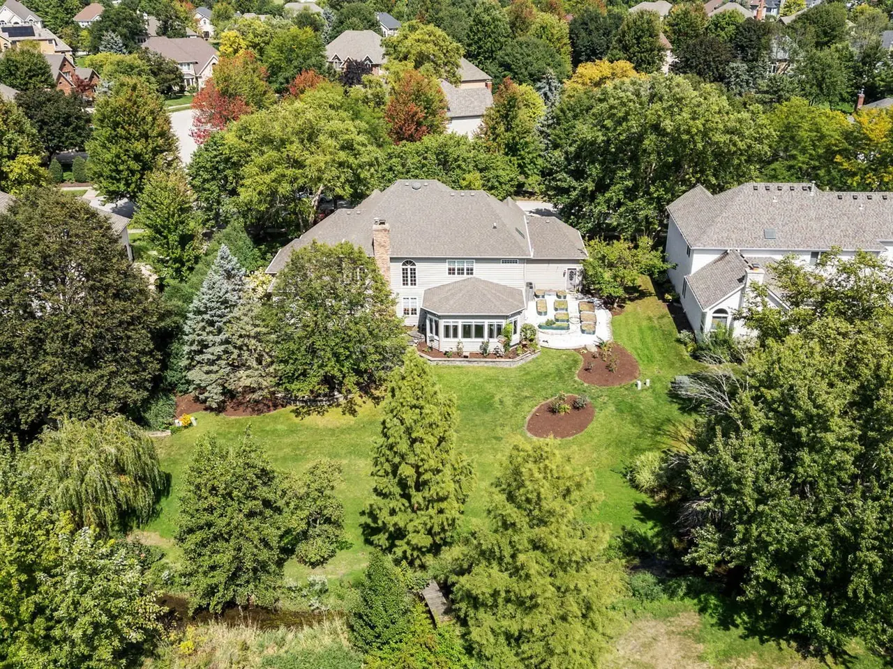 Nestled on an amazing, premium .46 acre conservation lot in one of Naperville's most sought-after neighborhoods, River Run, you will find this stunning property offers a blend of modern elegance and serene tranquility. Rear Southern exposure offers tranquil views of the lot overlooking a gentle stream with it's own private bridge, extensive landscape gardens, outdoor living space/paver stone patio, pergola, and koi pond ('as is). The thoughtfully designed custom floor plan offers a first-floor primary bedroom, 9 & 10-foot ceilings, volume/tray ceilings throughout, & arched windows/transoms. Throughout the main and second levels, you'll be greeted by the warmth of hardwood floors and architectural/Capitol & crown moldings, wainscoting, wide custom millwork. The open layout seamlessly connects the living spaces, creating an ideal environment for both entertaining and daily living. FR w/18 ft. volume ceiling, 2 Sty fireplace w/brick/decorative wood front, marble hearth, gas logs, full wall built-in cherry bookcase/cabinet, arched windows & ceiling fan. The chef will love the kitchen offering an oversized island, commercial-grade stainless steel appliances: 6-burner, fully-vented Thermador gas oven/range, along with a second B/I oven, New Samsung DW, faucet '24, Kitchenaid B/I refrigerator/freezer, walk-in pantry with new custom wood shelving '24; a wrap-around butler pantry w/wet bar for additional serving options; spacious separate bay-window breakfast area. The adjoining sunroom was converted to a 4-season room (both heat & air), which allows for additional flex space on the main level for entertaining, relaxing, and taking in the serene views. The first floor boasts a luxurious, spacious primary suite with w/built-in dresser/bookcases '24, new custom WIC with glass/wood cabinets '24. The whirlpool bath and updated marble double shower offers a private retreat with unique exterior access to the patio/gardens. Even with a rare first-floor primary bedroom, the floor plan still allows for formal living & dining rooms as well as a first-floor office with built-ins & French doors in a private location. 1st floor laundry room with storage, new deep stainless utility sink, new Samsung W/D '24, laundry chute, and additional cubbies to keep everyone organized. 3-car garage with rear service door, outlet for your EV & two EDOs. Two full staircases to the 2nd floor. Upstairs, you will find a cozy loft area perfect for a homework desk. Spacious BRS #2 & #3 share a divided Jack-N-Jill bathroom, w/volume ceiling & skylight. Bedroom #4 boasts cathedral ceiling & an en-suite private bath to ensure comfort and privacy for family or guests alike;All 3 BRs have WICs and hardwood floors. The finished lower level is an entertainer's delight, featuring a media room, tiered reclining seating (6), projection movie screen, perfect for movie nights or gatherings with friends. There is plenty of additional space to break out the board games or add a pool table in the recreation room with the convenience of a mini-beverage counter. Potential in-law/related living w/guest room/5th BR and full bath on the lower level (or use the main level bedroom). A second office in the LL offers built-in desk & coordinating shelving units. New items include: new tear-off architectural roof '21; gutters & Leaf Guard '21; two dual-zoned furnaces, A/C ' two Aprilaire humidifiers '24; one new gas water heater '24; an insulated, tall leaded glass front door '24, raised garden beds '24. Reverse Osmosis water purifier '24; The basement also features additional storage, mechanical room & second refrigerator (kiln "as is"). Included is a bond to the River Run Club (value $10K), clubhouse, tennis, year-round indoor pool plus outdoor pool in the neighborhood. Located in Neuqua Valley HS District 204; Don't miss this amazing opportunity!