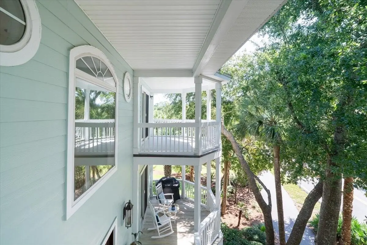 It's the best of both worlds! Island living in a Quintessential two story Charleston style home overlooking the 4th green of the famed ''Wild Dunes Links Course'' and yet only a short walk to the beach at the Isle of Palms. This meticulously maintained 4 bedroom-3 bath home has a bright open floorplan that flows seamlessly onto the porches, outside decks and balconies... Relax on the bed swing or rock the afternoon away listening to your favorite tunes and watch a great putt being made. Enjoy the view of marsh wildlife and Herons perched in the live oaks along the lagoon. The remodeled kitchen has abundant custom cabinetry, granite counters, a center Island with Dacor gas cooktop/stove, the refrigerator (Kitchenaid), dishwasher, microwave, wine cooler are all stainless steel GEMonogram appliances and a central vacuum system. The living room has fireplace with gas logs (2020), built-in book shelves double sliding glass doors to the outside screened porch and deck area. Custom Detailed features throughout this home are: updated baths, hurricane film coated windows & doors, Plantation shutters, oak flooring, tiled baths, 9 ft ceilings, recessed lighting, ceiling fans, chandeliers, crown molding. Recent improvements: New roof (2021) complete exterior painting (2021)...new garage door/motor (2025), new propane tank (2025) both HVAC units (2023 & 2014) First floor has a bedroom that could be a second master with full bath, walk-in closet and a balcony overlooking the lagoon. Upstairs is the primary bedroom and bath with separate shower and soaking tub, his and her vanities and two walk-in closets. Sliding glass doors access the large private porch to enjoy the outdoors and cool breezes. Additionally, there are two guest bedrooms with a Jack & Jill full bath. One bedroom is currently being used as an office the other bedroom also has its own balcony to enjoy the outdoors. Professionally landscaped with Palmetto trees, sago palms, magnolia trees, ornamental shrubs and grasses accenting the Live oaks. Landscape lighting and zone irrigation system. Large two car garage with plenty of storage and room for a golf cart. There is also a cabana style shower to use when returning from the beach. Conveniently located to all the resort amenities: Property owners Beach house, onsite restaurants, two golf courses, tennis courts, fitness center, marina, bike, jogging trails and 2 ½ miles of beachfront shore line. It's a short drive to downtown Historic Charleston and easy access to the airport.