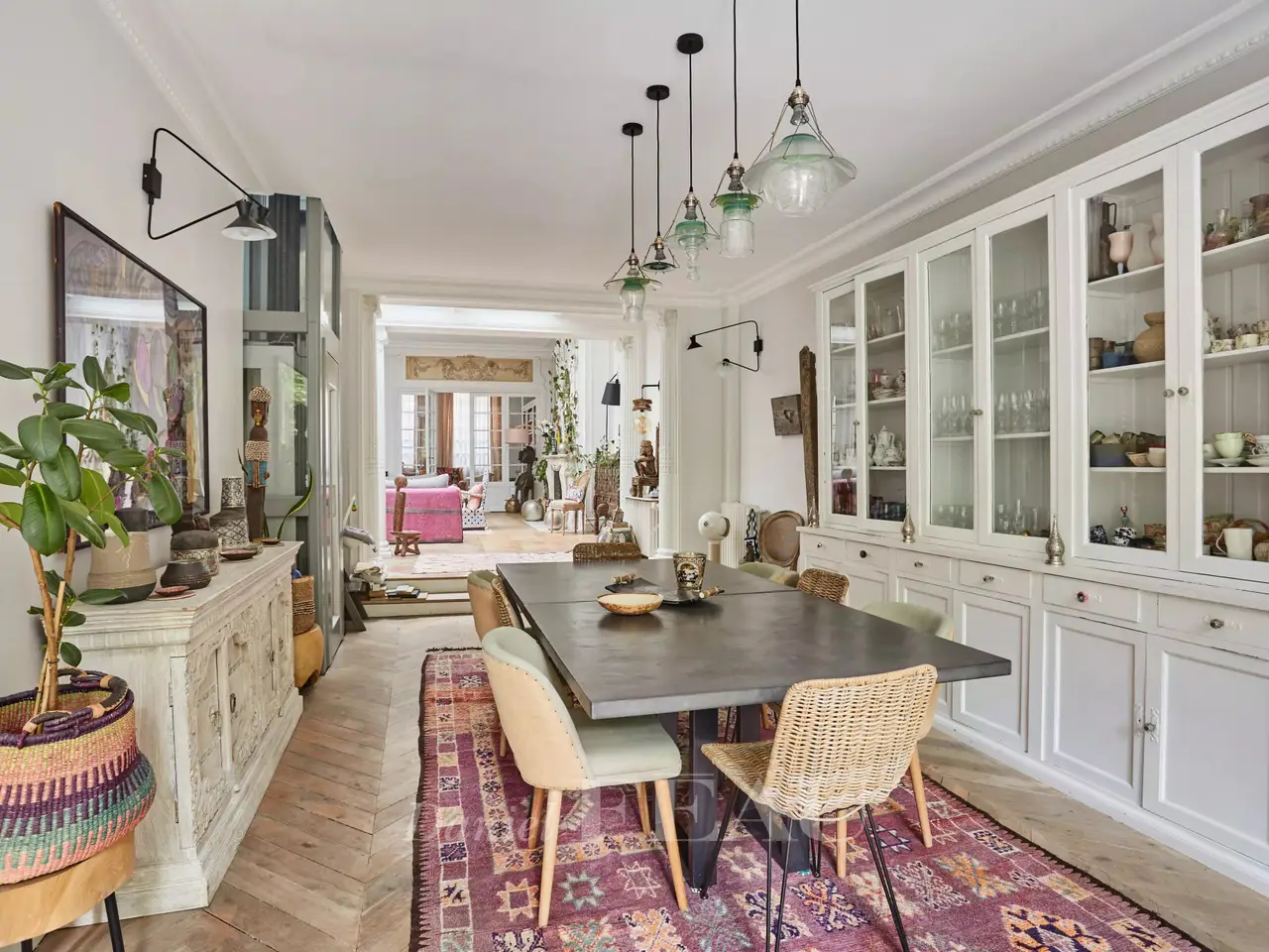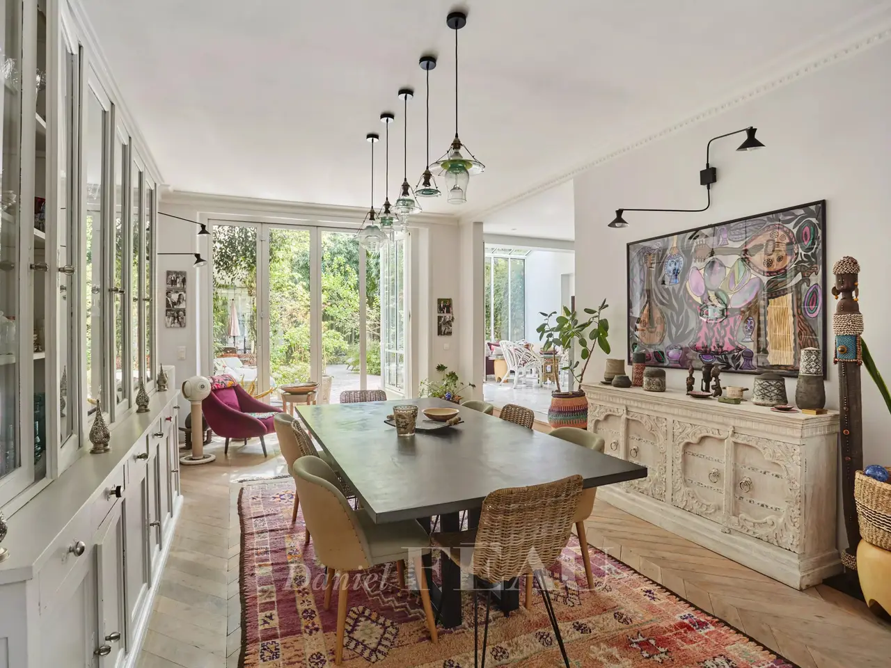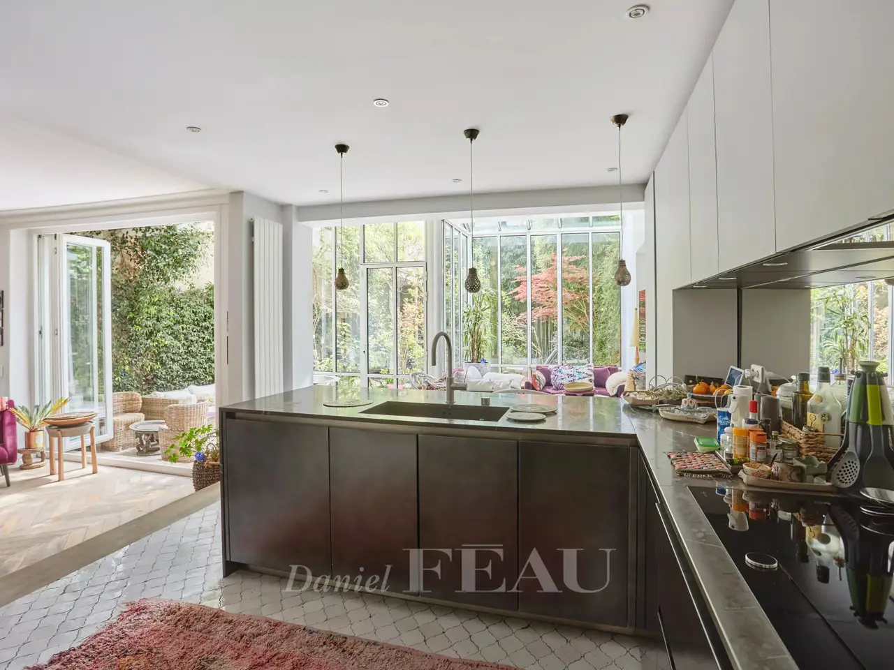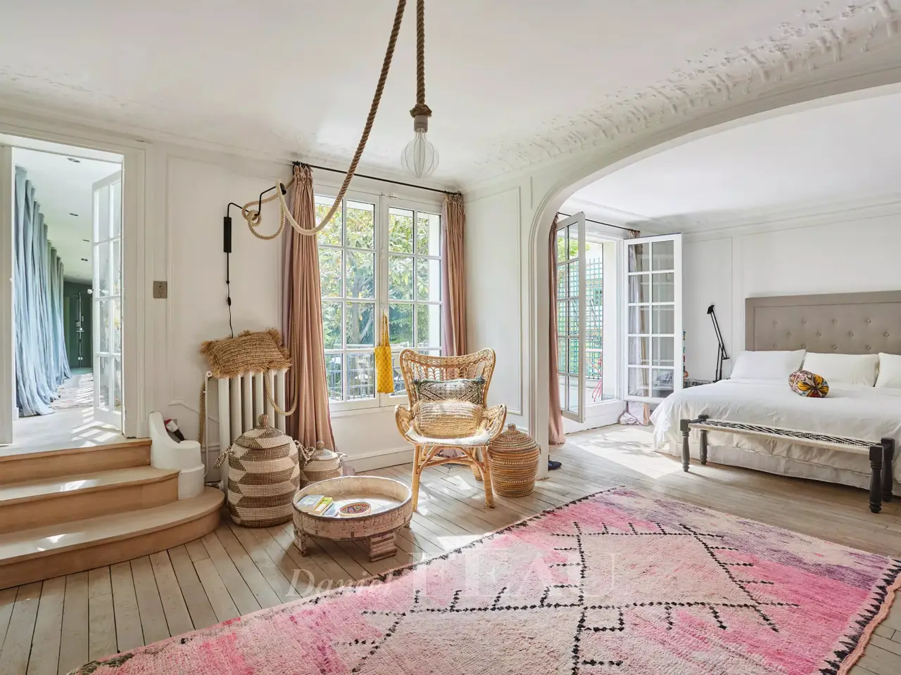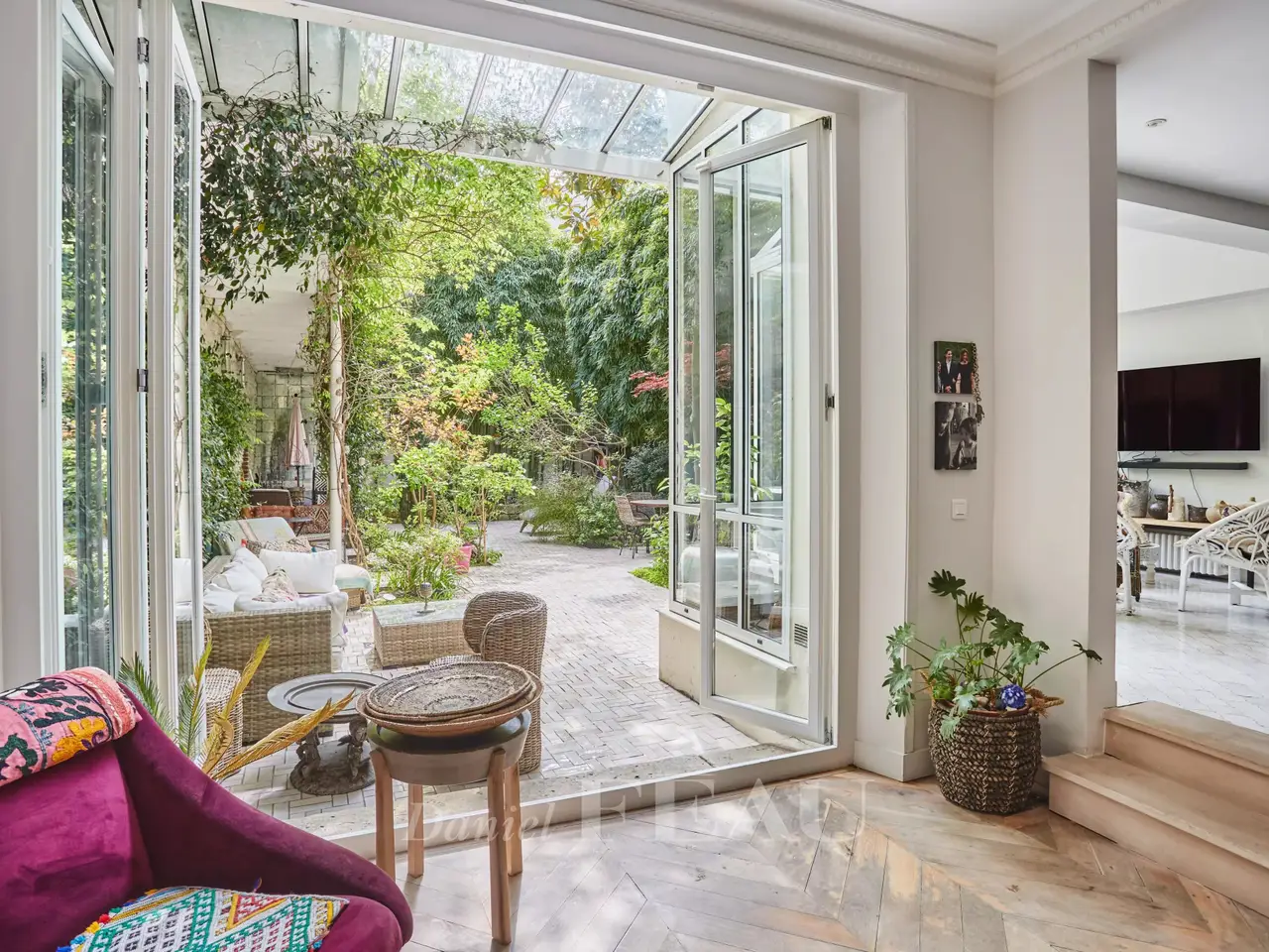 This exceptional private mansion is located in a peaceful street near Promenade Pereire and Lebon Market. Dual-aspect, it includes a bright living/reception room, a drawing room, a dining room, a kitchen with dining facilities, and a beautiful conservatory opening onto and a superb fully south-facing landscaped garden with a well. Upstairs are a master suite with a bathroom/wc, a shower room and two dressing rooms opening onto a terrace, two bedrooms and a bathroom. The top floor comprises a family room, a shower room, two further bedrooms, a study area and a shower room/wc. On a basement with a utility area, technical premises, storage rooms and a superb wine cellar.