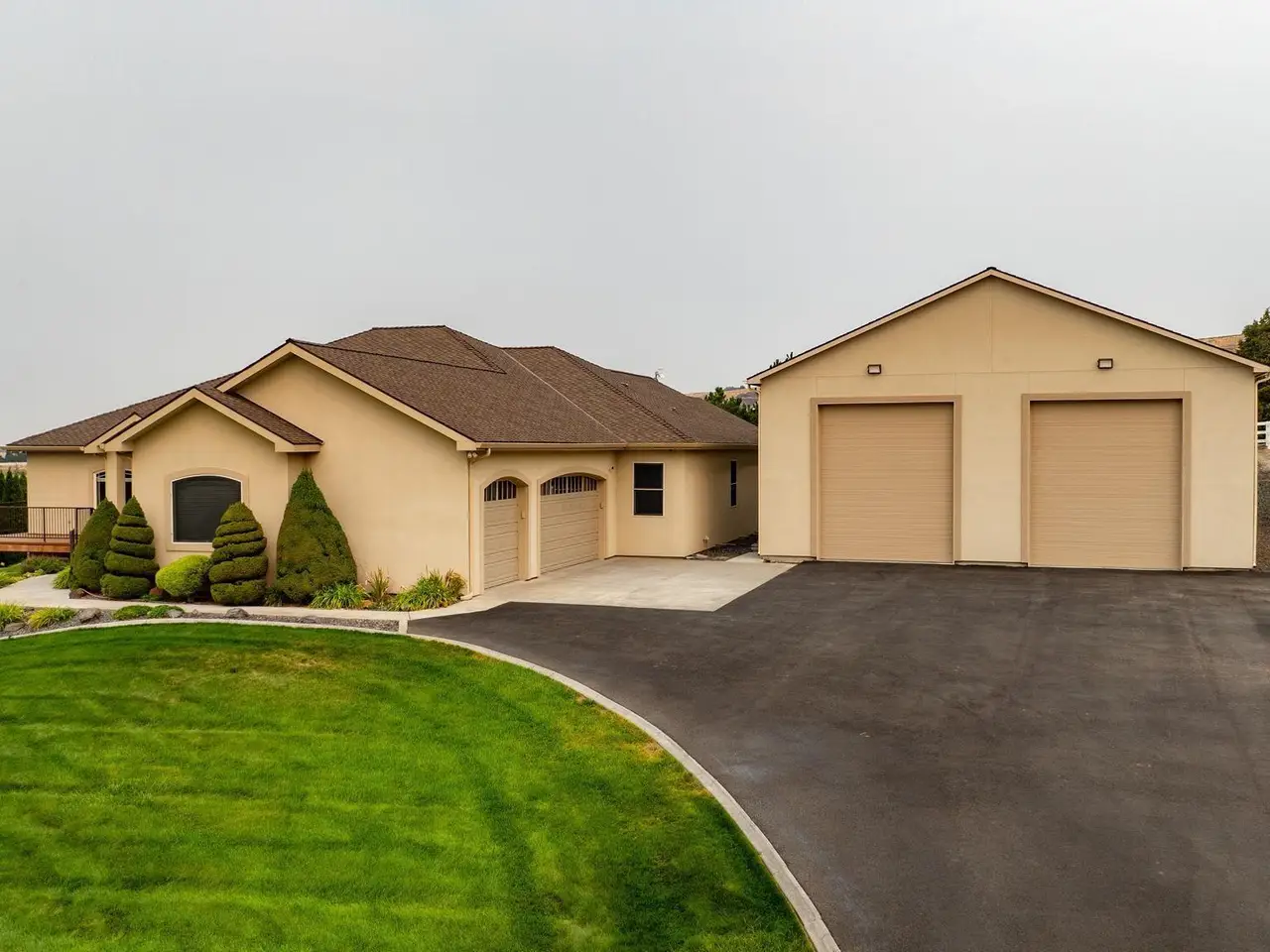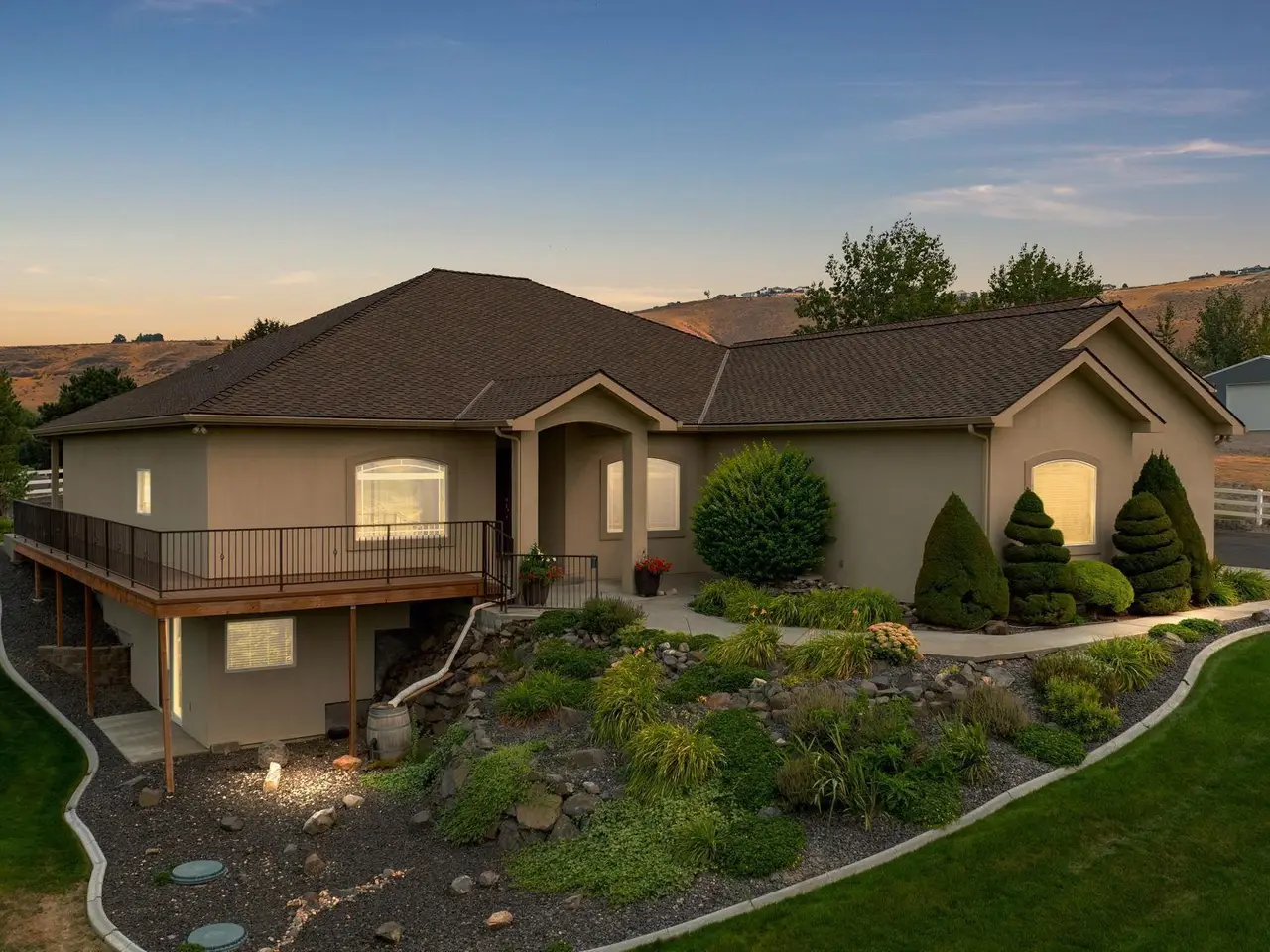 Experience the perfect blend of comfort, style, & functionality in this spacious 5-bed, 5-bath home, with a Daylight / Walkout Basement nestled on a picturesque, fully fenced 2-acre property overlooking Badger Canyon with NO HOA that allows for all your Animals. Hardwood floors just resurfaced flow throughout the main living areas, creating a warm & welcoming atmosphere with newer interior paint. The great room features a cozy gas fireplace, while the formal living area & large lower-level rec/family room (plumbed for wet bar) provide ample space for relaxation & entertaining. The gourmet kitchen is a chef’s dream, boasting a generous breakfast bar, granite countertops, stainless steel appliances, a gas cooktop, double ovens, abundant wood cabinetry, a pantry, & formal dining area perfect for hosting gatherings. Five spacious bedrooms & three full bathrooms, plus two half baths, offer plenty of room for family and guests. One of the bedrooms has its own ensuite, & two of the bedrooms share a Jack and Jill style bathroom. The luxurious master suite includes patio access, a large walk-in closet, private bath with a dual-sink vanity, jetted tub, & walk-in tiled shower. Outdoor living is a delight with a spacious deck showcasing the panoramic views & a private covered patio area ideal for enjoying the beautiful summer weather. Car enthusiasts & hobbyists will appreciate the attached 3-car garage & the impressive 40x60 fully finished, insulated shop, that is heated & cooled, with 2 12’x14’ doors with openers, providing ample space for projects, storage, & all your toys. This home is loaded with upgrades for comfort & efficiency, including: Broadband WiFi – ADT security System - GEOTHERMAL heating system for optimal utility efficiency - VERSATEC Water Furnace - HONEYWELL F300 Electronic Air Cleaner & APRILAIRE Series 800 steam humidifier ENERGYSMART electric water heater (reducing off-cycle energy costs by up to 30%) - KINETICO Premier Series XP water softener - VIQUA D4 ultraviolet POE water treatment system for superior water quality protecting from harmful microorganisms, plus reverse osmosis tap and mineral magnet - HYDROWISE automatic garden & lawn sprinkler system. Located in a quiet neighborhood with a peaceful country feel, this exceptional property offers easy access to Tri-Cities amenities, schools, and convenient highway access. Discover the perfect retreat that combines luxury, efficiency, and breathtaking scenery.