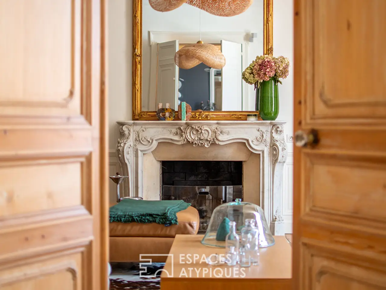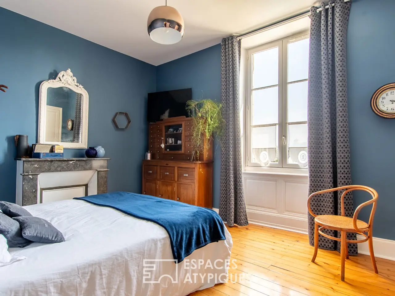 Nestled in a verdant setting, sheltered from view, this sumptuous 18th-century manor house is located in the very heart of Cholet. It unfolds its elegant architecture over 260 m2 of living space, set within a rare landscaped plot of over 1,400 m2. This prestigious residence is a true testament to refinement, combining charm, space, and authenticity to offer a unique living environment. This exceptional property consists of a main building and a stone outbuilding. The entrance hall reveals an interior where solid wood flooring, delicate moldings, sumptuous marble fireplaces, and generous ceiling heights blend harmoniously. On either side, a charming living room with a fireplace invites relaxation, and a refined dining room where every detail has been carefully considered. An independent semi-professional kitchen combines noble materials with contemporary design in a warm atmosphere, opening onto a pleasant terrace under a covered patio. A wooden staircase leads to the upper floor, comprising four spacious bedrooms, including a master suite with a walk-in closet and private bathroom, as well as two additional shower rooms. An 80 m2 outbuilding currently houses a large office with exposed beams, a valuable asset for this estate. The property also includes three covered garages and several outdoor parking spaces. The entire ensemble is enhanced by a landscaped, tree-filled garden, a heated swimming pool, and an orangery?elements that invite wonder and escape. This property captivates with its authenticity, comfort, and generous volumes, all orchestrated with care in a bucolic setting, just steps from the amenities of the town center. Only 5 minutes from the train station, 50 minutes from Angers and Nantes, and 1 hour and 10 minutes from Les Sables-d'Olonne. REF. CH4567 Additional information * 7 rooms * 4 bedrooms * 1 bathroom * 2 shower rooms * 1 floor in the building * Outdoor space : 1439 SQM * Parking : 3 parking spaces * Property tax : 4 504 € Energy Performance Certificate Primary energy consumption d : 163 kWh/m2.year High performance housing