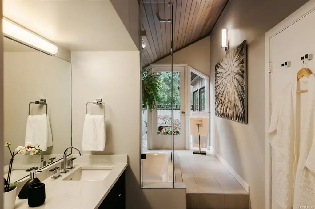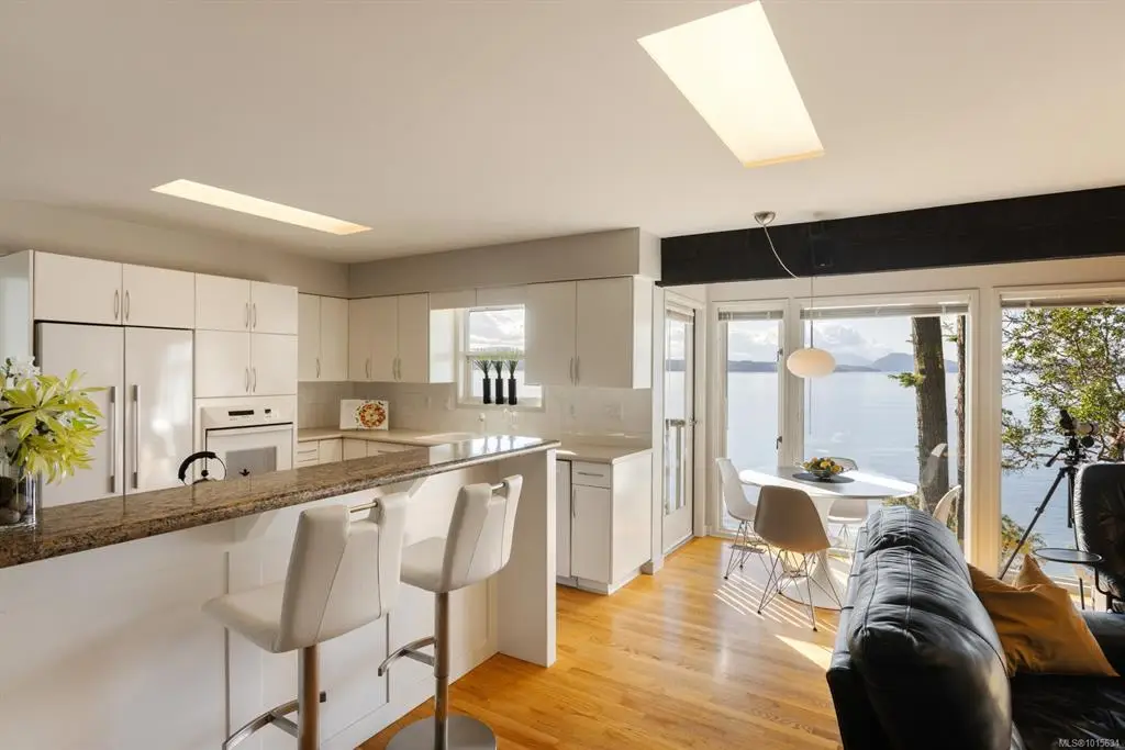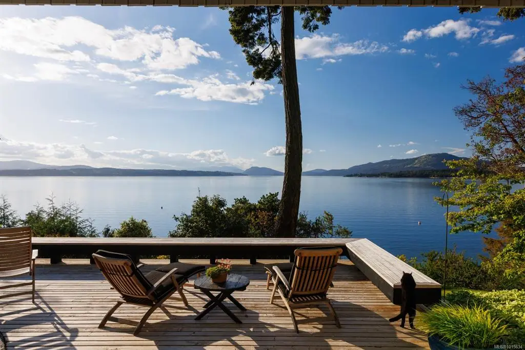 Exceptional waterfront home with breathtaking ocean views and private beach access! Situated on a beautifully landscaped 0.69-acre lot, this 3,109 sq.ft. residence is surrounded by mature greenery and a stunning natural shoreline—offering the perfect setting for an idyllic West Coast lifestyle. Designed to capture the views, the home features floor-to-ceiling windows, a spacious open-concept kitchen and living area ideal for entertaining, and a luxurious primary suite with a 6-piece ensuite and private sun deck. Step outside to enjoy tiered decks, patio space, and Western exposure that showcases incredible sunsets and vibrant coastal activity. A staircase leads directly to a sandy beach for true oceanfront living. Additional highlights include a self-contained 1-bedroom in-law suite with separate entrance. Located on the coveted west side of the Saanich Peninsula, this rare offering combines serene seaside living with easy access to nearby amenities.