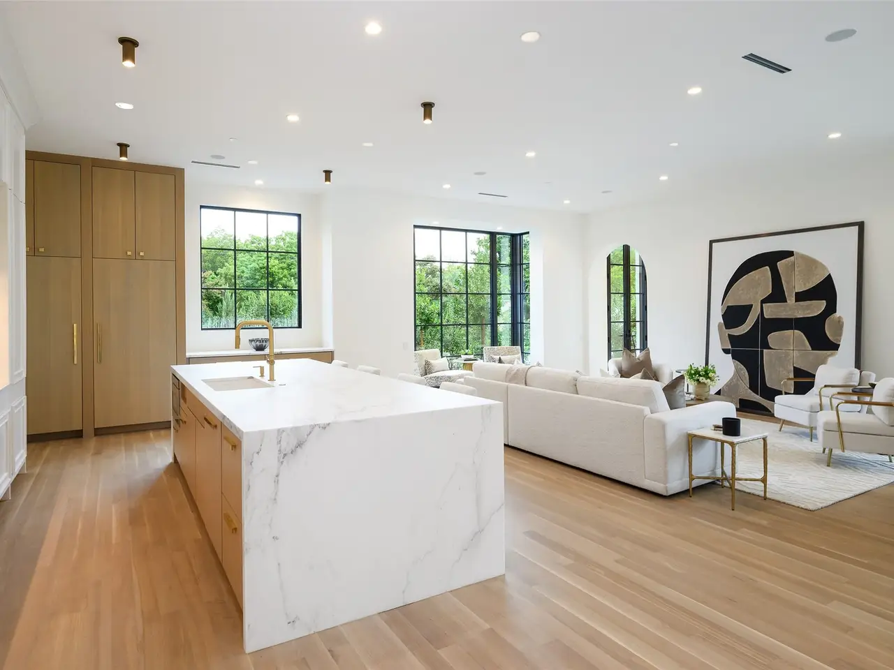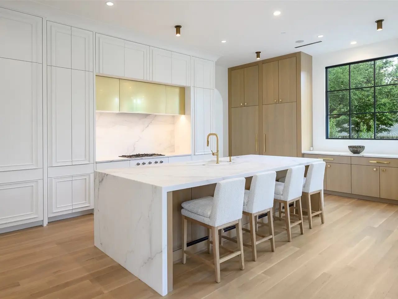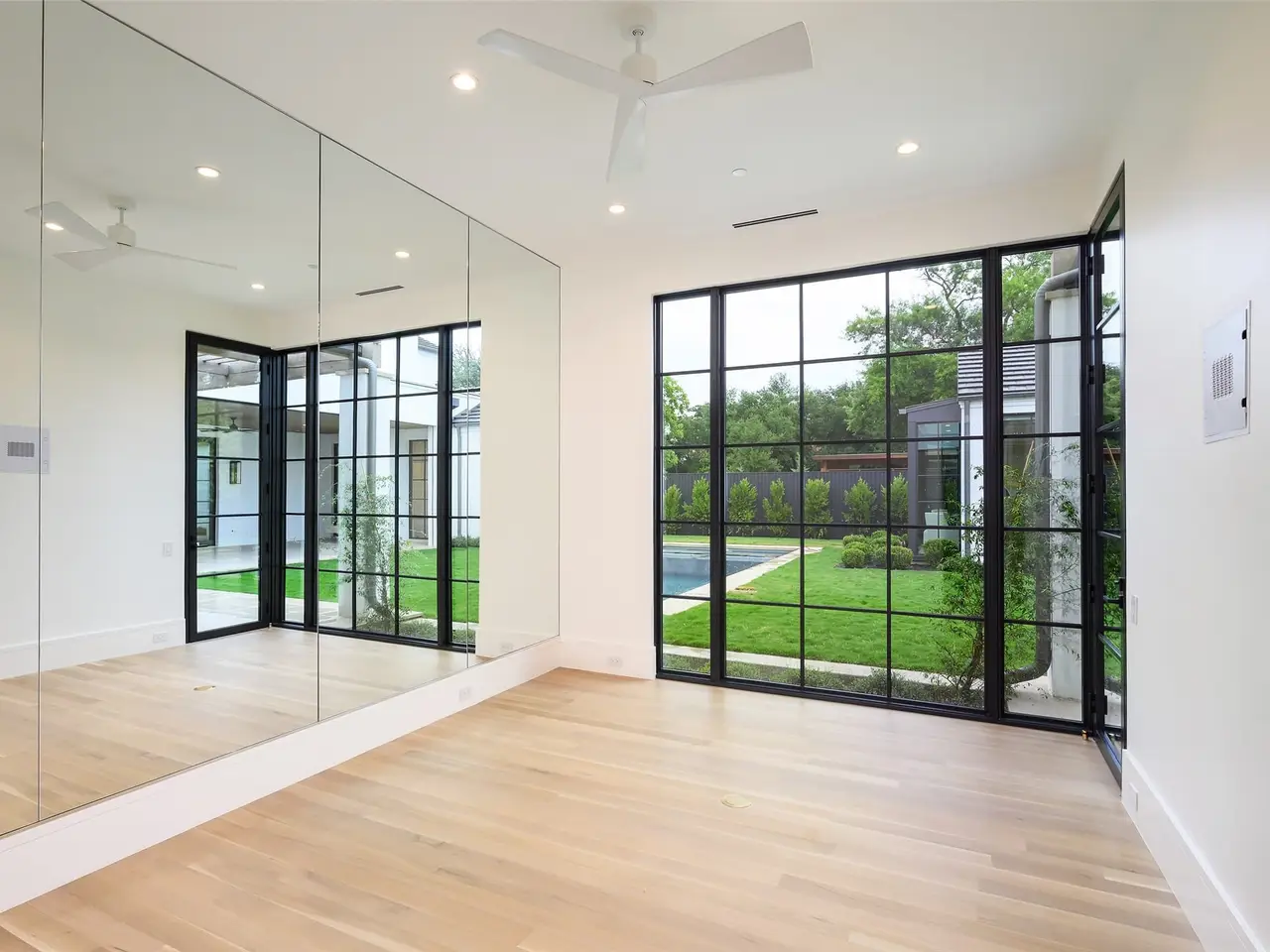 Situated on a prominent half-acre corner lot in one of Dallas' most coveted neighborhoods, 4407 San Gabriel Drive is a masterfully crafted custom home, completed in August 2025 by the esteemed SHM Architects. This architectural gem seamlessly blends clean, modern lines with warm, timeless materials to create a sophisticated yet inviting living environment tailored for today's discerning homeowner. Offering four spacious bedrooms, four full baths, and two elegant powder rooms, the home is designed with flexibility in mind - one upstairs bedroom can easily serve as a state-of-the-art media room. A private study provides the ideal space for working from home, while a dedicated gym promotes health and convenience. At the heart of the home lies an expansive great room, anchored by dramatic sliding glass doors that open to the outdoor living area, blurring the line between indoors and out. The dining room, wrapped in floor-to-ceiling windows, is filled with natural light - perfect for both intimate dinners and lively gatherings. The chef's kitchen is a showstopper, featuring Gaggenau appliances, sleek custom cabinetry, and a fully equipped butler's pantry with a built-in coffee machine - ideal for seamless entertaining. The primary suite, located on the main level for privacy, is a true retreat with a sunlit sitting area overlooking the backyard, dual walk-in closets, and a spa-inspired bath with dual vanities, soaking tub, and glass-enclosed shower. Step outside to a private oasis by Terrain Workshop, where curated landscaping surrounds a sparkling pool, and a covered patio with an outdoor kitchen invites year-round alfresco living. An attached two-car garage completes this thoughtfully designed home. Every inch of 4407 San Gabriel Drive reflects exceptional craftsmanship, timeless design, and architectural excellence in the heart of Dallas. Buyer and buyer's agent to confirm all measurements, lot size, and school info.