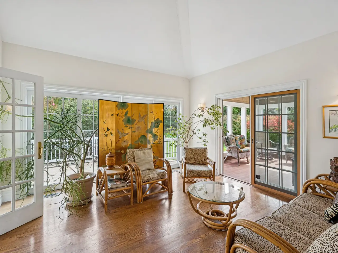 Experience the perfect harmony of sophistication and comfort in this captivating post-modern residence, where every detail has been artfully curated to elevate East End living. Comfortably set on 1.4 acres, this 3,500-square-foot home combines architectural artistry with refined amenities. Hardwood floors extend throughout, complemented by soaring cathedral ceilings and recessed lighting that create a luminous, welcoming ambiance. Floor-to-ceiling Pella windows bathe the interiors in natural light, while expansive sliders dissolve the boundary between indoor and outdoor living. French doors provide both privacy and elegance as they open gracefully into the formal dining area, where timeless ceiling details further enhance the atmosphere of refinement. A rare focal point, the living room fireplace is encased in imported marble, striking a balance between uniqueness and grandeur. Arched passages add architectural artistry, while an additional entertainment space - complete with a surround-sound system - invites vibrancy and rhythm, allowing music and life to flow effortlessly throughout the open design. Each room is further distinguished by custom crown and base moldings, a showcase of craftsmanship at its finest. The first level presents three spacious bedrooms and two full baths, blending comfort with thoughtful design. A dedicated laundry/mudroom, complete with newer washer and dryer, enhances convenience alongside a central vacuum, a two-car attached garage, and a full walk-out basement. The chef’s kitchen is both functional and striking, featuring black granite countertops, a center island, and custom cabinetry. Outfitted with a Viking stove, double oven, and new Samsung stainless steel appliances, it offers the perfect stage for culinary mastery. A sunlit breakfast nook encased in Pella windows provides a serene spot to begin the day, while the formal dining room sets an elevated stage for gatherings of every scale. Upstairs, a built-in library inspires culture and contentment, while a welcoming primary suite offers a private balcony and an additional sitting area. The ensuite bath is a true sanctuary of wellness, featuring a double vanity, an Aquatic jetted soaking tub, and an E-Steam sauna/shower designed to promote relaxation and rejuvenation. An additional upstairs bedroom provides versatility - ideal as a nursery, guest room, or private office - ensuring the home adapts gracefully to evolving lifestyles. While a classic mahogany front porch offers a gracious welcome, the backyard unfolds into a private retreat reminiscent of a landscaped park. The grounds, enriched with crepe myrtles, butterfly bushes, burning bush trees, and stately rhododendrons, are framed by PVC fencing that encloses a heated saltwater vinyl pool and inviting hot tub - providing both relaxation and recreation amidst a botanical backdrop. Whether basking in the sun or savoring tranquil evenings beneath the stars, the backyard seamlessly extends the home’s aura into its natural surroundings. Beyond the property, Remsenburg offers a lifestyle unlike any other—from sailing at the Westhampton Yacht Squadron to sun-filled days at Pike’s, Cupsogue, or Ponquogue Beach, every moment feels immersive. Whether admiring art at the historic Remsenburg Academy, enjoying live performances at the Westhampton Beach Performing Arts Center, or catching a film at the newly renovated Sunset Theater, the charm continues with local cafes, craft breweries, and the natural beauty of the Quogue Wildlife Refuge. Each day presents a new opportunity to savor coastal indulgence. Remsenburg - the hidden diamond of the East End, where elegance, community, and seamless indoor-outdoor living create a lifestyle filled with brilliance for your aspirations to shine.