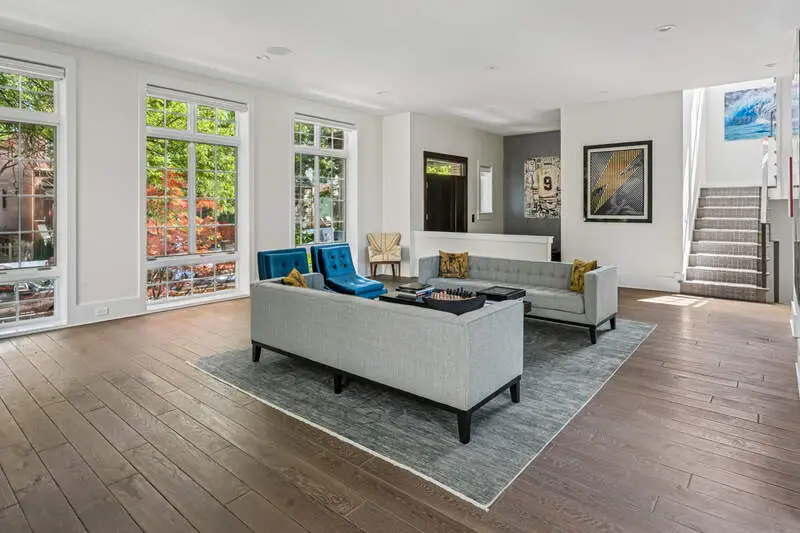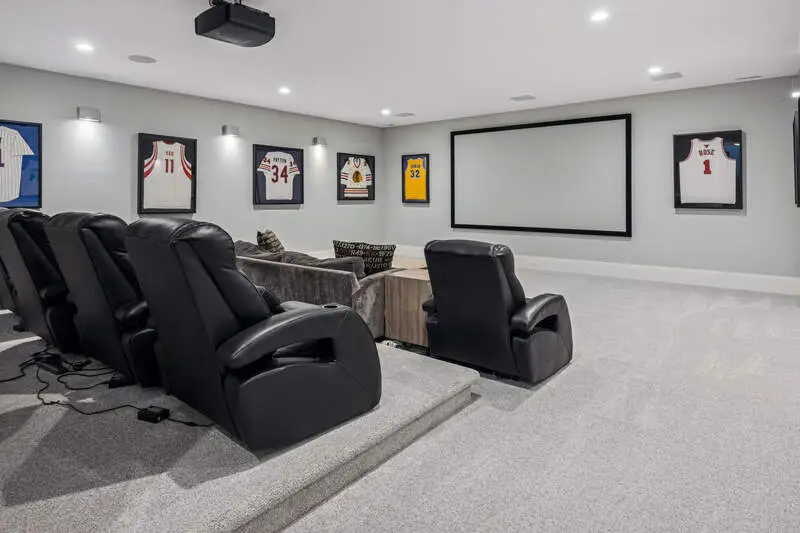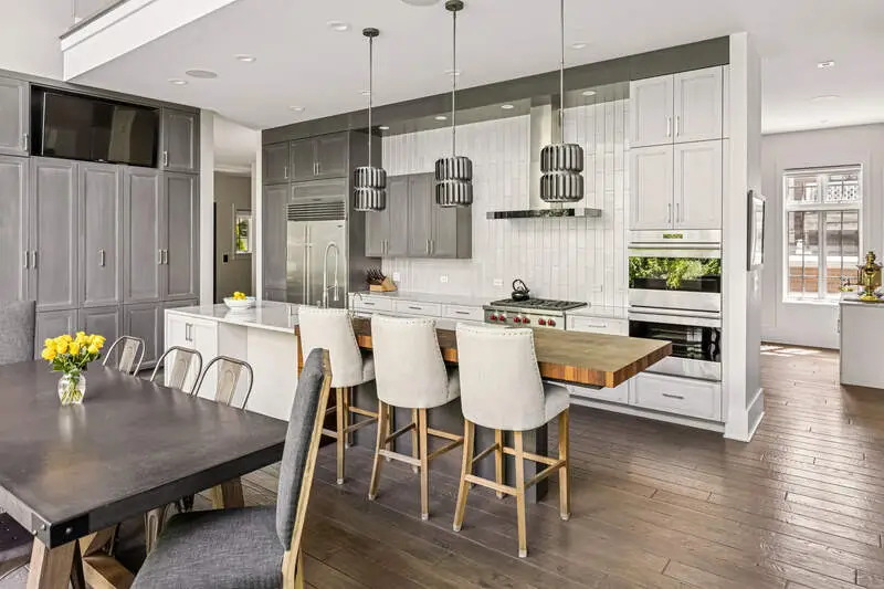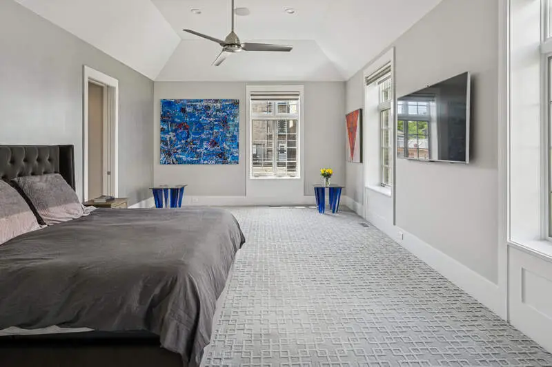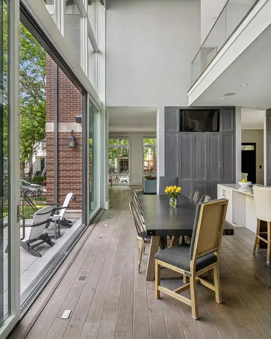 Commanding an impressive triple lot in the heart of Lakeview, this one-of-a-kind custom residence spans over 8,800 square feet, redefining luxury urban living. Designed for grand entertaining and effortless living, the home features six spacious bedrooms, five full bathrooms, and two powder rooms, ensuring comfort and privacy for all. Step inside to discover wide plank hardwood floors that flow seamlessly through the expansive main level. The state-of-the-art chef's kitchen is anchored by 15-foot sliding glass doors, blurring the lines between indoor and outdoor living as they open onto a private grilling deck overlooking the lush, landscaped side yard-an exceptionally rare feature in the city. Upstairs, retreat to serene bedroom suites with plush carpeting, including a primary sanctuary with spa-inspired amenities and two walk-in closets. Downstairs, indulge in the ultimate entertainment experience with a professionally designed movie theater. Additional features include geothermal heating and cooling for year-round efficiency and sustainability, a 1,200 square foot five-car garage with an expansive roof deck above for outdoor gatherings, and a full side yard offering endless possibilities for recreation and relaxation. This is more than a home; it's an estate designed to set a new standard in Chicago luxury living.