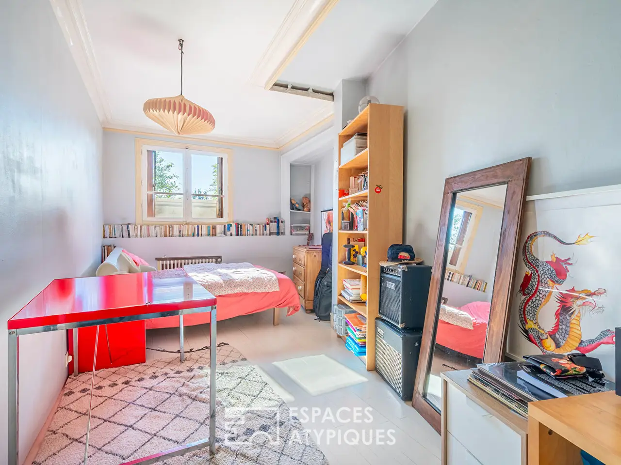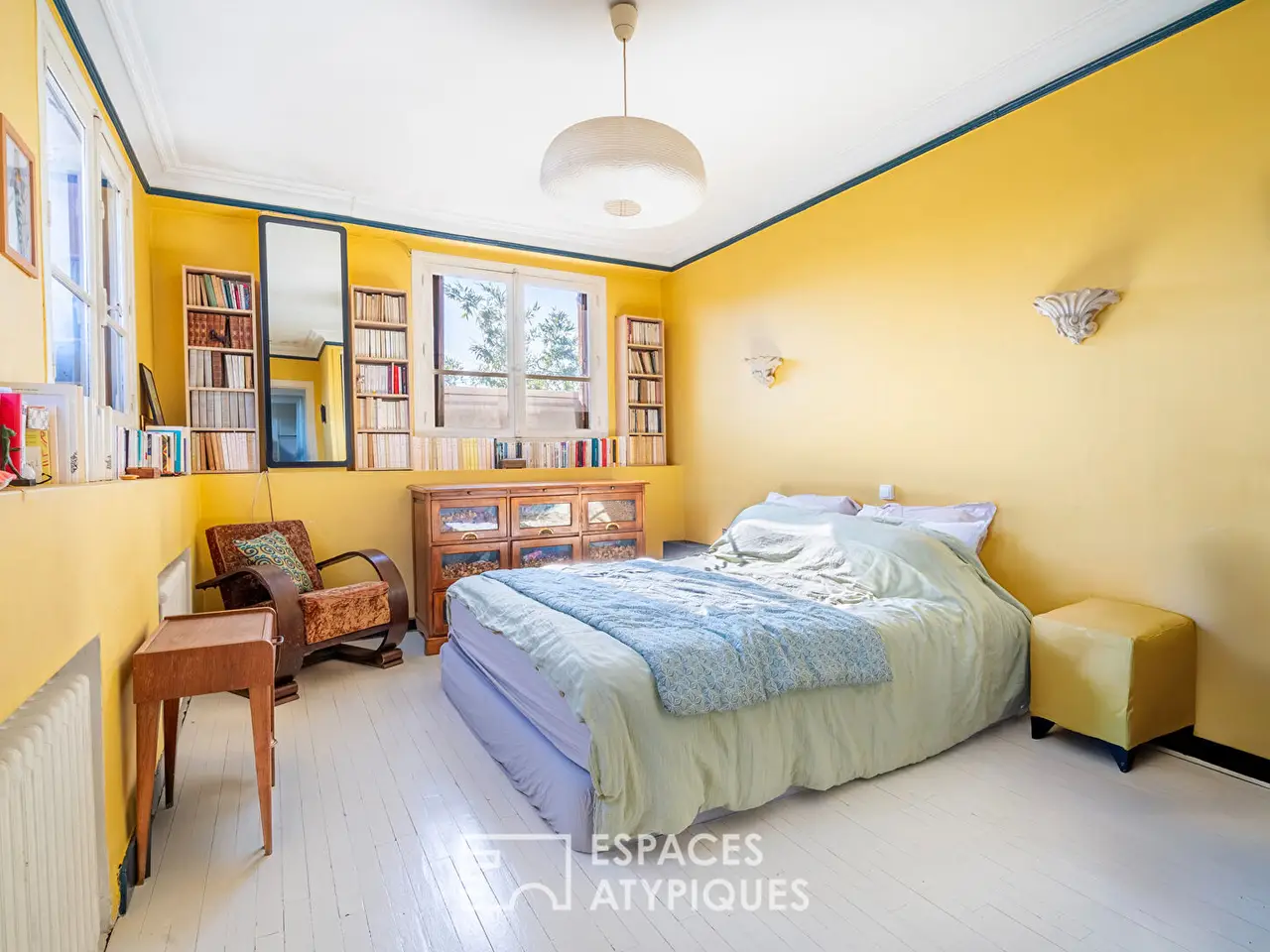 In the sought-after Église district of Neuilly-Plaisance, this former orangery dating from 1880, subtly renovated, offers 160 m2 of bright and harmonious spaces, set in the heart of a 541 m2 wooded garden with no overlooked views. A testament to its time, the original building has retained all its charm, while its recent extensions, including a vast living room and a glass roof, enhance the property with elegance and modernity. These living spaces, facing the garden, offer remarkable volume, enhanced by a ceiling height of over 3 meters. Numerous windows, ideally oriented, allow natural light to flood the spaces at all hours of the day. The open kitchen, directly connected to the living room, creates a welcoming and pleasant space, ideal for entertaining or sharing everyday moments. A bathroom with a toilet completes this level. Upstairs, the sleeping area consists of a library landing, three generous bedrooms designed for comfort and tranquility, and a bathroom with WC. On the mezzanine floor, a 65 m2 space gives free rein to the imagination: an office, recreation room, home theater, or workshop. Outside, an intimate patio extends the living spaces in a soothing atmosphere, while the garden, meticulously maintained and completely private, invites relaxation. A unique and inspiring property, combining period charm, modern comfort, and a prime location in the heart of Neuilly-Plaisance. A lock-up garage completes the property's features, as does a 45 m2 expansion potential, to be developed as needed. RER A: Neuilly-Plaisance 800 meters City center: 350 meters REF. 10695 Additional information * 8 rooms * 3 bedrooms * 2 bathrooms * 2 floors in the building * Outdoor space : 541 SQM * Parking : 1 parking space * Property tax : 3 632 € Energy Performance Certificate Primary energy consumption f : 406 kWh/m2.an High performance housing