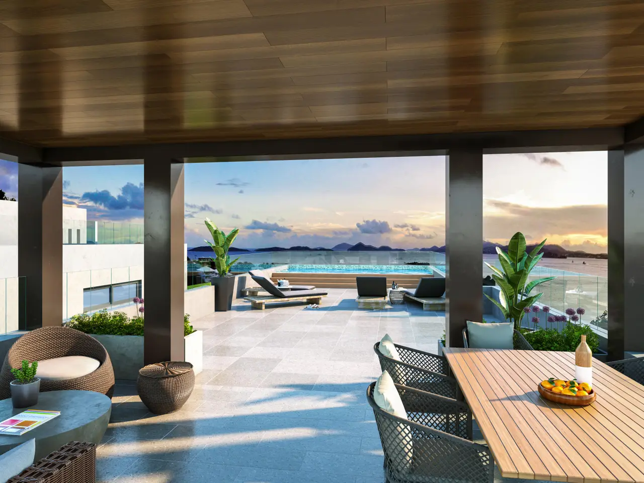 Island Sky offers a rare whole ownership opportunity in Cruz Bay's newest luxury condo. This fully furnished 1BD/1BA unit features 721 sq. ft. of A/C space plus a private terrace with stunning Caribbean views. Designed for easy ownership and rental income, it includes modern finishes and turnkey convenience. Enjoy access to a rooftop terrace with infinity edge pool, lounge areas, and sunset views. Walk to Cruz Bay's shops, dining, and ferry dock, just minutes from world-renowned beaches. A smart investment in St. John's growing vacation rental market.
