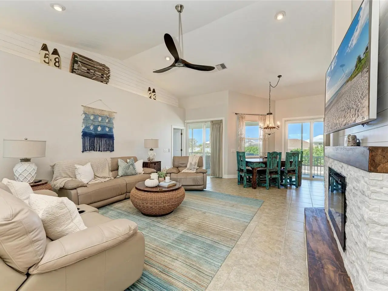 • Custom fireplace with shiplap accents