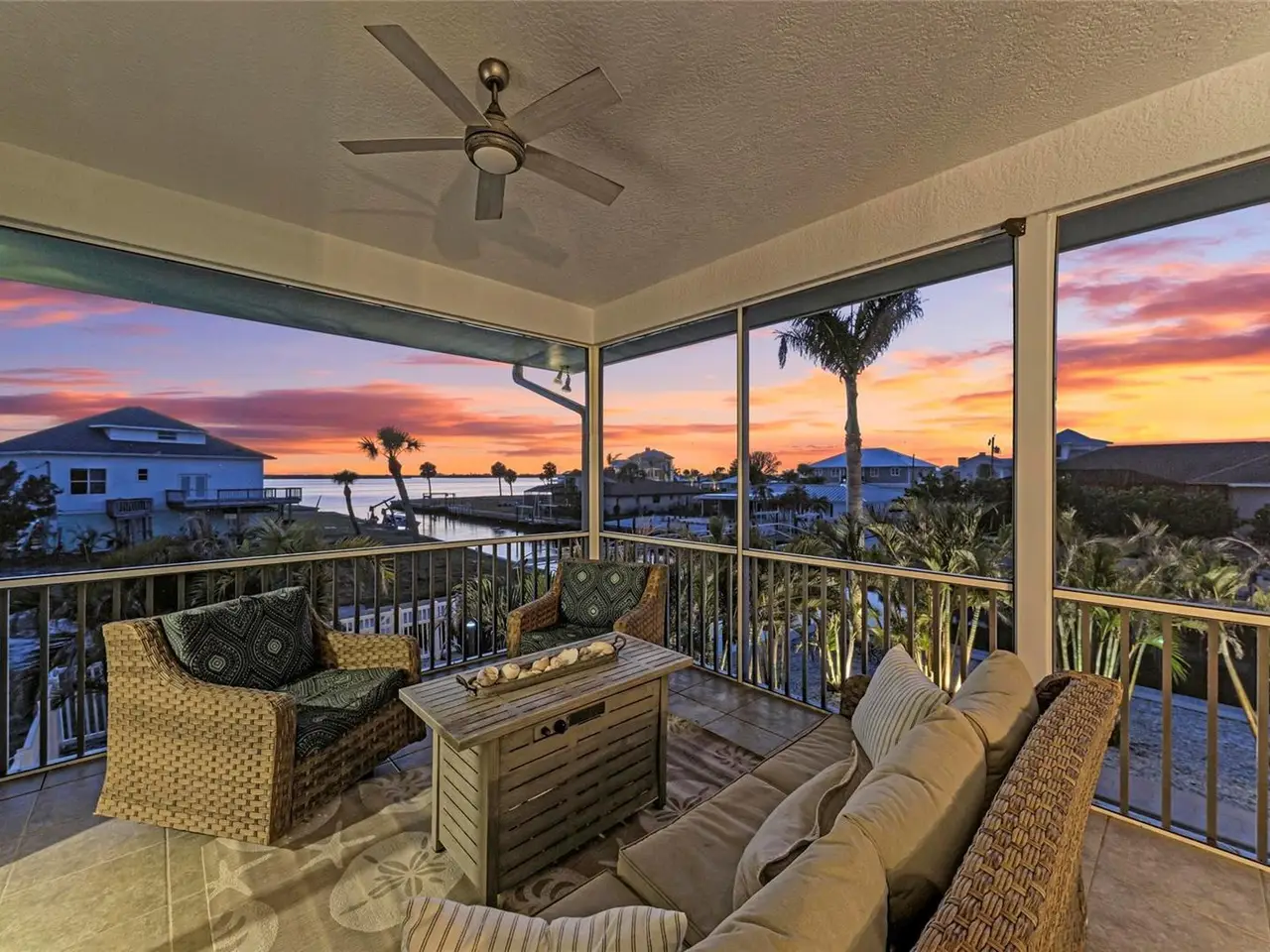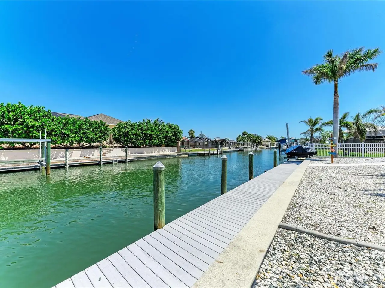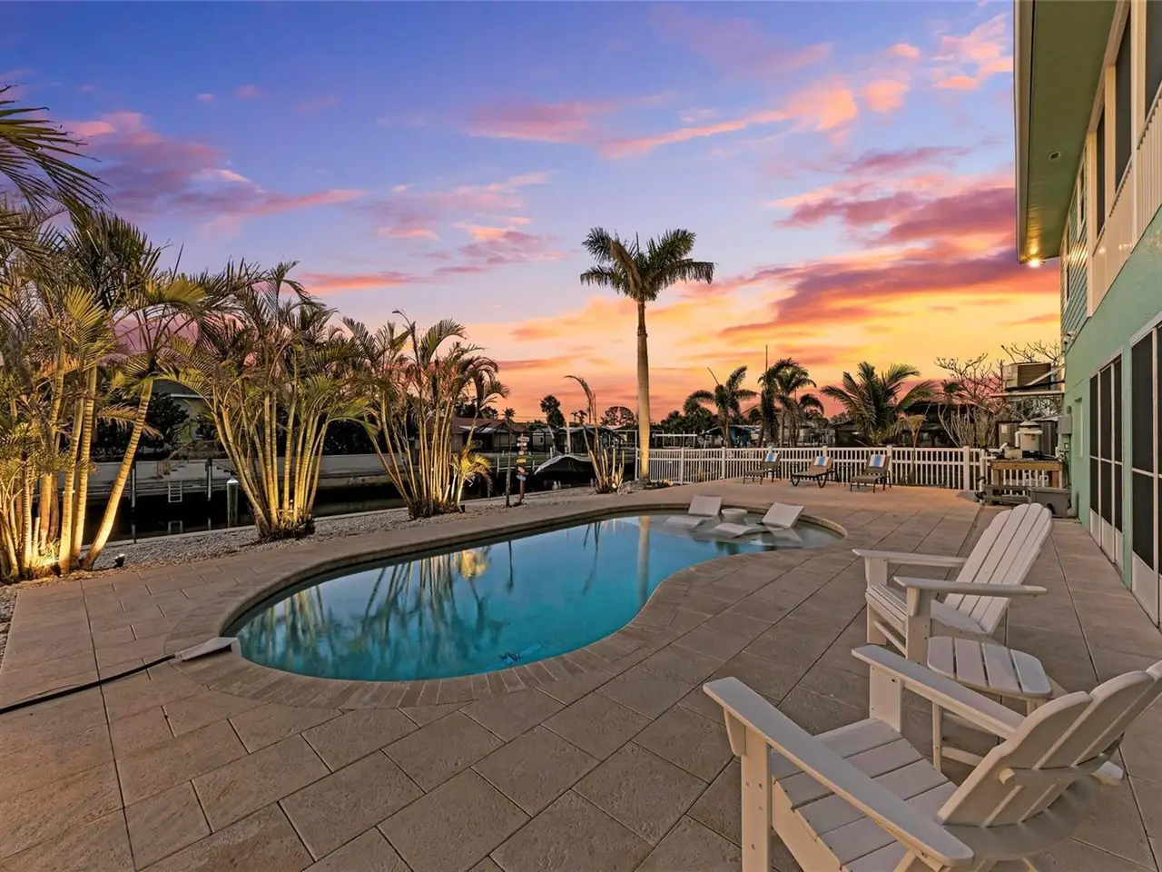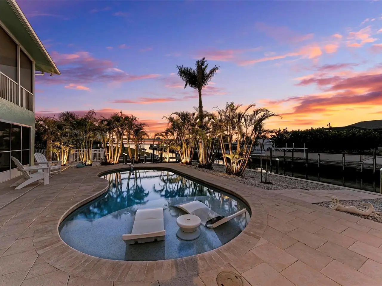 Experience the ultimate in coastal living with this exquisite waterfront home located in the hidden gem of Grove City near Manasota Key along Florida’s Gulf Coast. This elevated boater’s paradise residence is perfectly positioned just 3 in from Lemon Bay on approximately 100 feet of deep-water frontage with direct access to Stump Pass and the Gulf of America. Inside, THE TURNKEY FURNISHED 3-bedroom custom home highlights an open-concept layout showcasing a dramatic vaulted ceiling, a custom fireplace and TV feature wall with shiplap accents, and expansive IMPACT windows and sliders that flood the home with natural light on the upper level. The chef’s kitchen features custom cabinetry, tri-tone glass backsplash, crown molding, under-cabinet lighting, stainless steel appliances and a spacious breakfast bar. The primary suite is split from the guest rooms with dual closets, comfortable en-suite bathroom, tray ceiling, and direct access to a west-facing terrace—perfect for capturing colorful sunsets, watching dolphins play and tarpon glide through the water. Thoughtful touches include a metal roof, plantation shutters, custom window curtains, MinkaAire ceiling fans, smart home features, chic lighting and a custom laundry room with cabinetry, built-in sink and generous counterspace. The oversized garage provides tandem parking for up to four vehicles, epoxy flooring, and multiple covered areas separated by rows of sliding screen doors blending indoor/outdoor living spaces, invites refreshing sea breezes. Outside, enjoy sun-drenched afternoons in the newly renovated saltwater pool equipped with a newer heater and chiller system, sun shelf, auto-fill system and upgraded paver decking. In addition, there is a 13,000 lb. protected and covered boat lift, jet ski lift, Trex composite decking on multiple sides, dock ladder, and additional pilings for boat parking. Lush tropical landscaping creates a private oasis, enhanced by soft outdoor landscape and pilings lighting that sets the perfect ambiance as the sun sets. A fenced backyard offers peace and privacy. Just minutes from Manasota Key’s white sand beaches, waterfront dining, kayaking, and state parks, this home delivers the perfect blend of elegance, function, and the relaxed Florida lifestyle. An adjoining parcel is also available exclusively to the buyer, offering a rare opportunity to further customize your dream waterfront estate.