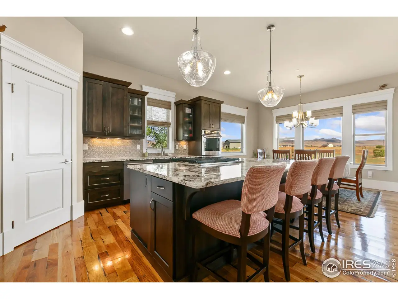 Stunning custom ranch offers the perfect blend of tranquility, luxury, and convenience located just 10 minutes from Old Town. Situated on 5 acres in Scenic Ranch Estates - a private, 200-acre planned community with riding trails, a horse arena, and the flexibility for outbuildings and farm animals, with an HOA-approved pasture plan - this home is an ideal retreat for those seeking space and serenity. Inside, an inviting open floor plan showcases rich hickory floors with a striking ebonized finish and custom millwork windows that flood the home with natural light while capturing breathtaking mountain views. The gourmet kitchen is a true centerpiece, featuring granite countertops, a large island, 5-burner gas cooktop, double ovens, a professional-grade side-by-side refrigerator and freezer, and a spacious walk-in pantry. The adjoining great room impresses with a beamed ceiling and an eye-catching stone gas fireplace, while the generous dining area flows seamlessly to the backyard, enhancing the indoor-outdoor connection. The expansive primary suite offers a spa-like bath with a floating double vanity, soaking tub, dual-head shower, and private water closet. For added convenience, the large walk-in closet connects directly to the laundry room. Two additional bedrooms, a full bath, and a powder room for guests complete the main level. Outside, the backyard features a covered patio, raised garden beds with full irrigation, and a garden shed. For dog lovers there is an electronic dog fence and RFID controlled door from the laundry room to the spacious fenced dog run. The oversized 3-car garage with epoxy floors offers excellent storage, while the full unfinished basement - complete with four egress windows and a plumbing rough-in - provides endless options for expansion. No metro district. Property has been Pre-Inspected and includes a one-year First American Home Warranty for added peace of mind.