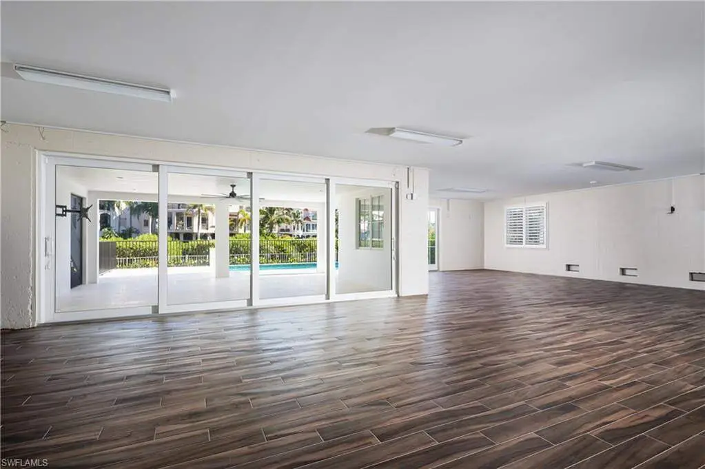 Luxury 2018-built coastal contemporary home in the exclusive double-gated Southport on the Bay, within North Naples' premier "Barefoot Beach" community. A beach and boater's paradise, this estate offers deeded beach access just a short walk away and direct Gulf-access only 10 minutes from your private boat dock and lift. Relax and entertain outdoors with a pool and spa surrounded by new travertine decking and plenty of lounging space, plus an upper-level screened lanai with summer kitchen-perfect for dining al fresco. Brimming with natural light, this home offers an open floor plan with 4 bedrooms plus den/office (all bedrooms with en suite baths), soaring 12 ft ceilings, wide-plank hardwood floors, and tongue-and-groove ceilings with custom wood beams. The chef's kitchen boasts Miele appliances, a spacious butler's pantry, and stunning custom cabinetry with granite and quartz counters. The primary suite is a private retreat, complete with French doors opening to an open-air balcony overlooking the bay, a wet bar with wine fridge, a large walk-in closet with custom built-ins, and a spa-like bath with dual vanities, soaking tub, and a spacious rainfall shower. Additional highlights include PGT impact glass windows and sliders rated for 170 mph, over 400 sq ft of ground-floor flex space, private elevator, and freshly painted exterior. Optional membership to the exclusive "Club at Barefoot" provides access to tennis, two restaurants, beachside food and beverage service, and more. Conveniently located near fine dining, RSW Airport, Mercato, and Waterside Shops, and just 15 miles from the renowned Fifth Avenue in Naples, this home is a true gem in the heart of Barefoot Beach.