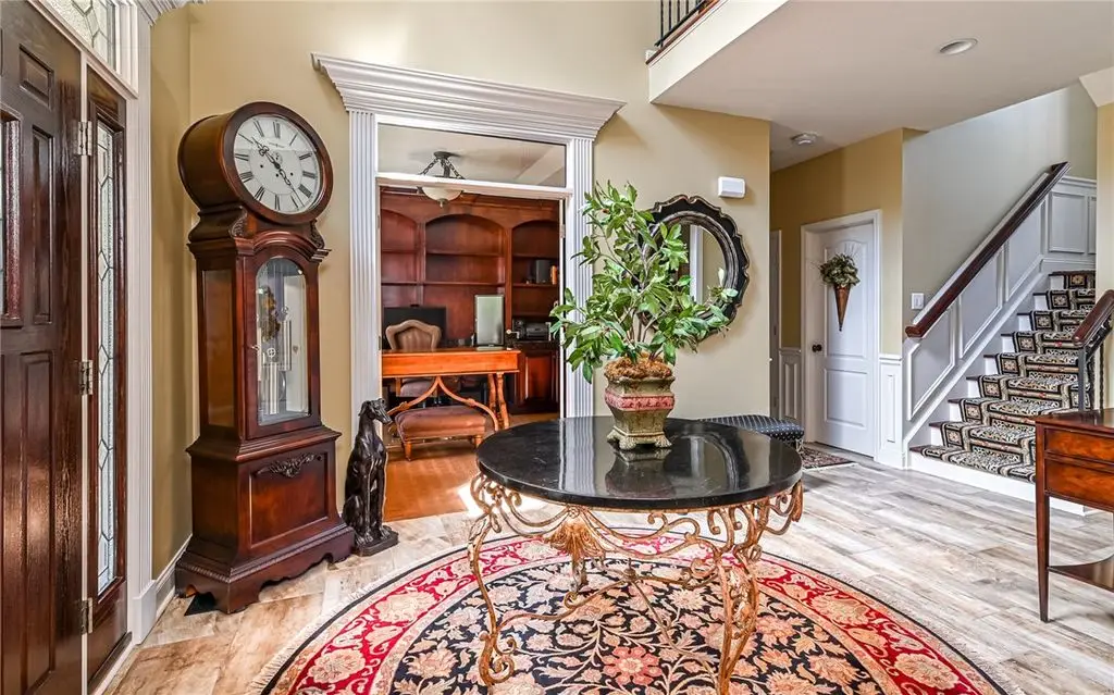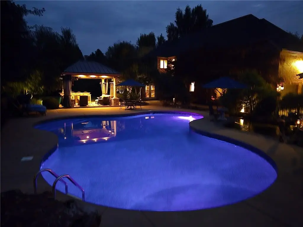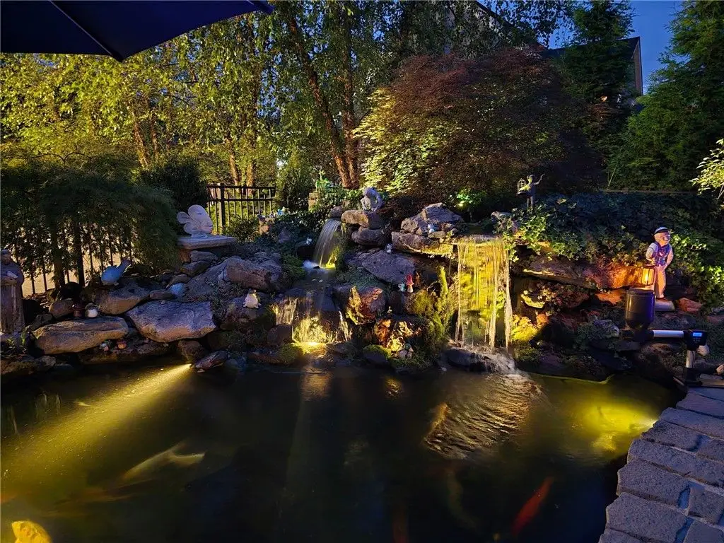 Indulge in luxury living in this custom built all brick home. Tree lined fenced lot is an entertainer's delight w/pool, outdoor kitchen, waterfall & pond. Grand entry leads to dining room & sun-drenched living room w/ floor-to-ceiling windows & fireplace. Inspire your inner chef w/the kitchen featuring Thermador double gas ovens, gas cooktop, Sub-Zero refrigerator, large center island & walk-in pantry. Warm & welcoming family room w/fireplace & French doors to outdoor oasis. Handsome office w/custom cabinetry, laundry room & oversized 3 car attached garage. 2nd level has 5 generous sized bedrooms & 4 full bathrooms. Gracious sized primary suite & sitting room that overlooks the two-story living room w/walk-in closet ensuite bathroom w/ceramic step in shower, jacuzzi tub & double vanity. Embrace the opportunity to create your dream space in this enormous basement w/wood burning fireplace & is pre-plumed for full bathroom. Abundant storage room & direct staircase to garage as well.