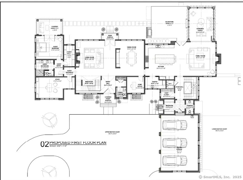 Exceptional commanding luxury estate under development in prime mid country location. The 2.39 acre gated & elevated site includes a 13,326 SF main house with 6 bedrooms / 8.3 bathrooms across 4 levels of custom crafted living space with indoor parking for 7 cars - plus an outfitted 800 SF luxury pool house with vaulted ceilings, heated floors, stone fireplace & full bathroom overlooking a large terrace, 50 ft. pool with integrated spa & sundeck plus a sprawling lawn area with sunken fire pit & Bocce court. Designed by the SOHO Group, this striking transitional home with soaring ceilings & tremendous light is perfectly layered in clapboard, hand chiseled fieldstone & oversize glass. A 3-stop elevator plus an amenity-filled lower level complete the offering. Est. completion date: Dec. 2025