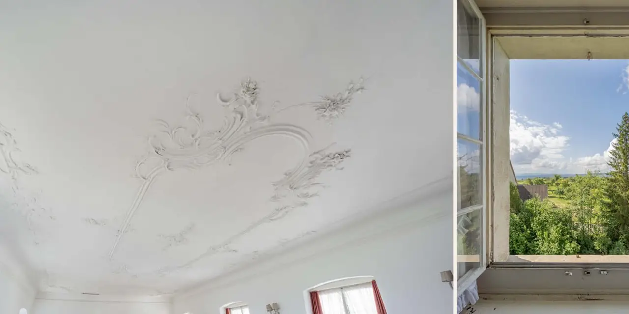 Nestled between the Thur Valley and Lake Constance, this magnificent Baroque castle from 1723 features a moat, a charming chapel, and beautifully restored interiors with original stucco ceilings, elegant parquet floors, and a grand Rococo ballroom with stage. The estate’s wings surround a peaceful courtyard with a fountain, creating a perfect blend of history and elegance. With over 20 spacious rooms and nearly 3,000 m² of living and usable space—including a barn and coach house—the castle offers versatile potential as a private residence, boutique hotel, gourmet restaurant, seminar center, or multi-family home. Set on extensive grounds with gardens and forests, it boasts stunning panoramic views of the Alps and the Thur Valley. Located just minutes from Kreuzlingen, Konstanz, and within 45 minutes of Zurich, the property combines serene countryside living with excellent accessibility. This unique, protected historic estate is a rare chance to own a prestigious landmark with timeless charm and modern functionality.