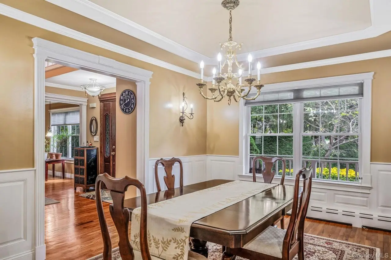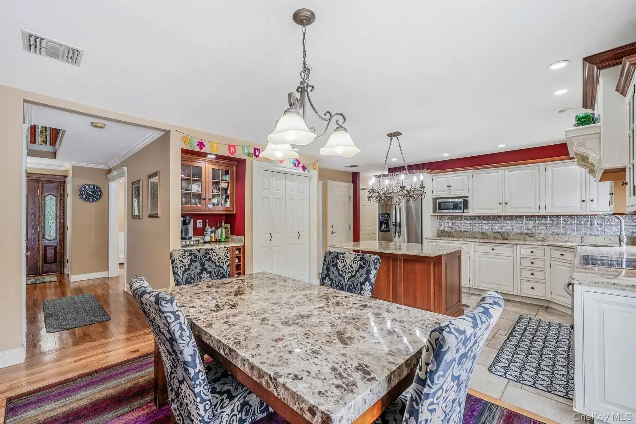 Saint James Colonial in Smithtown Schools, built 1998, on a quiet cul-de-sac. A grand two-story foyer leads to formal living and dining rooms, a fireplace family room, and an eat-in kitchen with granite countertops. Off the rear, a glass-wrapped sunroom overlooks the backyard and opens to a large composite deck. Main level highlights include hardwood floors, powder room, and laundry. Two-car garage with electric-car charger, 9-zone in-ground sprinklers, central air. Upstairs offers four bedrooms and two full baths, including a comfortable primary suite. The walk-out lower level provides flexible space for multigenerational needs, in-laws, or an au pair arrangement: two finished rooms currently set as sleeping areas, a living/rec area with a wet bar, a full bath, and its own washer and dryer, plus a separate entrance. Owned solar panels (2020) help the property generate its own electricity; per seller, PSEG averages about $17/month to keep the account active. East-west orientation, deck and sunroom for everyday enjoyment, and a convenient location near all that Saint James offers.