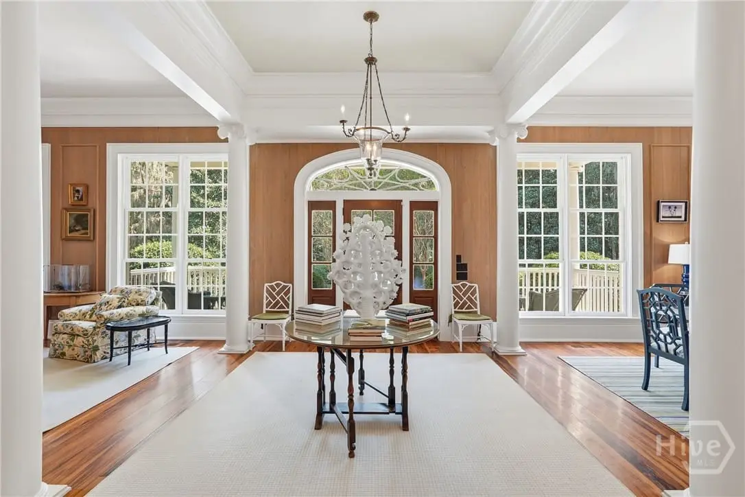 Experience the timeless elegance of Southern living at Ford Field & River Club with this refined Lowcountry residence. Designed by Hansen Architects and built by JT Turner Construction as the builders' personal home, this estate showcases classic Lowcountry craftsmanship, architectural integrity, & modern luxury. Surrounded by ancient live oaks & overlooking the Ogeechee River's protected marshlands, the home is constructed of hand-molded Savannah Gray Old Carolina brick & wrapped in two-story porches that capture cool river breezes. Inside, soaring 12-foot ceilings, wide-plank pine floors & custom millwork create warmth & sophistication.