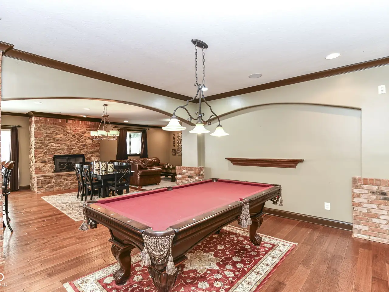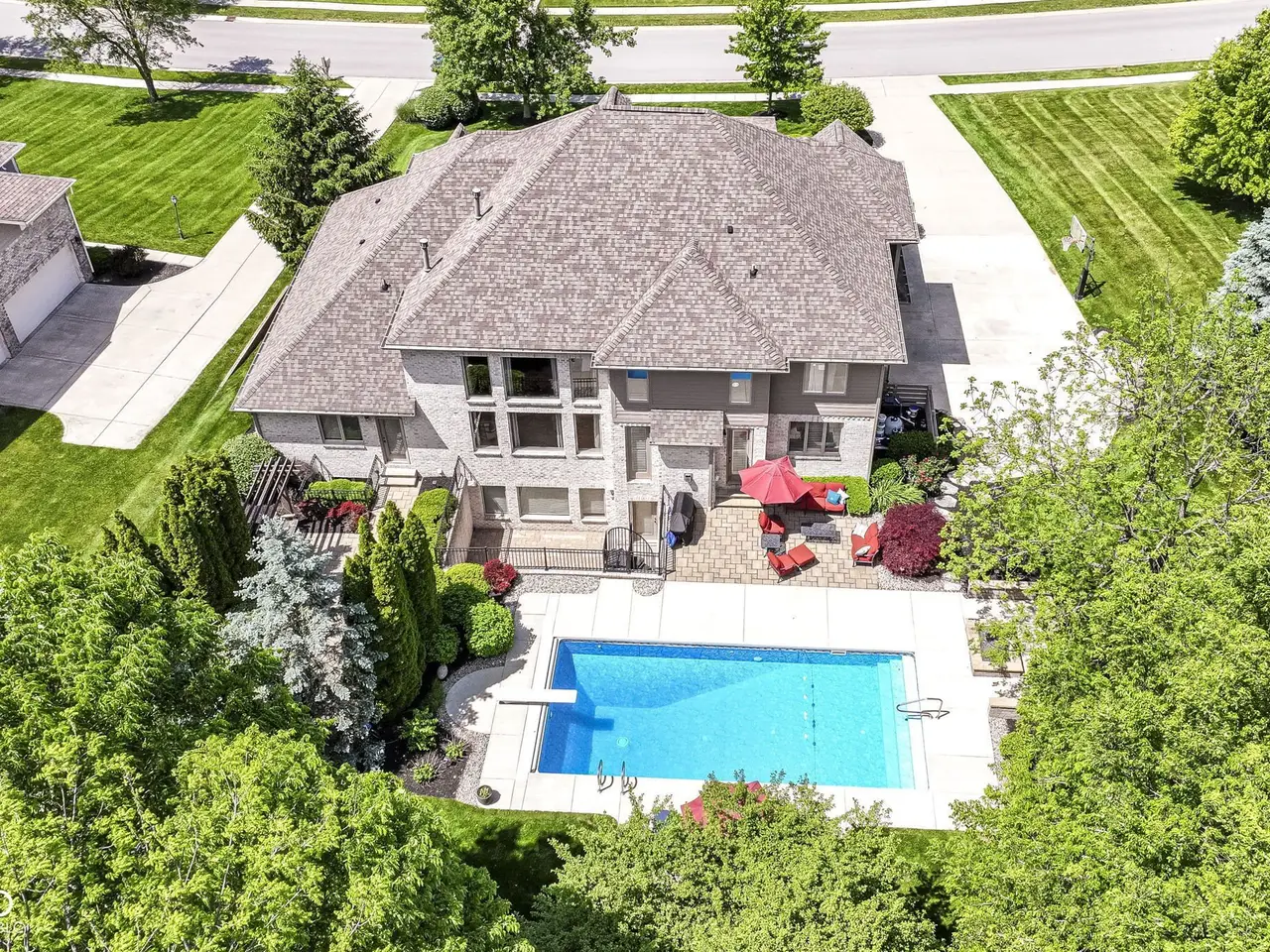 Stunning Custom home with super newer large in-ground heated pool just a short walk to your boat dock! Primary Bedroom on main floor with large custom closet. 2 story great room with plenty of natural light! Recently finished hardwoods on main floor & new wood stairs. 2 wonderful laundry rooms on main floor & one on 2nd floor. Kitchen flows into a cozy hearth room with door to patio with gas-line for grill & POOL. Basement boasts: Theatre, Bar, Bedroom, Rec/Billiard Room, WineCellar/Exercise Room, Family Room. Rich Main floor OFFICE with coffered ceiling, builtins & fireplace. 4 bedrooms upstairs with a unique little room off one of the bedrooms for play/drums/crafts/homework ~ you choose. This home is conveniently located close to shopping, schools, dining, Geist, golf, trails...etc!!!