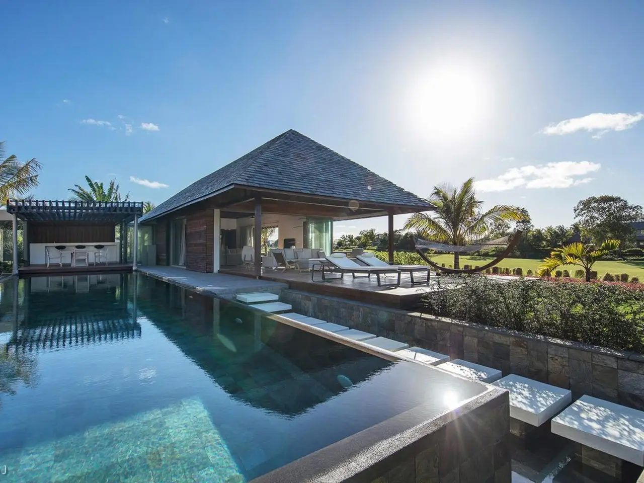 • Private pool with stylish pool bar