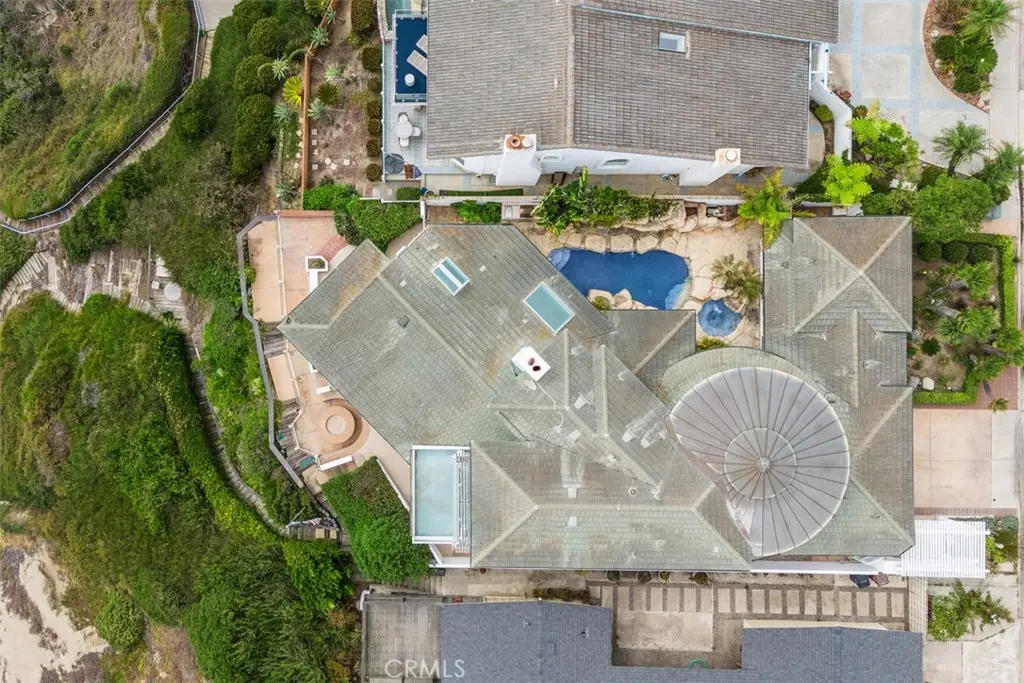 Stunning Oceanfront Estate with Panoramic Views. Exquisite sapphire-blue ocean views and sophisticated design converge in this one-of-a-kind oceanfront estate, masterfully crafted by renowned architect John Garcia, the amenities area too many to list but for one to experience. Set on a premier lot overlooking Seal Rock, Riviera Beach, and Lost Winds Beach. And captivation views of the San Clemente Pier and Dana Point Harbor, this custom residence offers the pinnacle of Southern California coastal living. Step inside to find floor-to-ceiling windows, a light-filled open floor plan featuring clean lines, generous living spaces, and seamless indoor-outdoor flow. The dramatic great room boasts wall-to-wall windows for amazing views of the Pacific Ocean and sliding glass doors opening to an expansive oceanfront patio with multiple levels of decks. The chef's kitchen and adjacent sunroom/breakfast room--with wet bar--make everyday living and entertaining a breeze. The sunroom/breakfast room is accessible to the interior courtyard, providing a serene private oasis with a rock-scape pool, spa, and water elements, this room opens to another family room with fireplace and is perfect for relaxation or entertaining. The opulent primary suite occupies a prime ocean-facing position and includes a private balcony with 180-degree coastline-whitewater views, step into a spa-inspired marble jacuzzi tub with adjacent large dual head shower, also with captivating panoramic views. Two oversized secondary suites offer flexibility and privacy: one with a built-in bed, beautiful stone shower, wine fridge, and custom-built-ins. This suite is ideal for a guest retreat or executive office. The second suite also features a built-in bed, in-suite bathroom, oversized tub/shower combination and direct access to the poolside courtyard and tranquil water features. Private steps from the back patio lead directly to the sand, offering unmatched access to one of San Clemente's most coveted family-friendly beaches--ideal for surfing, paddleboarding, swimming, or sunset strolls. All just minutes from downtown San Clemente, the pier, local dining, shopping, the train station, and the coastal amenities of Dana Point and San Juan Capistrano. NO MELLO ROOS or HOA