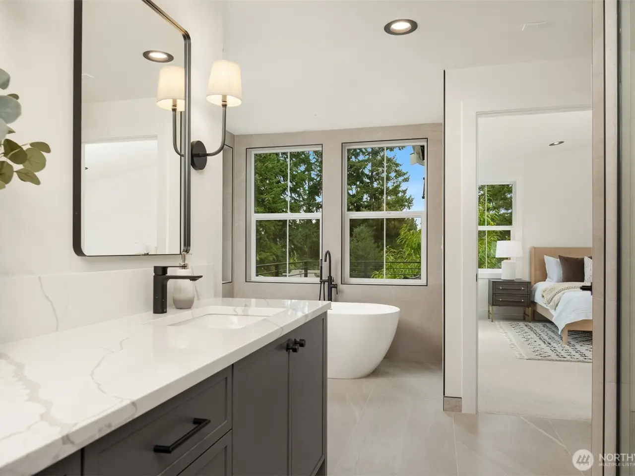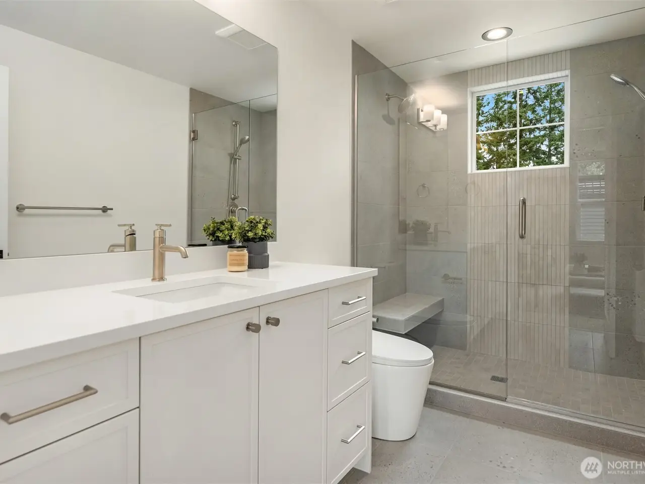 Prestigious Builds presents Kirkland's latest luxury new construction. Nestled on a quiet dead-end street in the coveted Norkirk community, this exceptional residence boasts a sundrenched interior loaded w/chic & sophisticated designer finishes. Crafted for effortless entertaining, the warm & inviting main level offers an open concept great rm w/dedicated living & dining areas, chef's epicurean kitchen & rare 5th BR/office. Expansive upper level provides 4BRs incldg sumptuous primary suite w/private veranda & stunning sunset views. Sought-after location in the premier East of Market community: just steps from incredible parks & award-winning Lake WA schools, w/easy access to vibrant shopping/dining, DT Kirkland waterfront & Juanita Village.