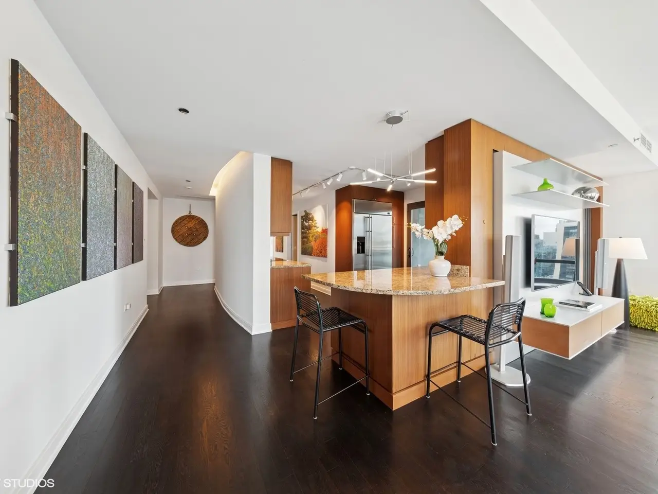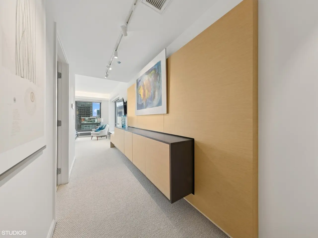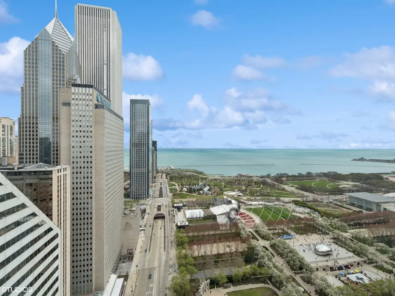 Discover urban elegance in this highly upgraded 3BR/3BA residence on the 41st floor of the Heritage, perfectly positioned on Chicago's Cultural Mile for downsizers and second home buyers seeking proximity to theater, Millennium Park, Lake Michigan, and the Museum Campus. Breathtaking North/East/West corner views of the city skyline, lake, and park unfold through floor-to-ceiling windows, amplifying the 2157 sq ft layout. Custom motorized shades, cove lighting, and bespoke cabinetry elevate the sophisticated interiors. The open kitchen, dining, and living areas feature upgraded hardwood flooring, abundant counter space, a breakfast bar, and access to a spacious recessed balcony-ideal for relaxing or entertaining. The primary suite boasts a Jacuzzi bath, separate shower, walk-in closet, and custom Abitare cabinetry. A dedicated laundry room (not a closet), guest suite, and third bedroom/home office with tailored desk and shelving add practicality and charm. Enjoy Crestron-controlled Lutron lighting and Boston Acoustics surround sound for effortless ambiance. Building amenities include an indoor pool, hot tub, saunas, fitness center, community rooms & co-working space, dog run, 24/7 door staff, and direct pedway access to rail transit for seamless O'Hare connections. Steps from world-class theater, Symphony Center, Art Institute, Museum Campus, and lakefront trails, this home offers vibrant city living with the serenity of a well-appointed retreat. Stroll to Millennium Park's Lurie Gardens, sail from Monroe Harbor, or dine along the Magnificent Mile-all just outside your door.