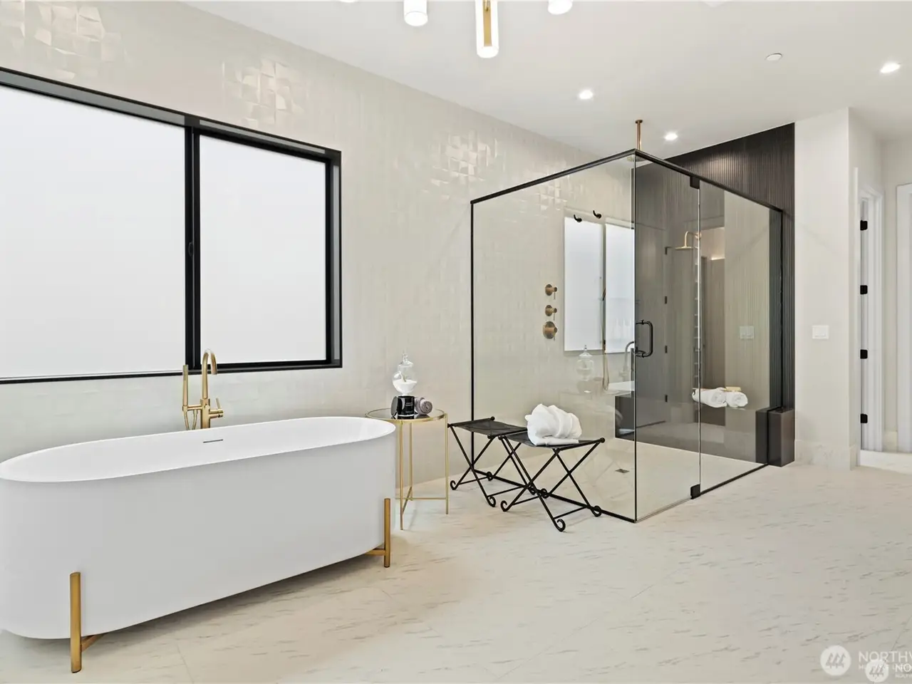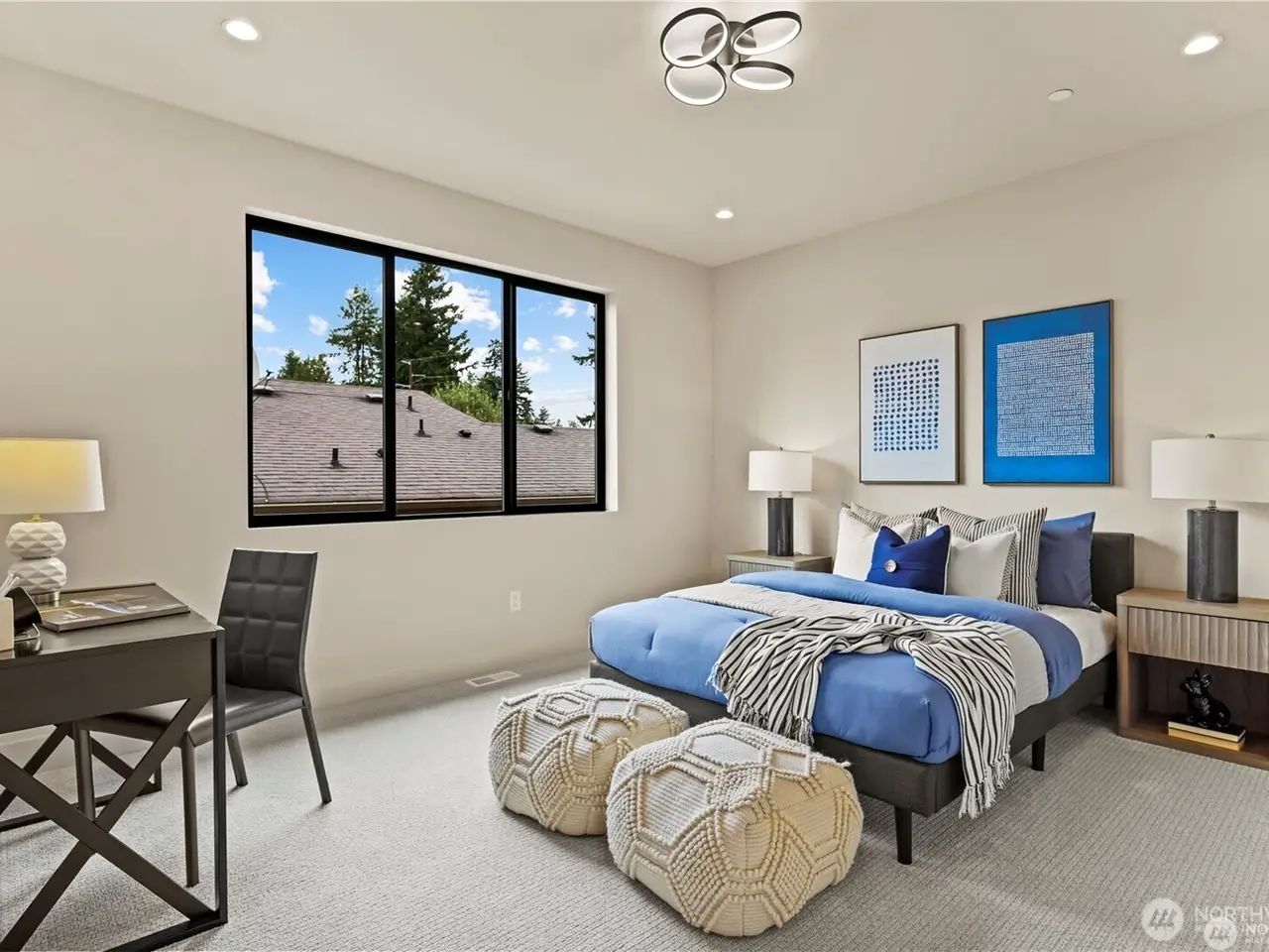 JUST COMPLETED NEW CONSTRUCTION! Grand Primary Suite on Main Floor w/Level Entry! New 5 BD/5 BA custom home by premier builder Serena Construction, sophisticated luxury in every detail. Coveted central Houghton location! Open concept blends Great Room w/85 fireplace, dining area w/entertainer’s buffet & gourmet kitchen w/high end appliances & walk-in pantry. 480 sqft outdoor covered deck w/heaters & speakers. Also on main, guest suite, office, laundry rm & mud rm. 3BD, 2BA on upper w/ bonus/media rm & 2nd laundry. Built-in gas-fueled generator, smart tech for lighting-heating-security, 2 gas furnaces & 2 heat pump/hot water heaters. Expansive 826 sqft 3-car garage & EV charging conduit. Solar panels & fully fenced back yard.