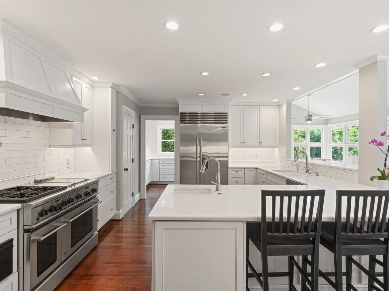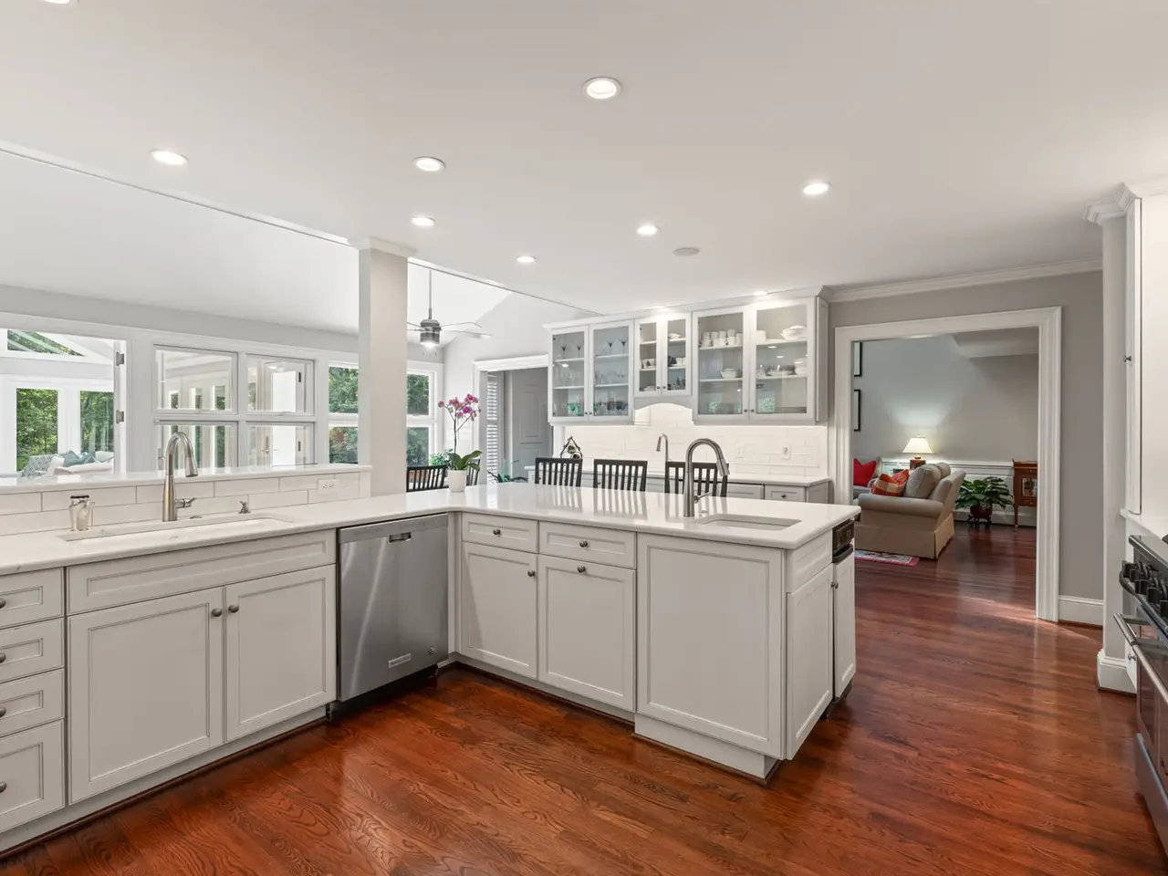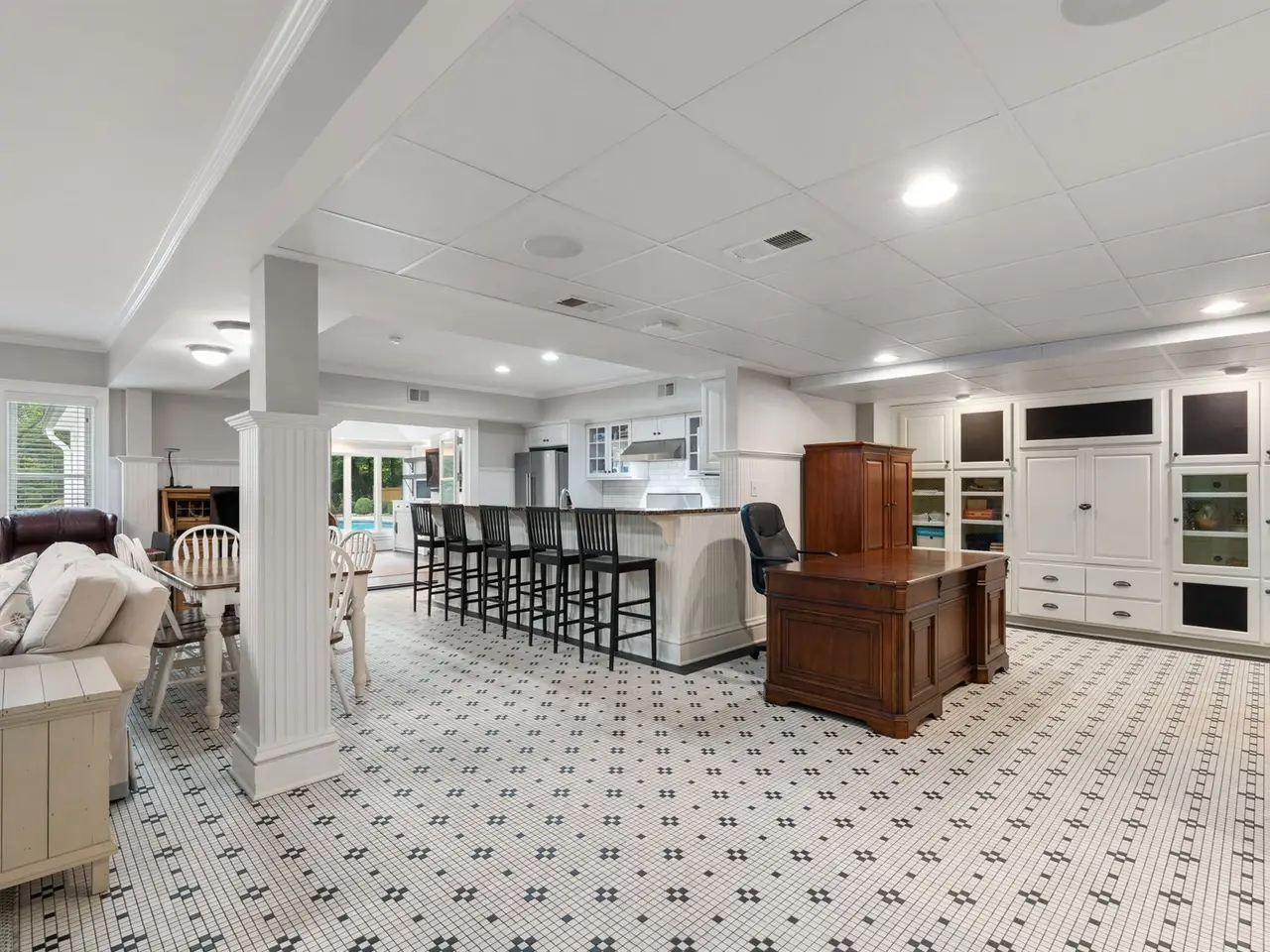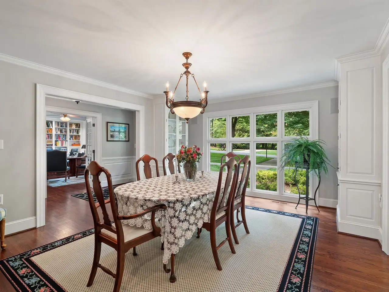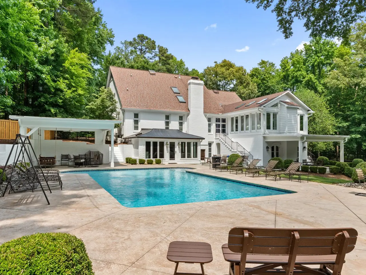 Impeccably maintained 4 bedroom/4.5 bath brick home nestled on a lush, private lot. Home has been updated by Wolf Construction-two sunrooms, kitchen reno, outdoor pavillion & more. The property overlooks a professionally landscaped backyard oasis featuring a 25x40 heated pool, pavilion w/daybed swing, fireplace, covered patio & access to a stocked pond. With 7,098 square feet of heated living space & an elevator that goes from the basement to the second floor, this home has great potential for multigenerational living. Main level boasts the primary suite, gourmet kitchen, formal & informal living areas, a dining room, dedicated office, large laundry room & a light-filled sunroom. Upstairs, you'll find three additional bedrooms and a Jack & Jill bath. Abundant storage throughout. The finished basement offers a second full kitchen, living area, sunroom, flex room, second laundry & two full baths (one has a steam shower) and is an ideal spot for entertaining guests. Don't miss this one!