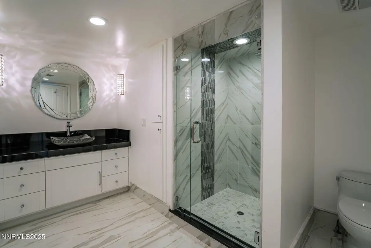Spectacular Cave Rock Estates custom home with sweeping lake views and a uniquely private setting. The generous 1.16-acre parcel borders undeveloped lands and offers colorful summer sunsets within a bright and sunny setting. The near 5,500 square foot floor plan includes five en-suite bedrooms, two of which are primary bedrooms. All bedrooms feature stunning lake views. The floor plan also includes a large game/bonus room with 1/2 bath, kitchenette and bar as well as a private office located on the entry level. and a gourmet kitchen. A three-car garage, heated driveway and backup generator add to the massive appeal of this offering. The stone clad exterior of the home and metal roof reduce the overall maintenance requirements associated with the mountain environments.