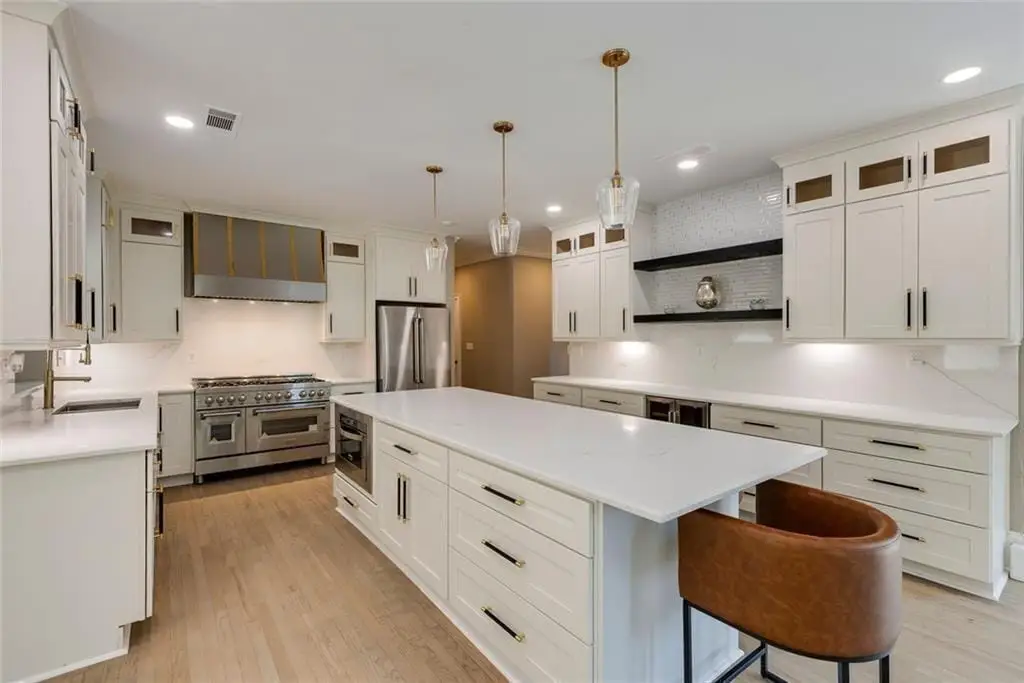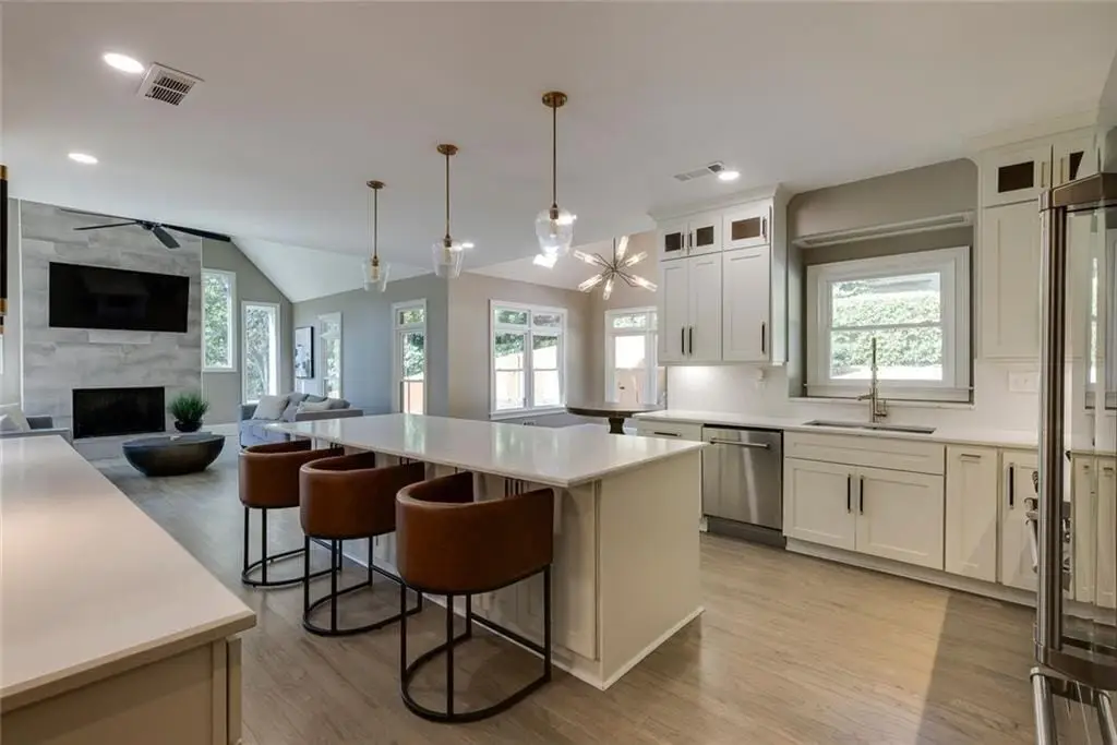 This stunning home, beautifully designed and thoughtfully renovated, sits on over an acre in a private cul-de-sac in the desirable Jeff Ferry Manor neighborhood. Surrounded by professionally landscaped grounds, the home has been impeccably maintained and offers the perfect blend of elegance, comfort, and modern sophistication. The grand two-story marble foyer opens to soaring ceilings, hardwood floors, and both front and rear staircases. The formal living room with fireplace flows into a banquet-sized dining room, while the breathtaking two-story great room features a dramatic wall of windows, stacked-stone fireplace, and custom cabinetry, opening to an expansive two-tier deck overlooking the private fenced backyard. The chef’s kitchen is a showpiece with custom white cabinetry, quartz counters, tile backsplash, professional-grade appliances, walk-in pantry, and a large center island where family and friends are sure to gather. A bright breakfast room with skylights connects to the vaulted family room with fireplace, creating an inviting everyday space. The oversized owner’s suite has an optional sitting area, spa-inspired bath, dual vanities, soaking tub, walk-in shower, and two spacious walk-in closets. Upstairs are three large ensuite bedrooms with large walk-in closets. A hidden sitting room is shared by two of the bedrooms-perfect for teenagers. The terrace level is built for entertaining and is equipped with a game room, full bar area, family room with fireplace, home theatre with custom seating and a state-of-the-art sound system. Not to be missed is a spectacular night sky ceiling. Additional spaces include a bedroom, full bath, office, exercise room, and flexible areas for whatever your lifestyle requires. With four fireplaces, new windows, an open layout, and attention to detail throughout, this home truly has it all. Located in Sandy Springs, it’s close to top public and private schools, shopping, dining, Dunwoody Country Club, and has offers convenient access to interstates for enjoying all Atlanta has to offer.
