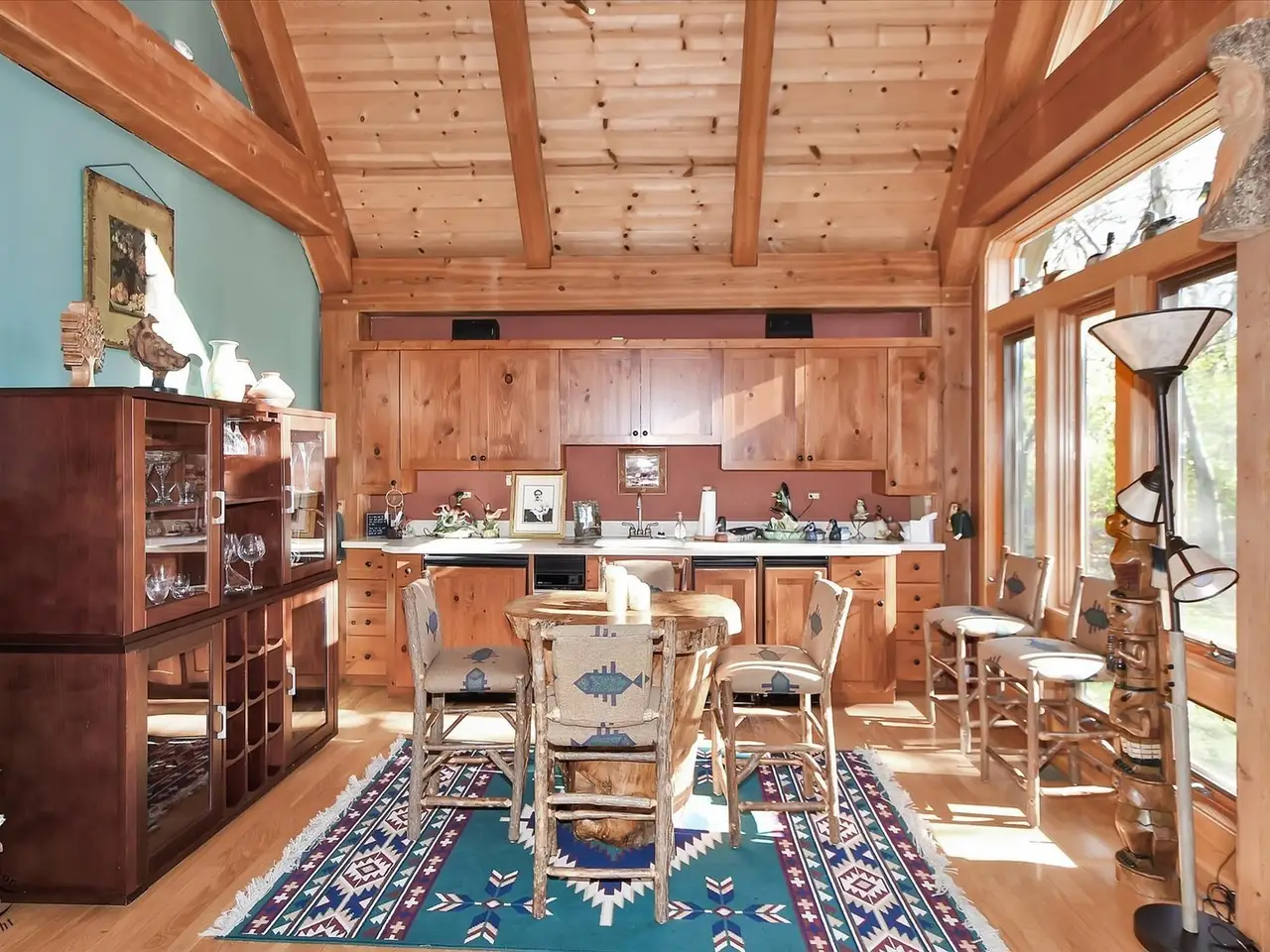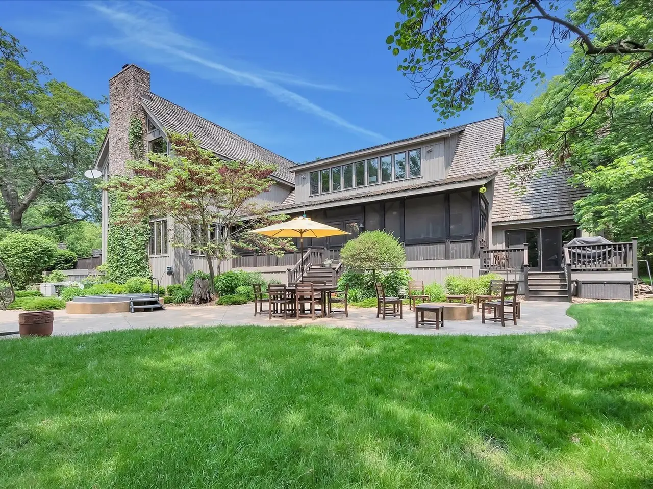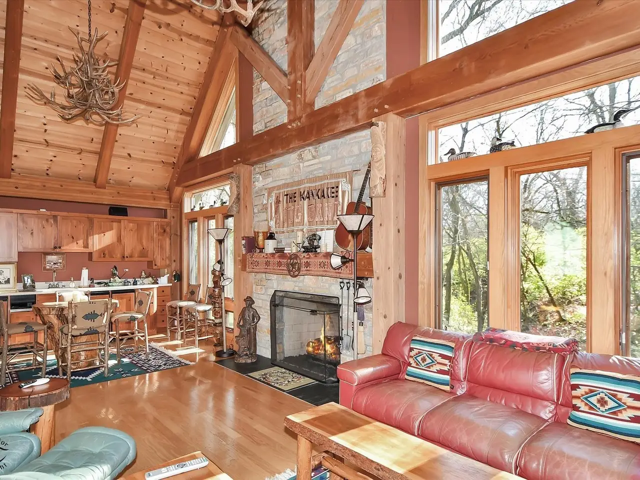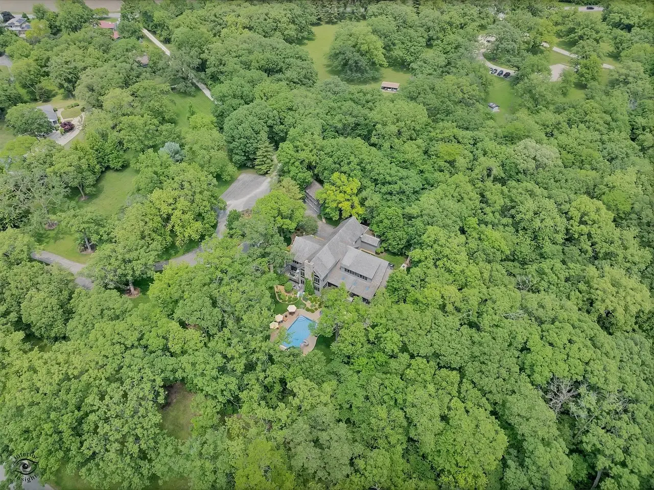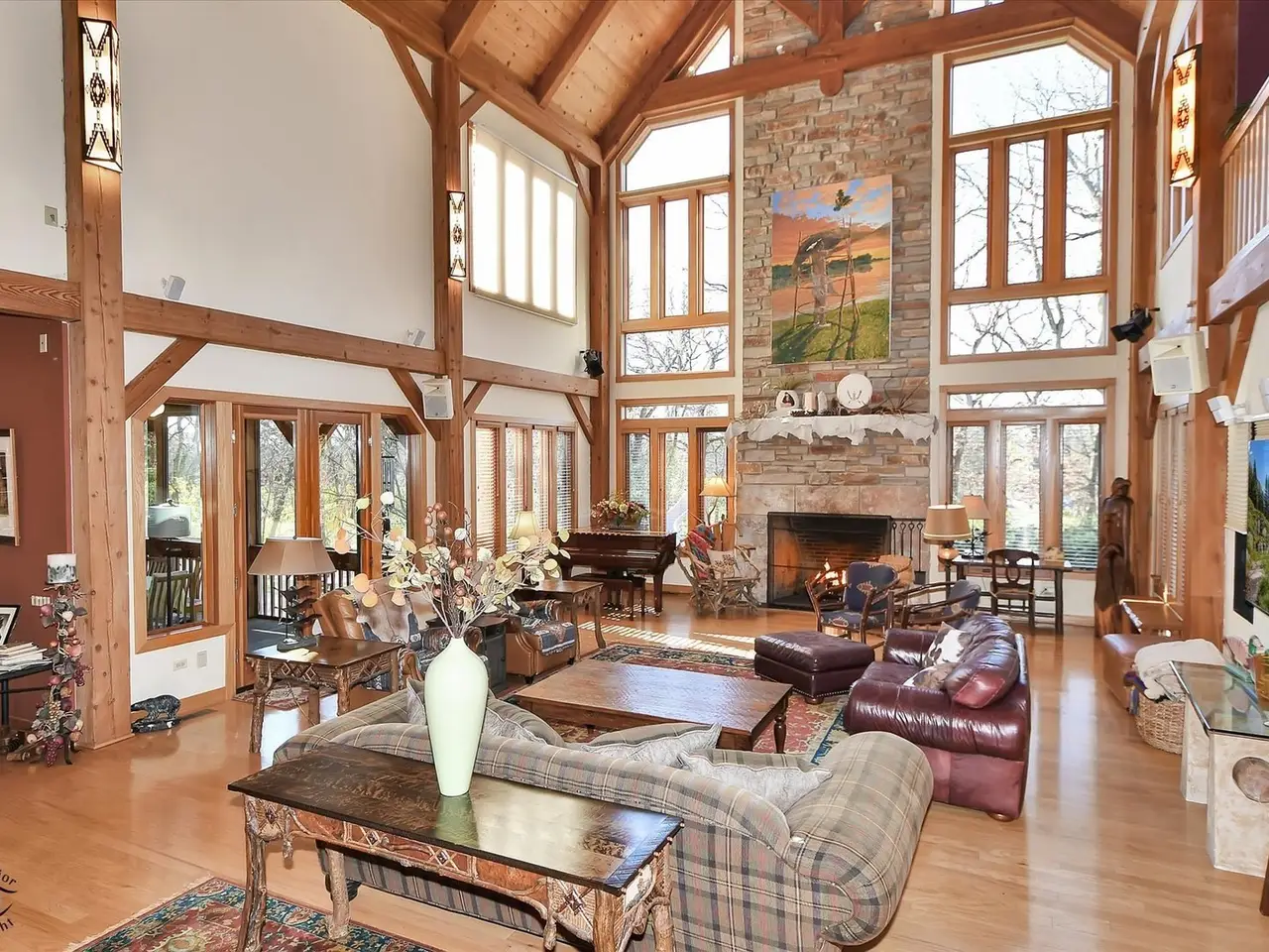 Welcome to Twinbrook located in Bourbonnais! Twinbrook is a 8000 Sq Ft lodge-style home situated on eight acres and surrounded on three sides by the Kankakee River State Park. The home was built in 2000. There is an additional 1350 sq ft of decks and a screened in porch. Two creeks flow through the property, which is a mix of lawns, wooded gardens and untamed woodlands full with white oak, burr oak, and red oak amidst white pine, blaze, maple poplar redbud and many other types of species. The home follows the contour of the land and is both rustic and refined. Materials of construction are indigenous to the region. The house features Douglas fir posts and beam construction with walls of windows to bring in light and to blend the indoor and outdoor environments. The living room features a library, home theater, and limestone fireplace that soars 33 feet to the peaked ceiling. Just off the foyer, is a private office with its own deck overlooking the outdoors. The french doors in the living room open onto a 12x43 screened porch for lounge seating, porch swing and dining table. The back of the home consists of the guest wing offering four themed bedrooms, each with its own private bath en suite. The woods room lounge at the end of the guest wing is a cozy refuge for curling up by the fireplace with its own kitchen and access to a 12x14 deck overlooking the southern creek. The dining room has a 14' hand built mahogany dining table that sits 12 people. The kitchen has a 10' cherry wood island, seating for 10, professional cooktop, two ovens, pantry, double sink and laundry facilities. Upstairs you will find a 5th bedroom, office and the master suite. The master suite features a hand built tree bed, home theatre, private deck, two separate baths and dressing rooms and laundry facility. Additionally upstairs is the home gym and jacuzzi tub. Outdoors includes a firepit, hot tub and inground pool with slide. There is a 2 car attached garage, and a 3 car detached garage. This is a one of a kind private retreat looking for new owners. Call today for your private showing!