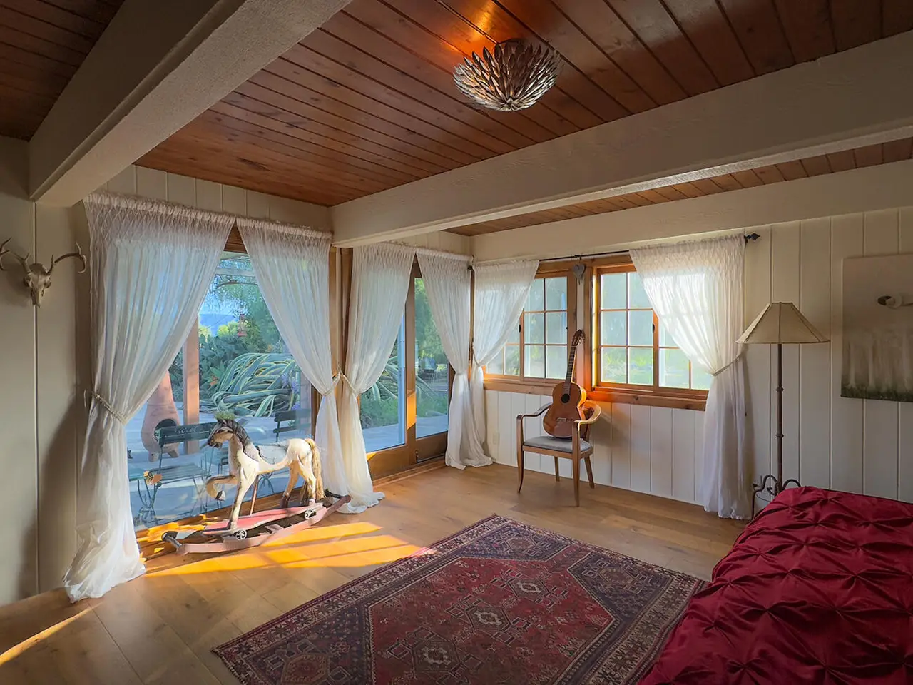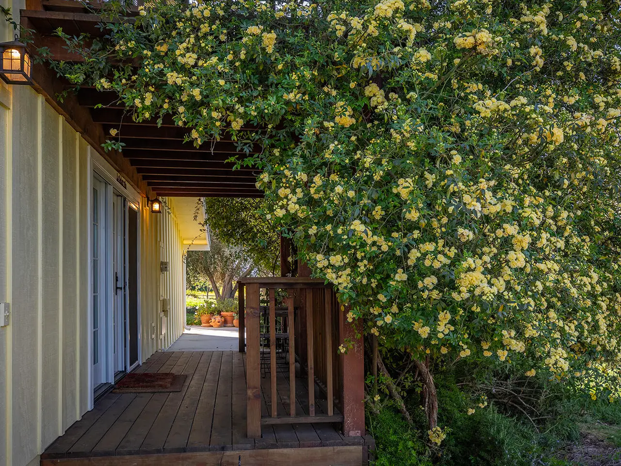 Tucked away on 20+/- acres of rolling hills in the enchanting Santa Ynez Valley, 2852 Tapadero is more than a home--it's an experience. This peaceful, private estate offers a lifestyle immersed in natural beauty, comfort, and creative inspiration. From the moment you arrive, you're welcomed by panoramic views of world-renowned vineyards, rolling hills, and endless skies that stretch from brilliant sunrises to awe-inspiring starlit nights. The centerpiece of this estate is a tastefully renovated 3-bedroom, 2.5-bath residence, thoughtfully designed to showcase the breathtaking vistas from every room--including the bathrooms and laundry. The open-concept living and dining spaces flow effortlessly into the chef's kitchen, while a cozy stone fireplace anchors the spacious living room. A hidden "secret bookshelf" door opens to a versatile library/music/entertainment room, perfect for quiet reflection or lively gatherings. Step outside and you'll discover expansive outdoor living spaces ideal for entertaining or unwinding. Shaded porches, pergolas, and a charming oyster-shell bocce court surrounded by a fragrant kitchen-herb garden, provide the perfect setting for casual evenings with friends. An impressive private orchard with more than 100 fruiting trees invites you to savor each season's harvest. For those with an equestrian heart, the estate includes a beautiful private barn with indoor/outdoor entertaining areas, three horse stalls, and scenic paddocks that lead directly to over 10 acres of fenced pastureland. The professional-grade equestrian arena (approx 220' x 85'), with its sweeping mountain and vineyard views, is among the finest in Santa Barbara County. Wander through the manicured gardens and orchard to reach a secluded meditation/yoga/writing studio, perched with vistas over Los Olivos and framed by mountains. Whether you're a nature lover, writer, artist, birdwatcher, or snowbird seeking serenity, this sanctuary is designed to spark creativity and peace. The estate also features a 2017-built 2-car garage designed in harmony with a 3-car carport. Every structure and space on the estate has been meticulously renovated and remodeled as of 2025 to blend timeless charm with modern comfort. The Ultimate Location While completely private, the property is just five scenic minutes from the heart of Los Olivos, a charming town brimming with tasting rooms, fine dining, and eclectic shopping. Enjoy a memorable evening at The Inn at Mattei's Tavern, (an Auberge resort) beloved since the 1880s. The vibrant communities of Santa Ynez, Los Alamos, and Solvang are also nearby, each offering their own flavor of history, culture, and small-town magic. Santa Barbara's beaches, theaters, boutiques, and airport are a beautiful 45-minute drive through the coastal mountains. Whether you're dreaming of a peaceful retreat, a vineyard escape, an equestrian haven, or simply a home where every view stirs the soul 2852 Tapadero is that rare place where luxury, nature, and inspiration converge.