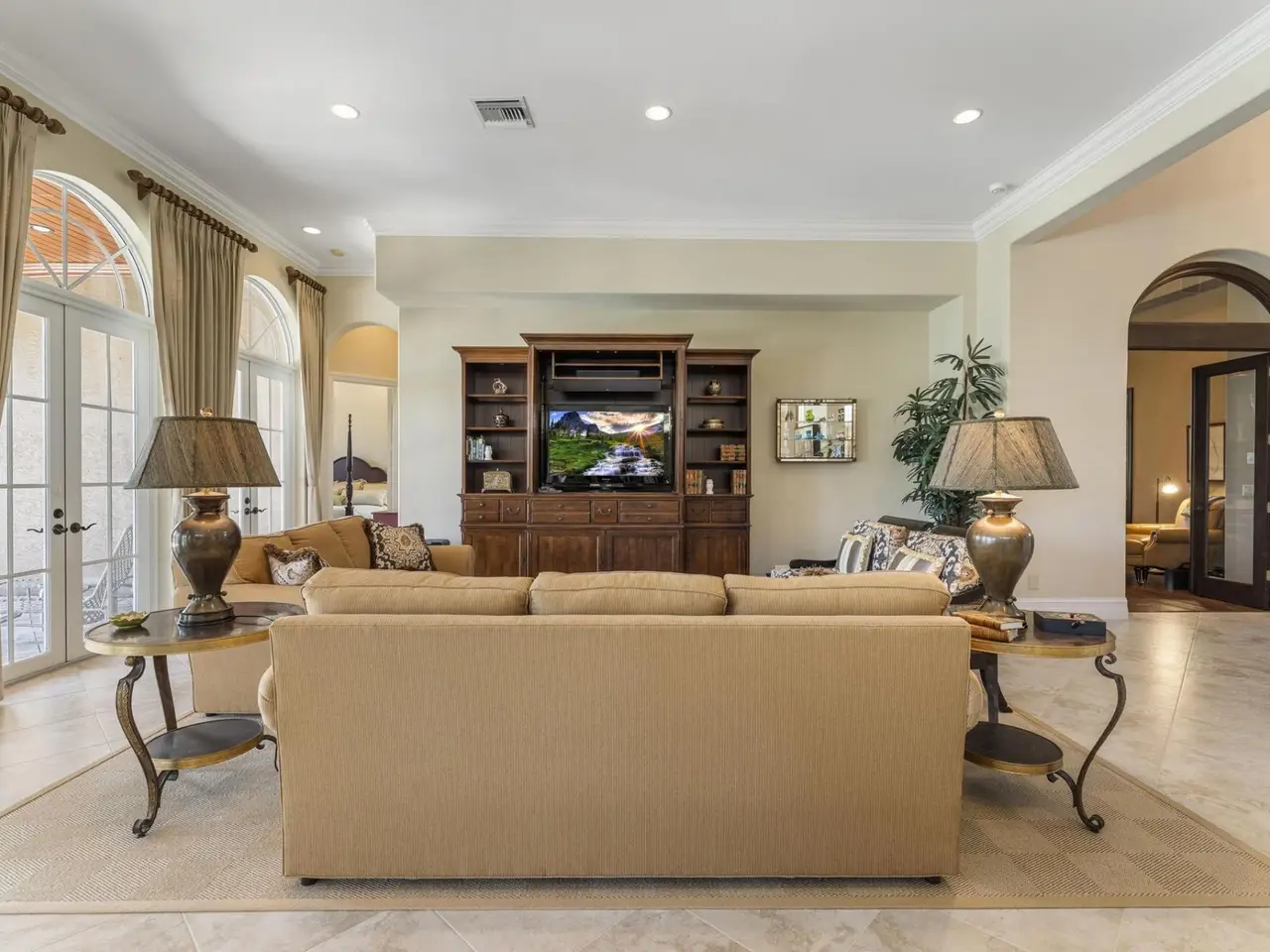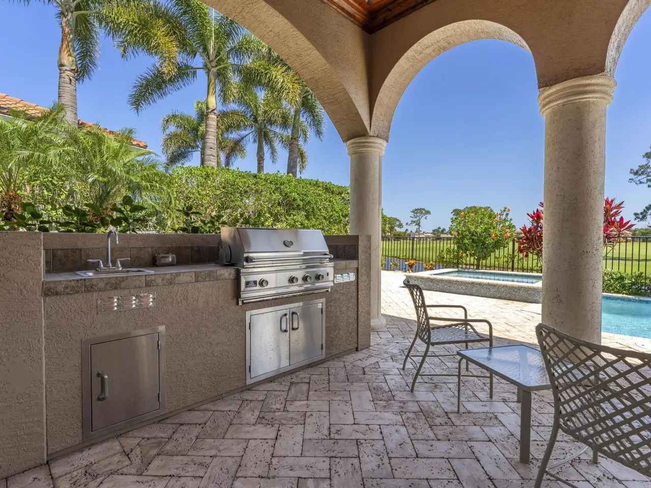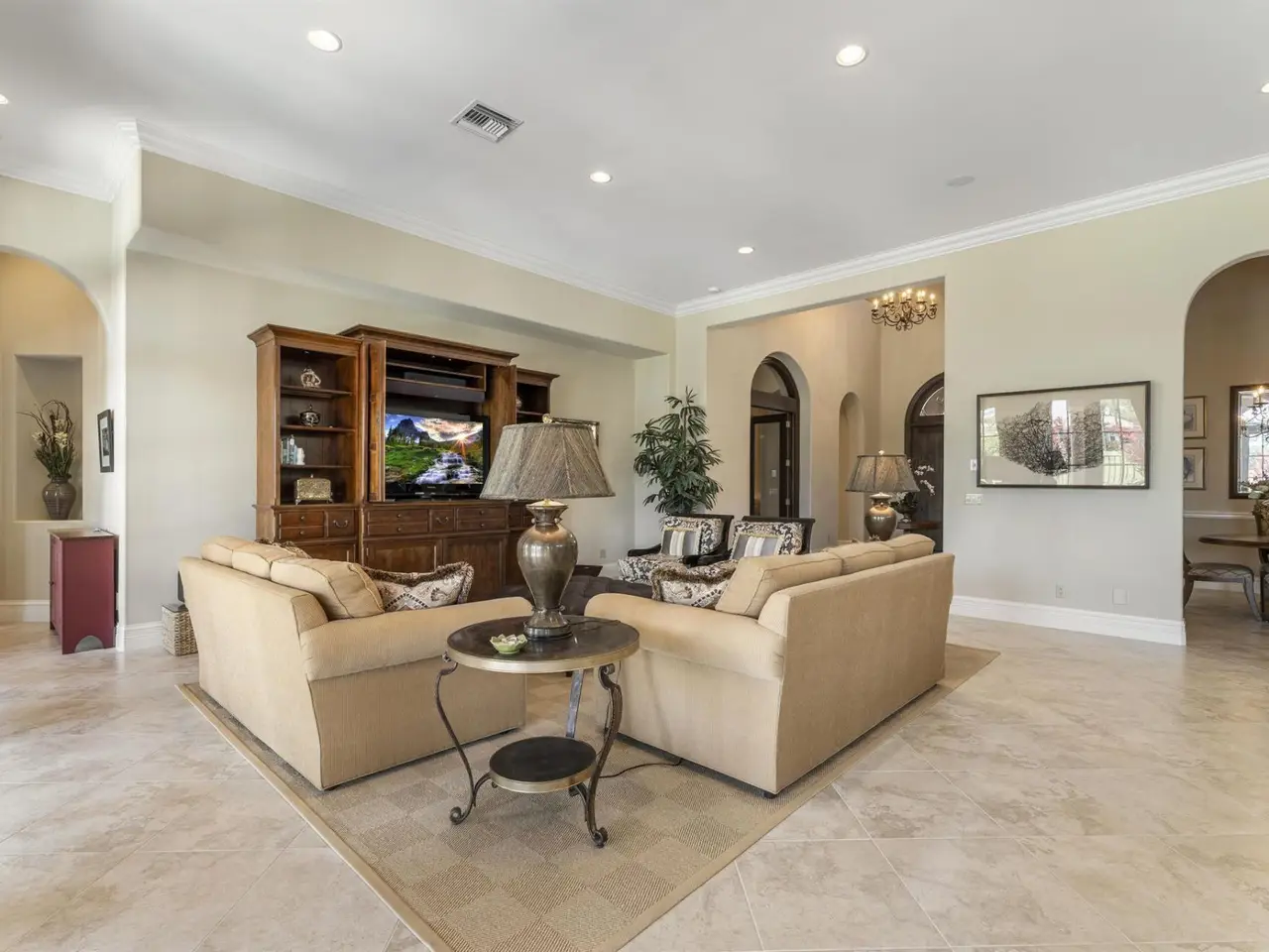 This is a fantastic opportunity in the Tesoro development that surely will not last long! This three-bedroom home, which includes a dedicated office and three and a half bathrooms, has everything for the most discerning buyer. The grand entrance is just the beginning, featuring soaring ceilings, an open floor plan, and top-of-the-line finishes that are rarely seen at this level. The home office serves as a comfortable sanctuary, complete with access to a full bathroom. The living room and family room seamlessly flow into the kitchen area, which overlooks the outdoor patio through an array of doors that provide ample natural light. The patio boasts an incredible covering with tongue and groove ceilings, making it perfect for entertaining and outdoor living. The pool has been tastefully renovated, offering beautiful views of the long water and golf course scenery. Come enjoy the lifestyle at Tesoro, which includes a clubhouse, golf course, tennis facilities, a pool, and much more!