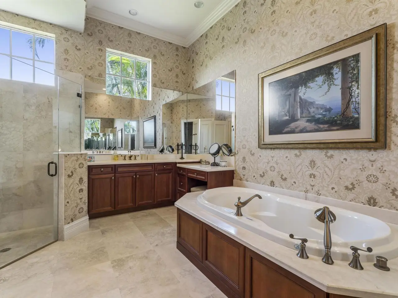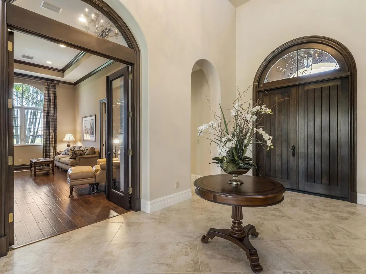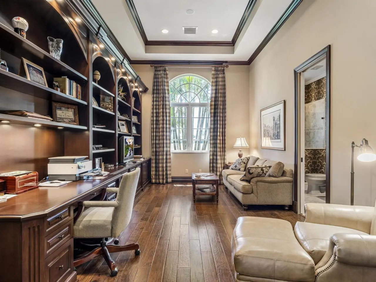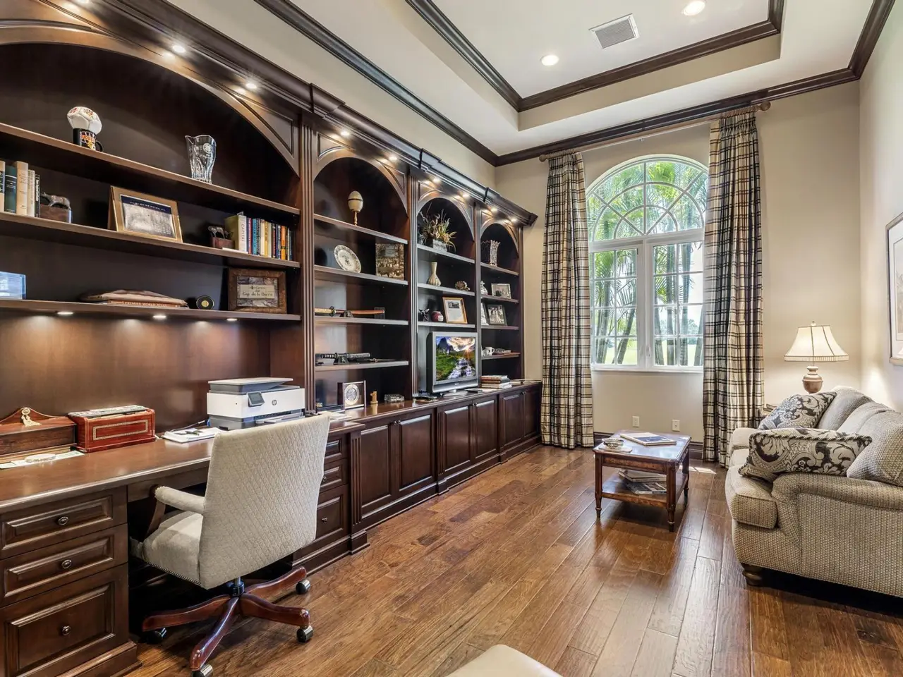 This is a fantastic opportunity in the Tesoro development that surely will not last long! This three-bedroom home, which includes a dedicated office and three and a half bathrooms, has everything for the most discerning buyer. The grand entrance is just the beginning, featuring soaring ceilings, an open floor plan, and top-of-the-line finishes that are rarely seen at this level. The home office serves as a comfortable sanctuary, complete with access to a full bathroom. The living room and family room seamlessly flow into the kitchen area, which overlooks the outdoor patio through an array of doors that provide ample natural light. The patio boasts an incredible covering with tongue and groove ceilings, making it perfect for entertaining and outdoor living. The pool has been tastefully renovated, offering beautiful views of the long water and golf course scenery. Come enjoy the lifestyle at Tesoro, which includes a clubhouse, golf course, tennis facilities, a pool, and much more!