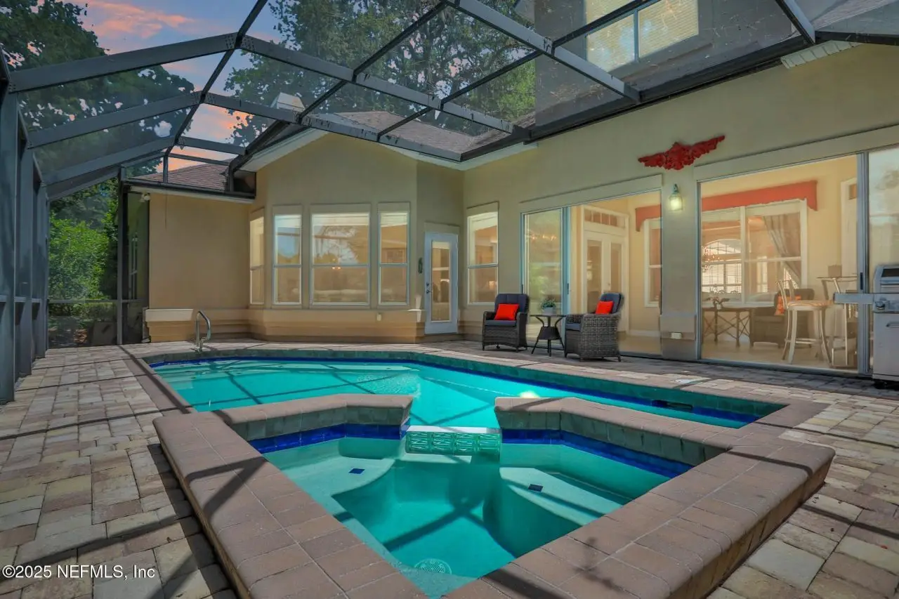 • Sparkling pool and spa in screened outdoor living space