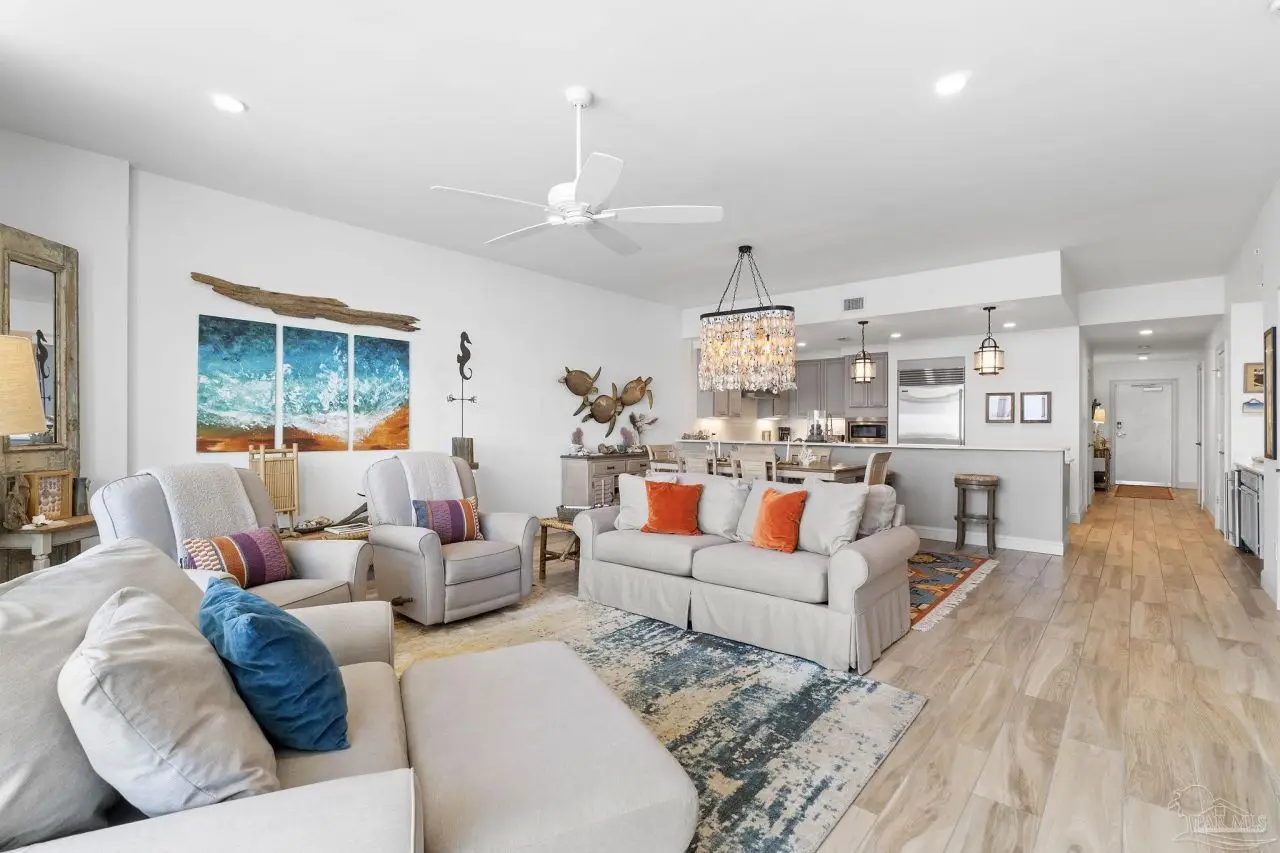 Extraordinary 6th floor, direct gulf-front residence with breathtaking views overlooking miles of protected coastline! Enjoy exceptional residences and amenities in a tranquil, low-density beachfront setting far away from the crowds. Vista del Mar has an irreplaceable location at the east end of the island of Perdido Key and borders over 5 miles of protected Gulf Islands National Seashore offering nature trails, bike paths, and unspoiled beaches for your enjoyment. This luxurious three bedroom/3.5 bath FURNISHED residence includes assigned garage parking and showcases a thoughtful floor plan with impressive floor-to-ceiling windows, a generous balcony complete with gas grill, and breathtaking Gulf views. The exquisite kitchen boasts white quartz countertops, high-end cabinetry, a Chef’s kitchen featuring a Wolf® range and chimney hood, a Sub-Zero® refrigerator, and a wet bar equipped with ice maker and wine refrigerator. Luxurious bathrooms are designed with frameless, thick glass shower doors and ample walk-in closets. At Vista Del Mar, enjoy a secure, gated community entrance, designated garage parking, and climate-controlled owner storage at the amenity level. The grand lobby entrance offers various seating areas, custom artwork, and awe-inspiring views. High-speed elevators lead to climate-controlled lobbies. Indulge in the lavish outdoor pool area with a vast beachfront deck, hot tub, and covered outdoor seating. Experience the heated indoor pool with stunning water views. The owner’s health club provides a fully-equipped fitness room, yoga studio, and massage treatment rooms. Residents can unwind in the club room with fireplace, bar, pool tables, and TVs. Surround yourself with lush landscaping, coastal breezes and WELCOME HOME TO LUXURY BEACHFRONT LIVING AT ITS FINEST!