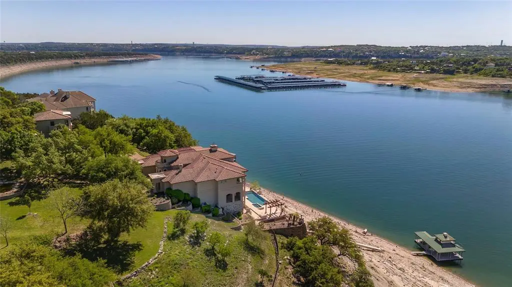 9-Acre Opportunity Above Deep Lake Travis Waterfrontage. Nestled within a privately gated community in Lago Vista lies an extraordinary estate spanning over 9 acres across three pristine waterfront lots in the esteemed enclave of Waterford on Lake Travis. Exuding elegance and crafted with meticulous attention to detail, this residence redefines luxury living and beckons both entertainers and nature enthusiasts alike. With incredible value in the land and waterfrontage, 17800 Kingfisher Ridge Drive is ready for a new owner to reimagine. With the private boat dock strategically positioned in one of the deepest sections of the lake, the property presents a singular opportunity for aquatic adventures, featuring a boat slip, jet ski ramp, and inviting sitting area with ample storage. Immerse yourself in sweeping 180-degree vistas that grace nearly every room in the existing main and guest houses, seamlessly merging indoor-outdoor living with expansive terraces. Enjoy refreshing breezes poolside throughout the day, a unique feature not often found on the south side of the lake. Beyond its breathtaking beauty, the property's intrinsic value lies in its 9.2 waterfront acres distinguished as a rare property within Waterford boasting three lots. Additionally, the property is fully fenced and features two ponds plus picnic benches and a table to relax and retreat under the mature live oak trees. Discover the epitome of lakeside luxury and make 17800 Kingfisher Ridge Drive your sanctuary amidst the serenity of Lake Travis. Tax and assessed values are estimates for illustration purposes only. All figures should be independently verified. 24-Hour Advance Showing Notice.