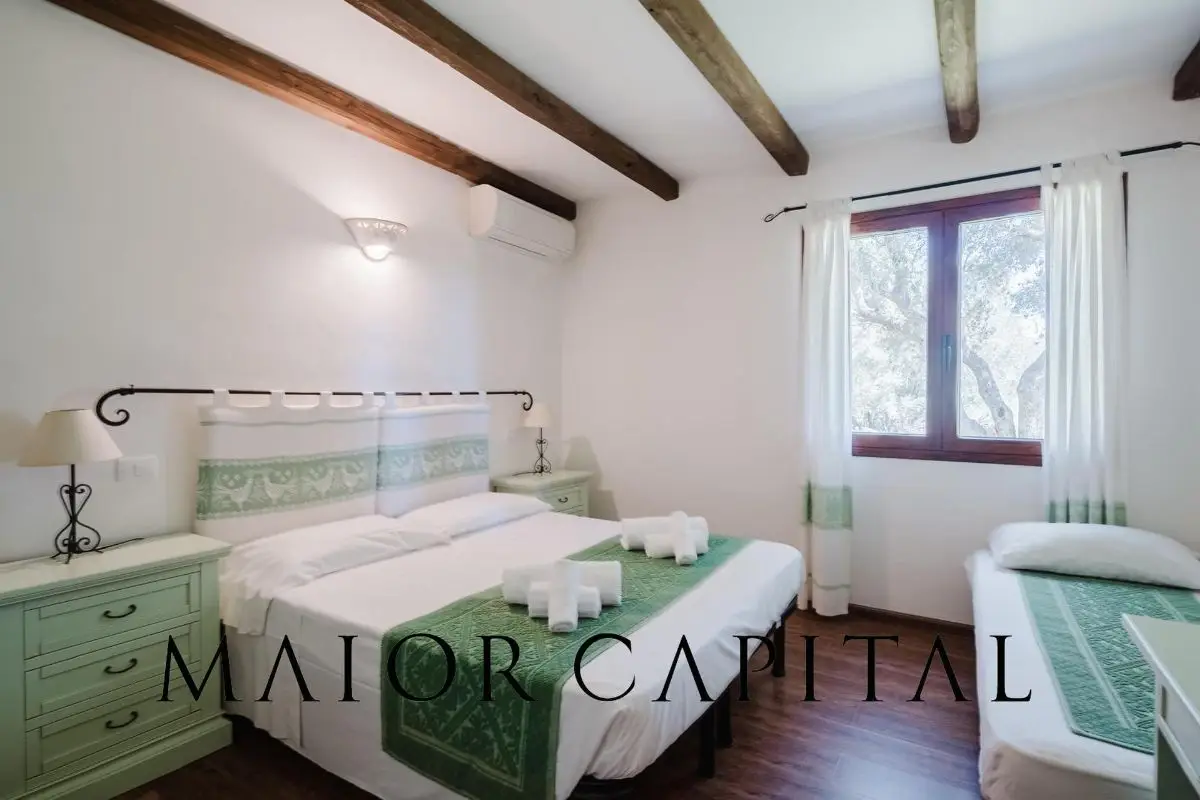 On the hills surrounding the city of Olbia, in the San Vittore area, we offer for sale a beautiful villa with an annex and pool, immersed in the scents and colors of the Mediterranean. The property, approximately 360 sqm, is surrounded by a meticulously maintained garden of nearly 13,000 sqm, with a sunbathing area ideal for relaxing and enjoying the mild Sardinian climate. Built in traditional Gallura style with local materials, the villa is perfect for those seeking an authentic residence in a breathtaking natural setting. The spacious and bright interiors offer an elegant and welcoming atmosphere. The main residence includes a large living room, a functional kitchen, eight bedrooms, and eight bathrooms furnished in the Emerald Coast style. The carved furniture, featuring traditional Sardinian motifs such as peacocks and lilies, adds a refined and distinctive touch. The annex houses two bedrooms and a bathroom, ideal for hosting guests with maximum privacy. From the covered verandas and large windows, you can admire a panoramic view of nature, olive groves, native vegetation, the city, and the island of Tavolara. This villa is perfect both as a residence for a large family and as an exclusive turnkey hospitality structure, thanks to its strategic location and numerous amenities. San Vittore is one of the most panoramic and tranquil areas of Olbia, just a few minutes from the city center and main services. The beaches of north-east Sardinia, as well as the renowned locations of Marinella and Porto Rotondo, are easily accessible. The city center, the port, and Olbia Costa Smeralda™ international airport are less than 10 minutes away. The villa is composed as follows: Ground Floor · Covered verandas · Entrance · Living room · Kitchen · Three bedrooms · Three bathrooms Second Floor · Covered verandas · Five bedrooms · Five bathrooms · Annex · Two double bedrooms · One bathroom Amenities: · Private garden · Swimming pool · Hot/cold heat pumps in every room · Two 11 kw pellet stoves · Solar panels · Well · 10,000-liter cistern · Consortium water Special feature: possibility of expanding the volume by approximately 60 sqm. Why buy it? #1 Strategic location #2 Immersed in nature in a private setting #3 Large indoor and outdoor spaces #4 Large private swimming pool #5 Easy access to all the most beautiful beaches of Costa Smeralda™ #6 Less than 10 minutes by car from Olbia center, port, and airport