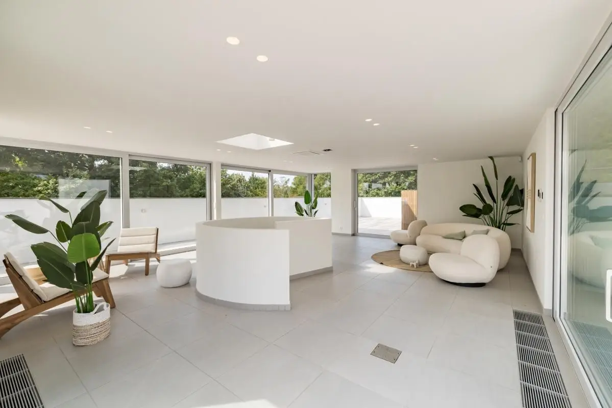In a small condominium of just three apartments, this superb penthouse, completely renovated in 2024 (everything is new), offers approximately 330 m² of living space and captivates with its light-filled spaces and high-end finishes. Spacious reception rooms open onto generous terraces totaling approximately 300 m², including a spectacular south-facing rooftop terrace of approximately 200 m² with a splendid swimming pool. An office, a fully equipped kitchen, a sublime master suite, as well as three other bedrooms and four bathrooms complete the sleeping area. A family room, cellars, and a two-car garage on the ground floor complete this rare property. EPC: B- With its exclusive atmosphere, its rooftop garden with swimming pool, and its prime location in the Prince d'Orange district, this penthouse is a truly prestigious address.