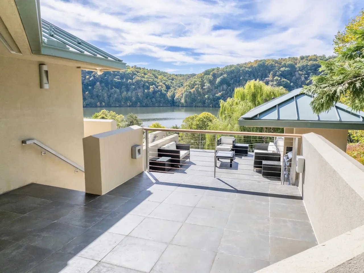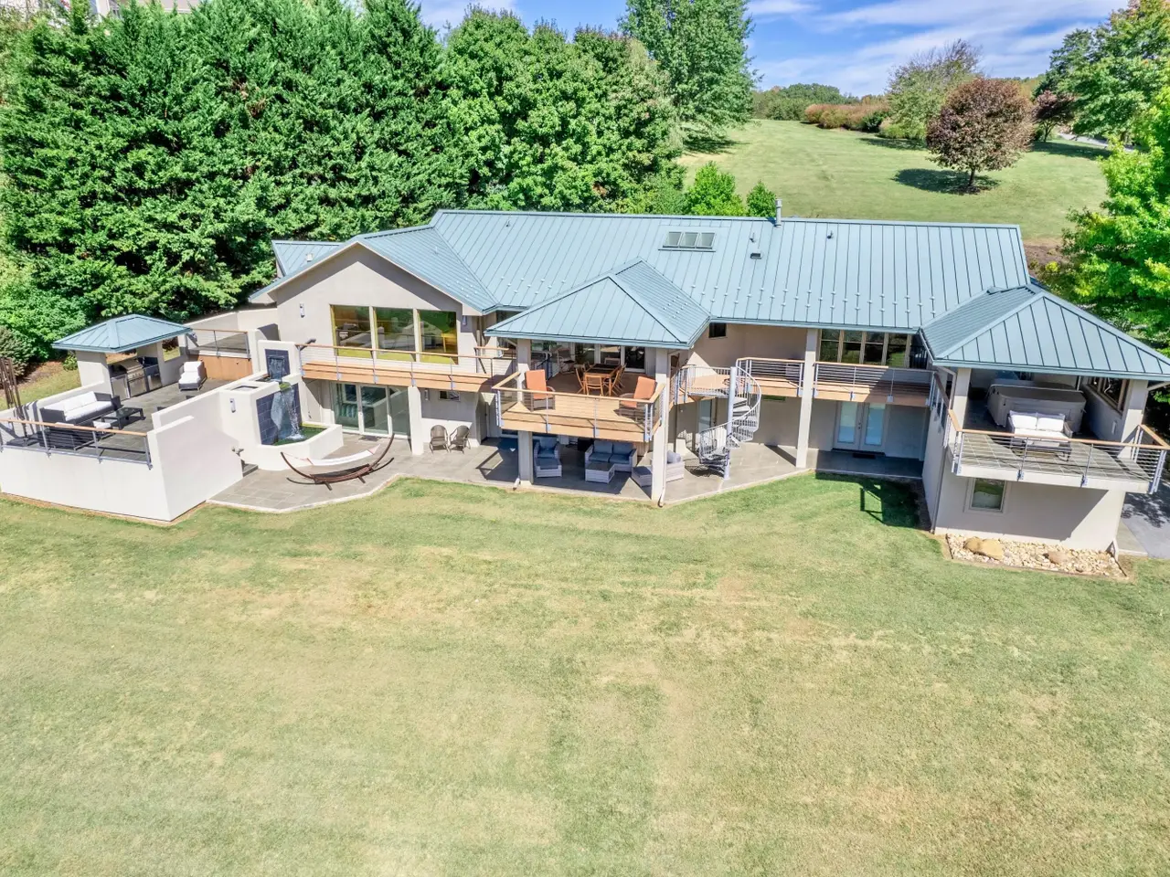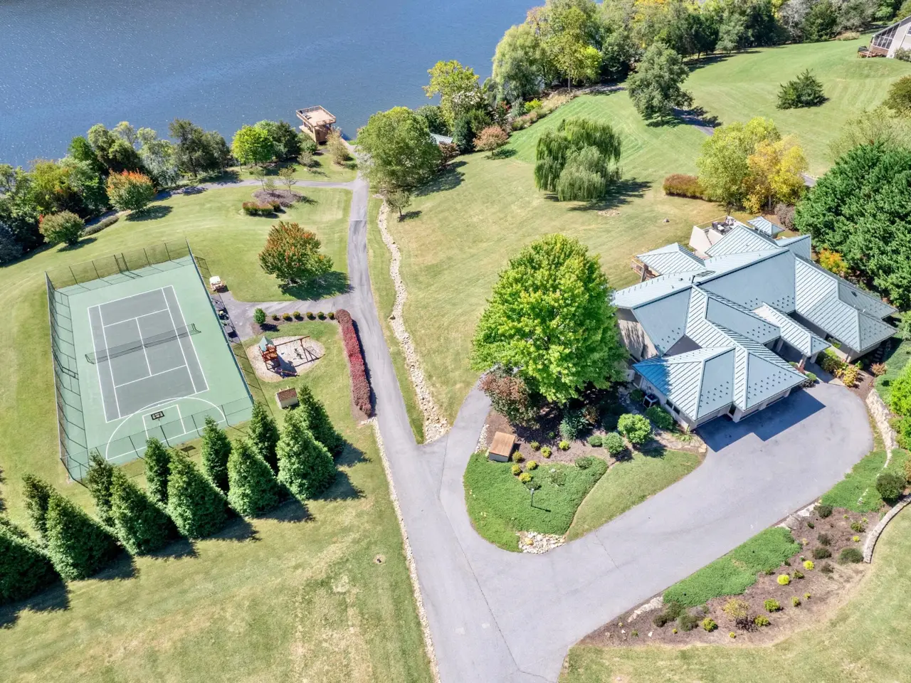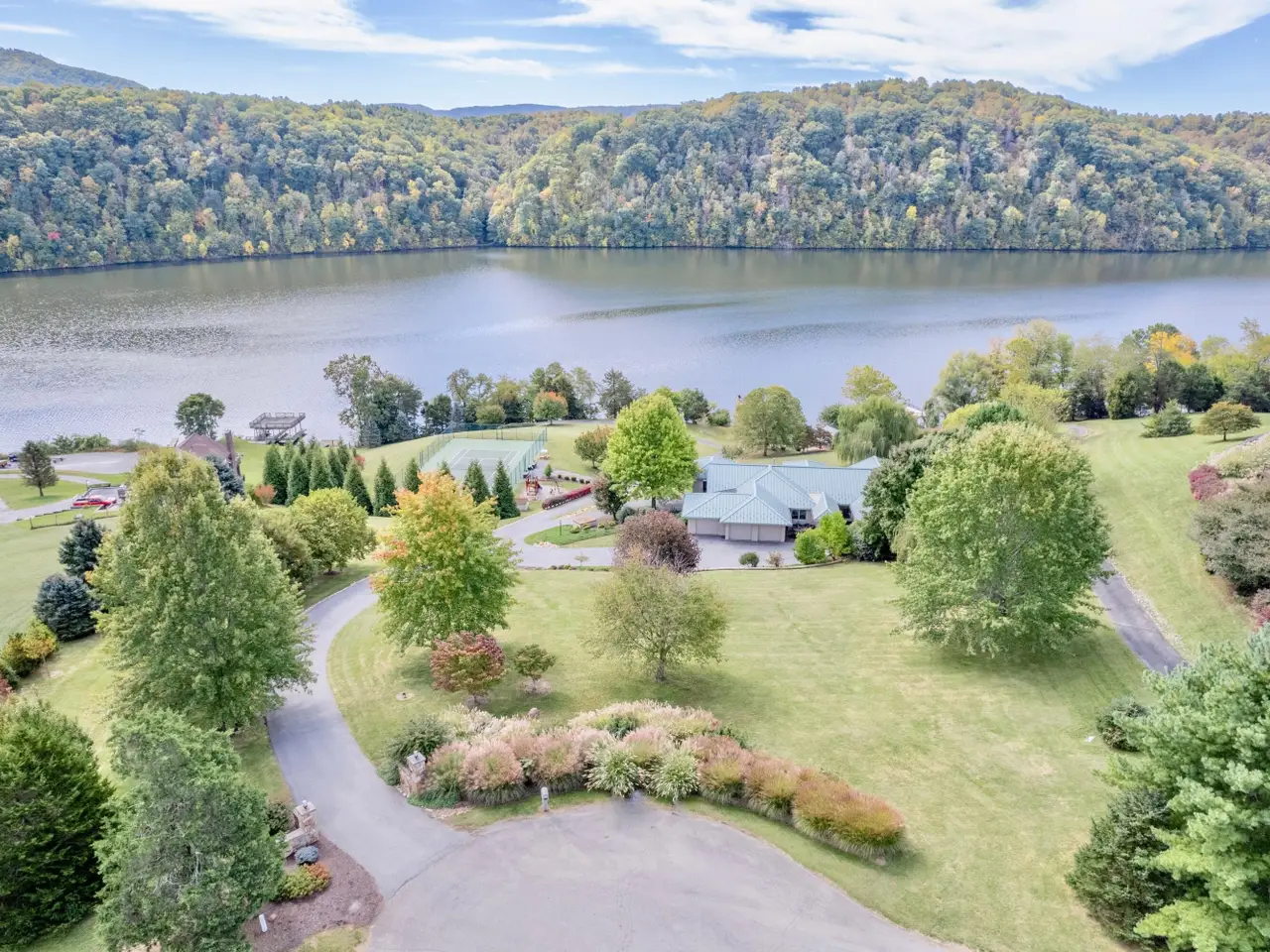 You must see this one of a kind contemporary lakefront property! This stunning home on Claytor Lake is situated on 2 lots with over 4 acres, 2 covered docks, a tennis court and boat house with a full bath perfect of entertaining. This home is the peak of luxury with every amenity imaginable, completely rebuilt with renowned architect Dr. Warren Kark in 2009. Breathtaking lake views from every window. Extensive outdoor living space including a hot tub, waterfall water feature, outdoor kitchen and built-in fire pit. The entry level has an open floor plan, with the family room, dining area, sitting area and wet bar. The kitchen has all high end appliances, custom cabinets, vaulted ceiling, and skylights that bring in lots of natural light.