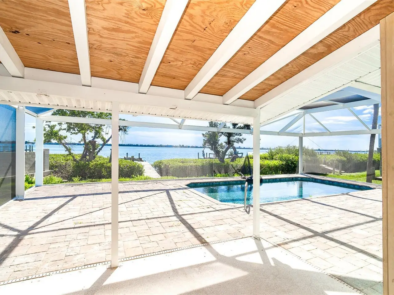 • Newly added caged pool with brick pavers