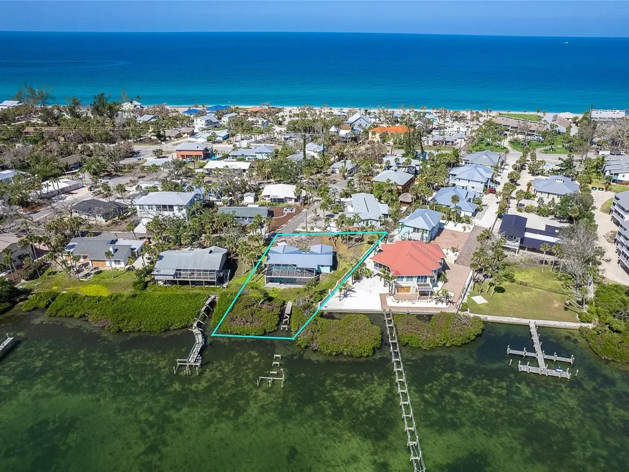 MANASOTA KEY – BAYFRONT HOME WITH DOCK & DEEDED BEACH ACCESS This home sustained storm surge damage and is being sold as is. It is a fantastic opportunity to restore and personalize a rare waterfront property on Manasota Key. Welcome to Pelican Shores, where this charming 2-bedroom, 2-bath pool home with a 1.5-car garage sits on an impressive nearly one-third-acre lot and 71 feet of water frontage—offering direct access to the Intracoastal Waterway, a private deeded dock, and community deeded beach access just steps across the street. Whether you're envisioning morning beach walks, launching a kayak, or boating directly from your backyard, this home delivers the ultimate Florida lifestyle. The spacious lanai and caged pool, added in 2020 with stylish brick pavers, is the perfect place to relax and entertain while taking in stunning sunrises over the Bay. In the evenings, cross the street and head for the beach for breathtaking Gulf sunsets. Although the home was affected by the recent storm, many key features remain intact—all windows are Hurricane Impact-rated and undamaged. The sliding glass doors in both the kitchen and living room are currently being replaced with new Hurricane Impact, already ordered for installation. The interior showcases cathedral ceilings, polished Terrazzo floors, and a spacious kitchen that flows into a large utility room for your washer and dryer, and a convenient full guest bath located off the laundry area and garage—designed for practical, everyday living. The formal living and dining rooms offer direct access to the lanai through the soon-to-be-installed sliding glass doors, and both bedrooms are generously sized, providing plenty of comfort and space. This is a rare chance to own on the Intracoastal Waterway in a location just moments from local restaurants, entertainment, and all that Manasota Key has to offer. Don’t miss this opportunity, call today to schedule your private showing