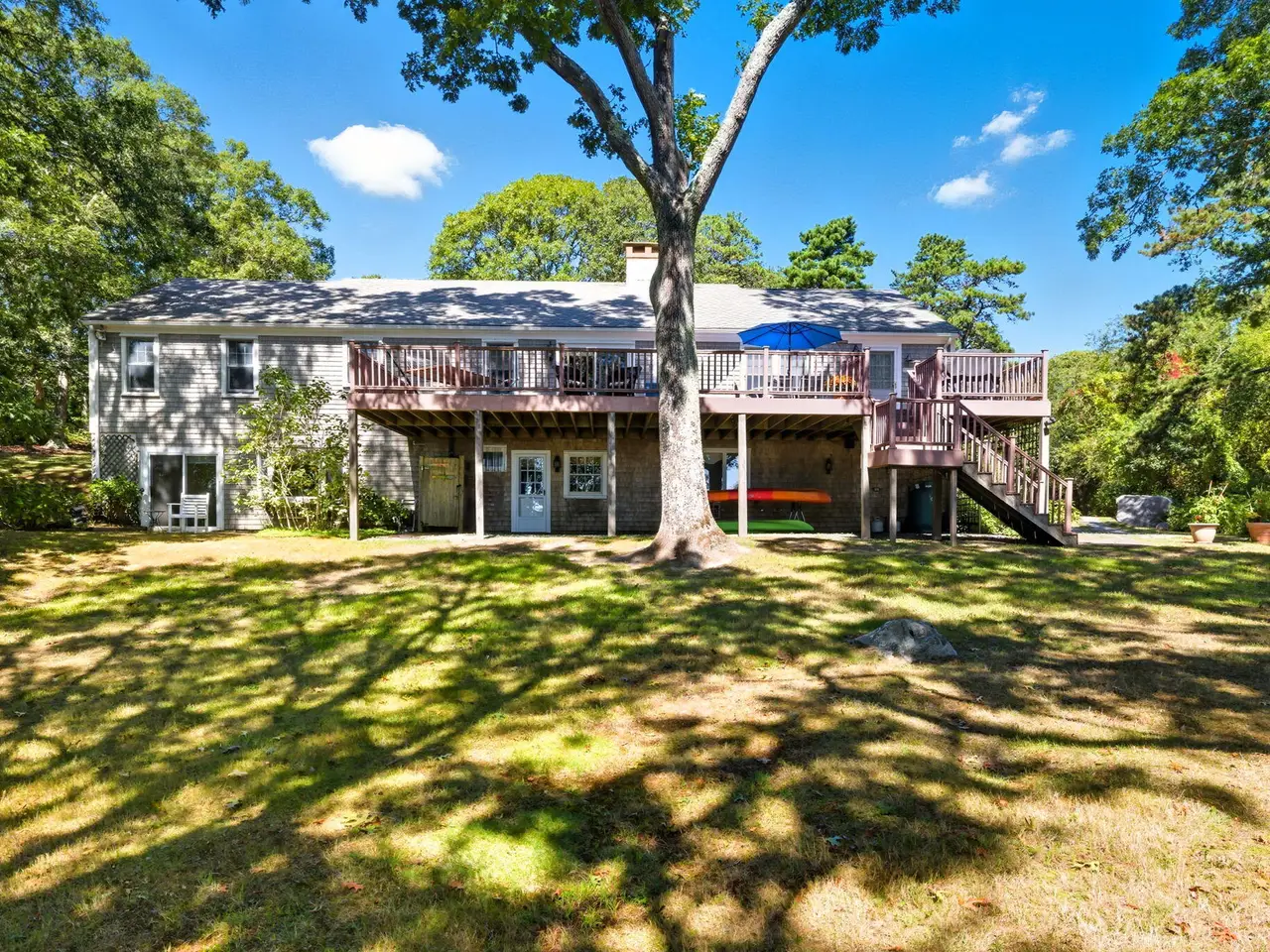Waterfront Living on Lower Mill Pond!Set on 2.27 private acres, this 3-bedroom, 3.5-bath ranch-style home offers serene pond front living with direct access and your own private dock. Wake up to peaceful water views and enjoy al fresco dining on the expansive deck. Launch your kayak or paddle board right from your backyard and explore the calm waters of Lower Mill Pond. The spacious yard offers plenty of room for lawn games, cookouts, and making lasting memories with family and friends. Inside, cozy up by one of the two fireplaces, with comfortable, single-floor living on the main level. The finished walkout lower level adds versatility and endless possibilities, ideal for a guest suite, home office, or recreation space. With 2,160 sq ft of living space and a 5-bedroom septic system, there's room to grow. Perfect for year-round living or a Cape Cod escape. Offered turnkey if desired.